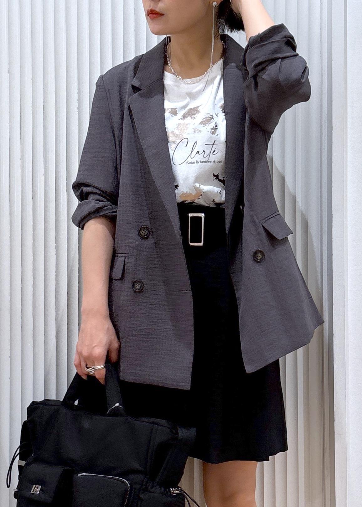 VIS【美easy】リラックスジャケット/セットアップ対応・洗えるチャコール / S¥7,909レビュー一切窮屈感や不快感無し。カーディガン以上、ジャケット未満な軽い着心地です。お尻はすっぽり隠れる長さで袖丈は丁度、短からず長からずでした。身幅は余裕のあるダブルジャケットデザイン。ロングスリーブの長袖やブラウスを着ても程よく余裕があります。接触冷感なので夏の暑い時期もキャミソールやタンクトップの上にサラッと羽織りやすく、ご自宅でのお洗濯も可能!お勧めです!