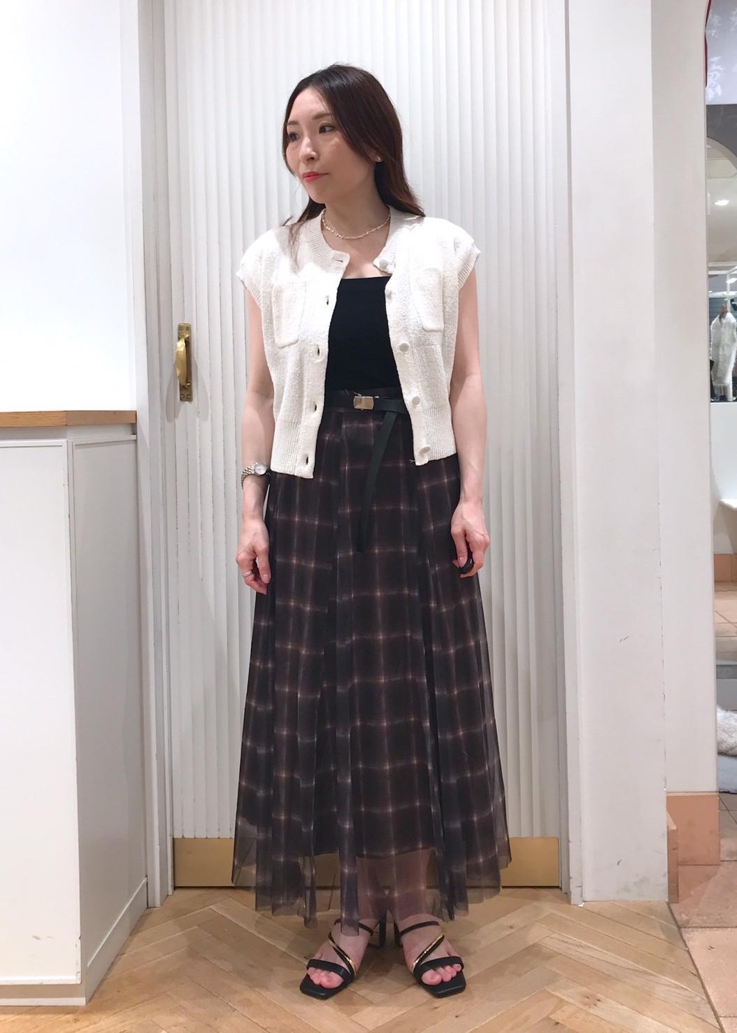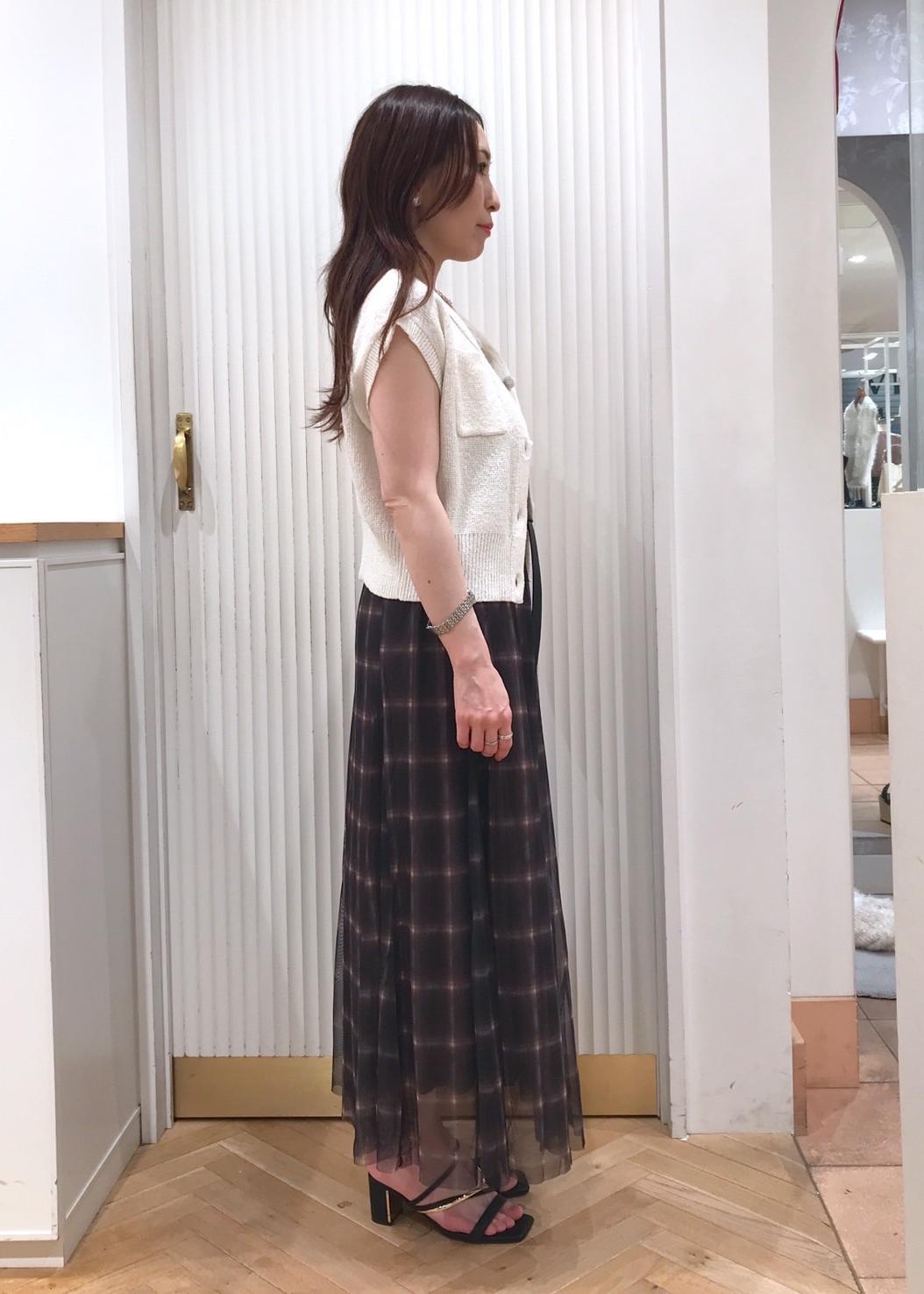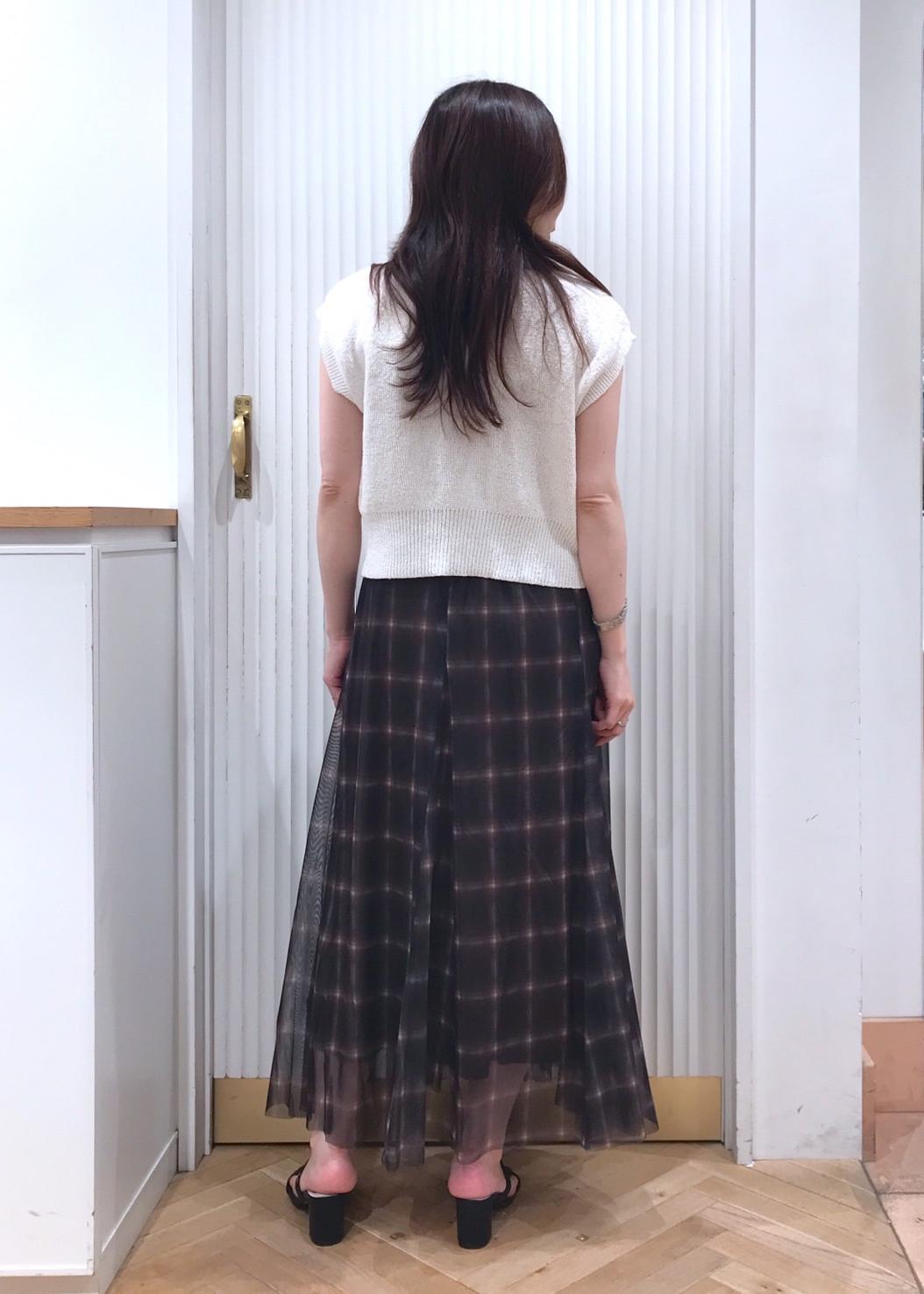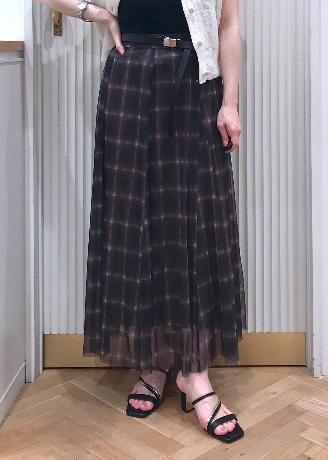VIS【洗える】チュールプリントチェックスカートダークブラウン系 / F¥4,612レビュー着丈は足首辺りまでの長さです。