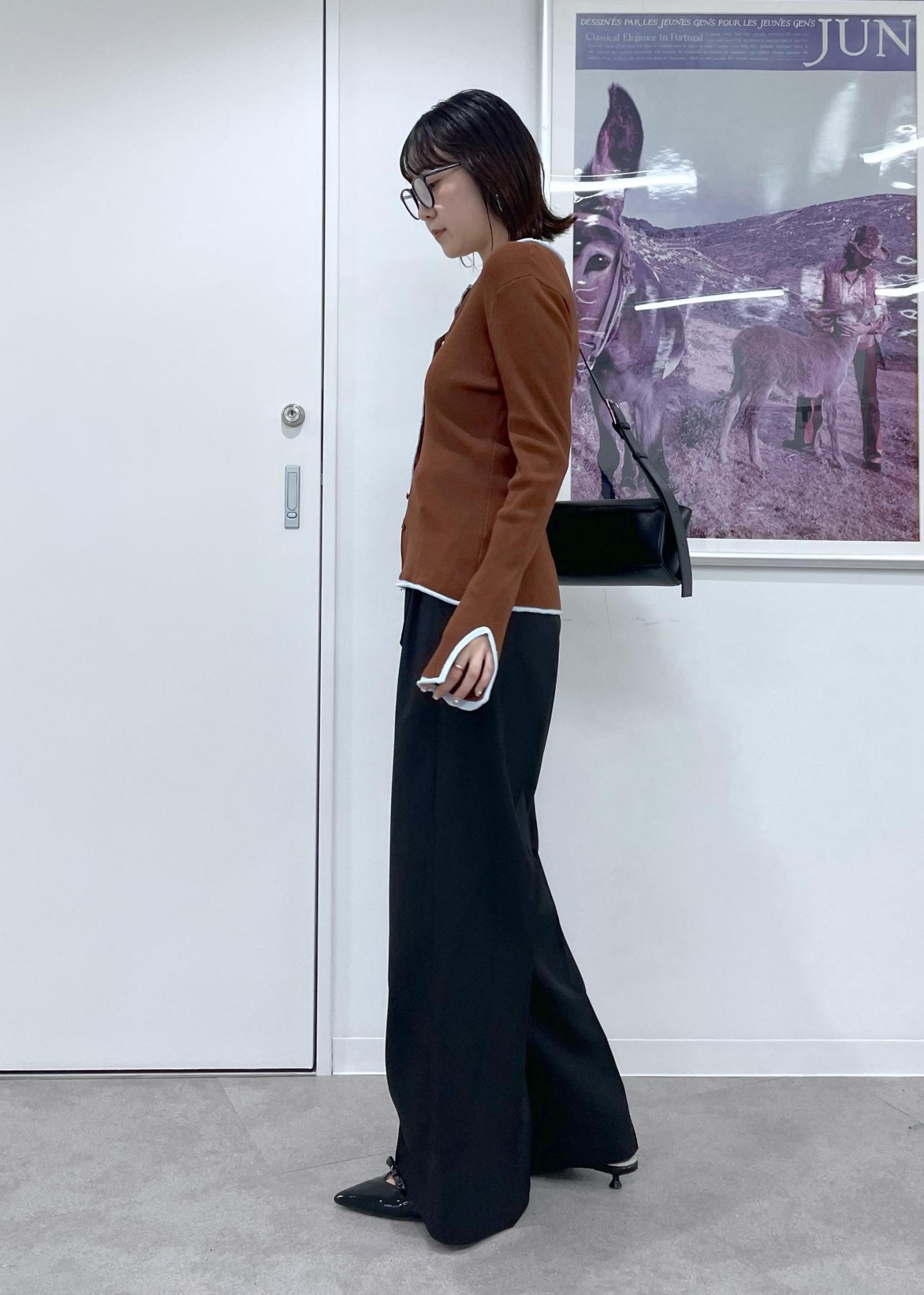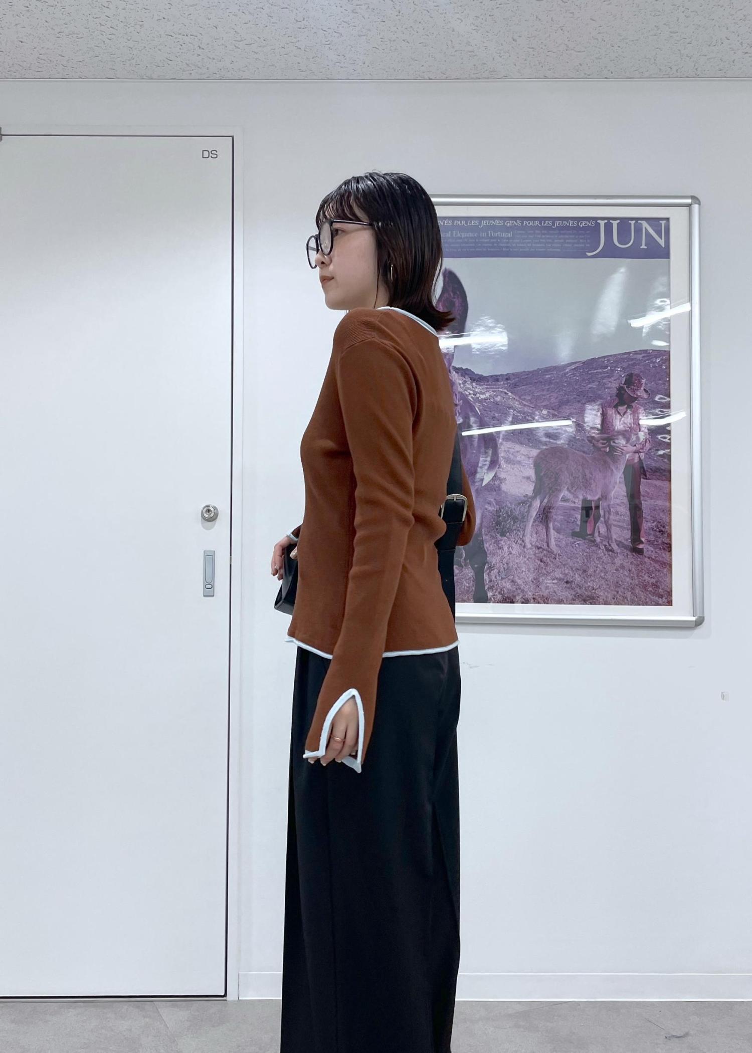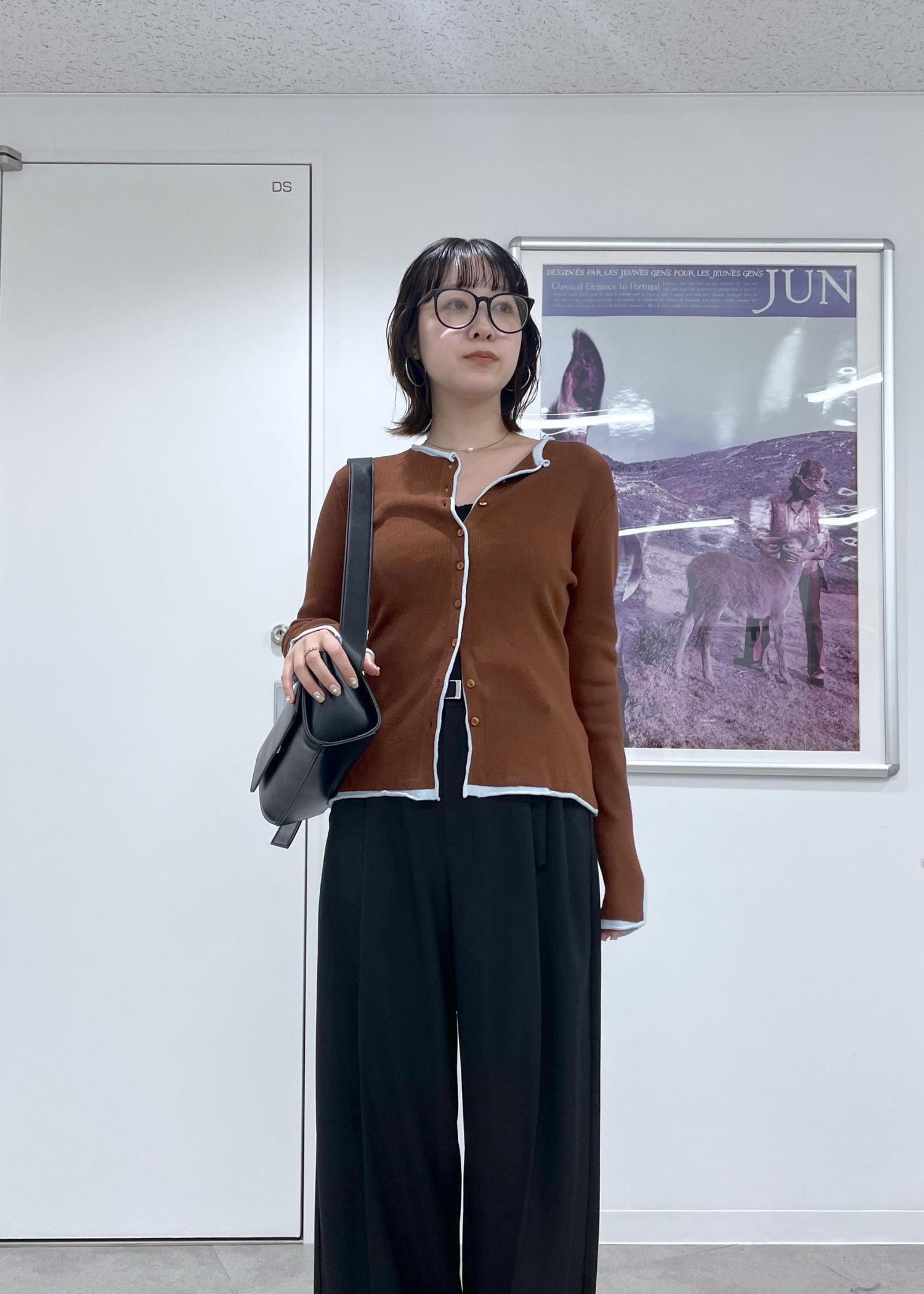 VIS【WEB/一部店舗限定】配色メローバイカラーカーディガンダークブラウン / F¥3,295レビュー1枚でお洒落見えが叶うカーディガン❤︎さりげない配色メローが大人可愛いデザイン、程よくフィットするサイズ感で華奢見え効果も!敏感肌ですがチクチク感は無く、柔らかい肌あたりです◎