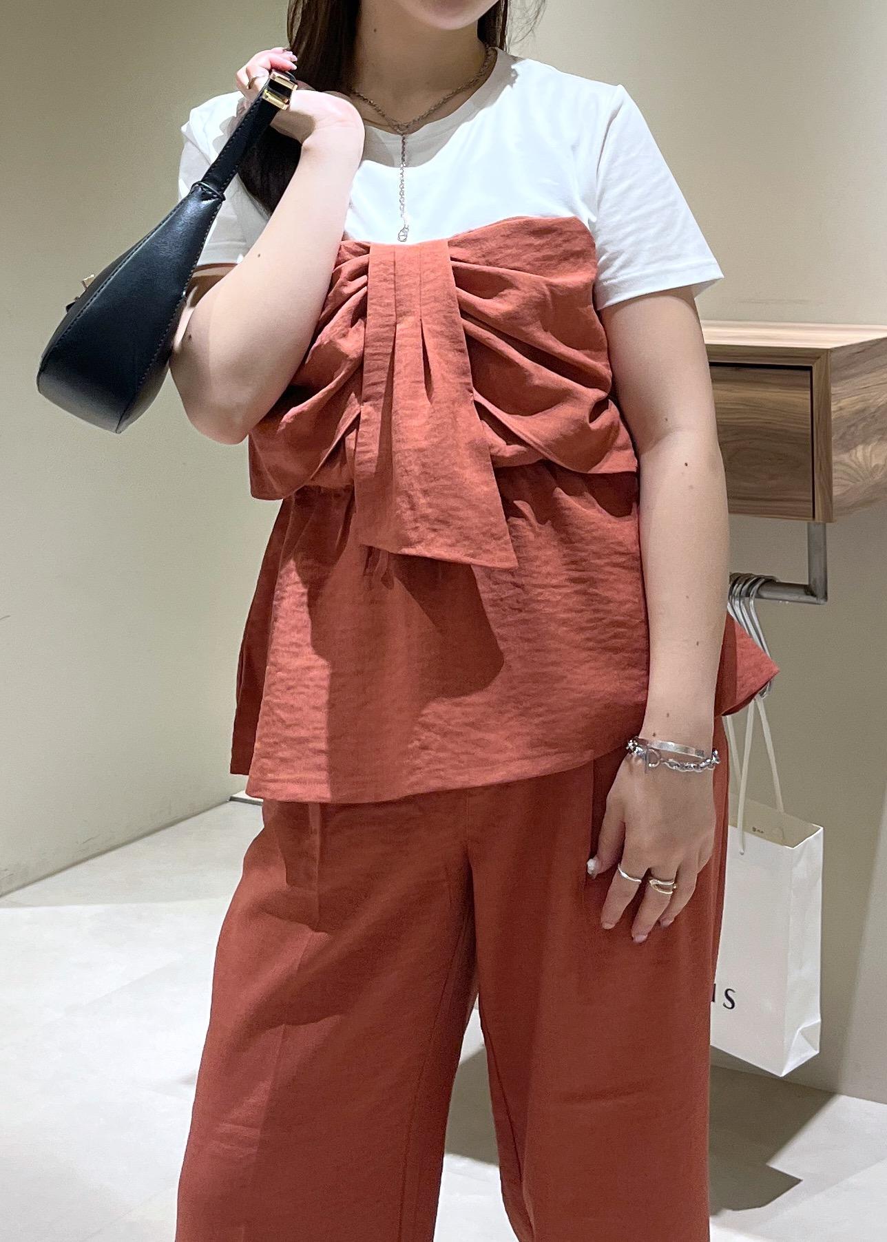 VIS【新色追加】【美easy】ねじりリボンTシャツドッキングプルオーバー【接触冷感/洗える】オレンジ系 / F¥5,489レビュー毎年大人気な美easy リネンライクシリーズ!!