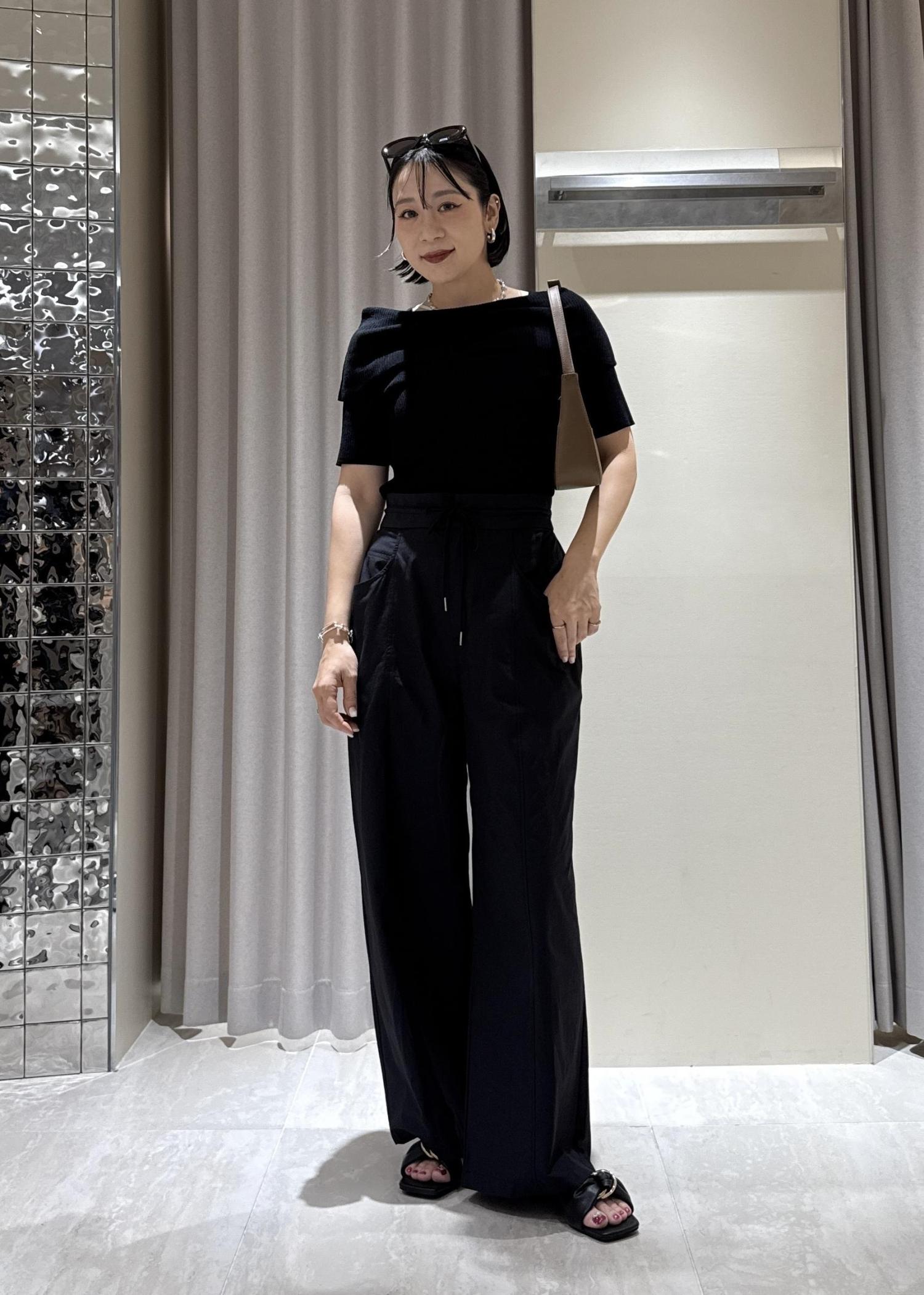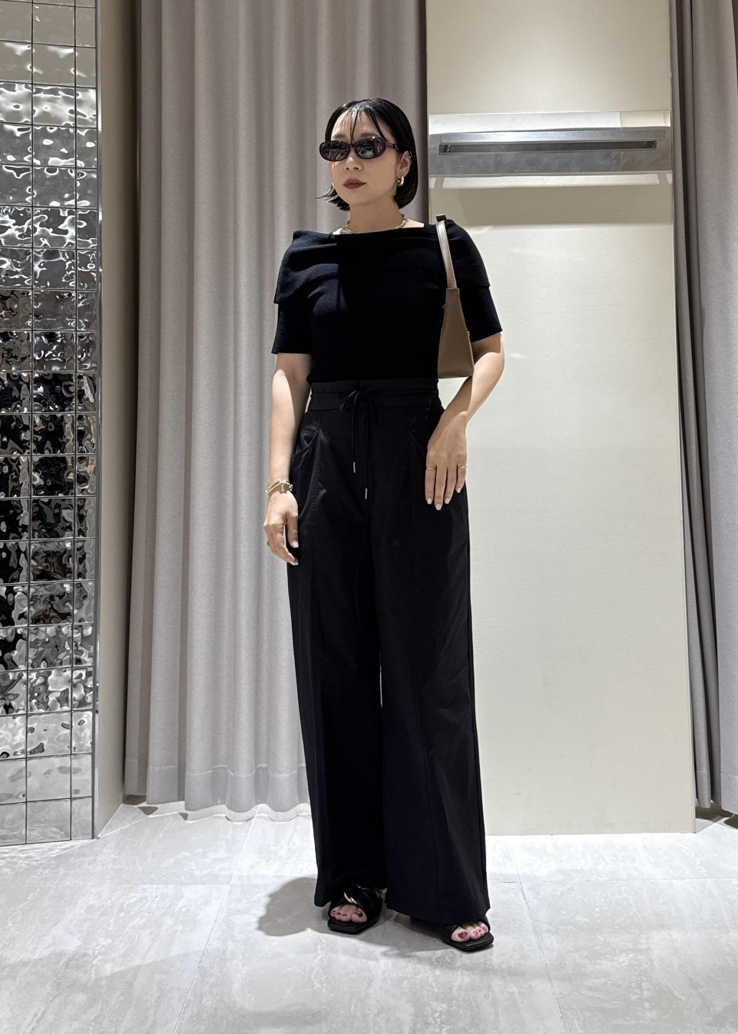 サラッと涼しいカジュアルなワイドパンツとオフショルのフェミニンさをVISらしい着こなしに◎
