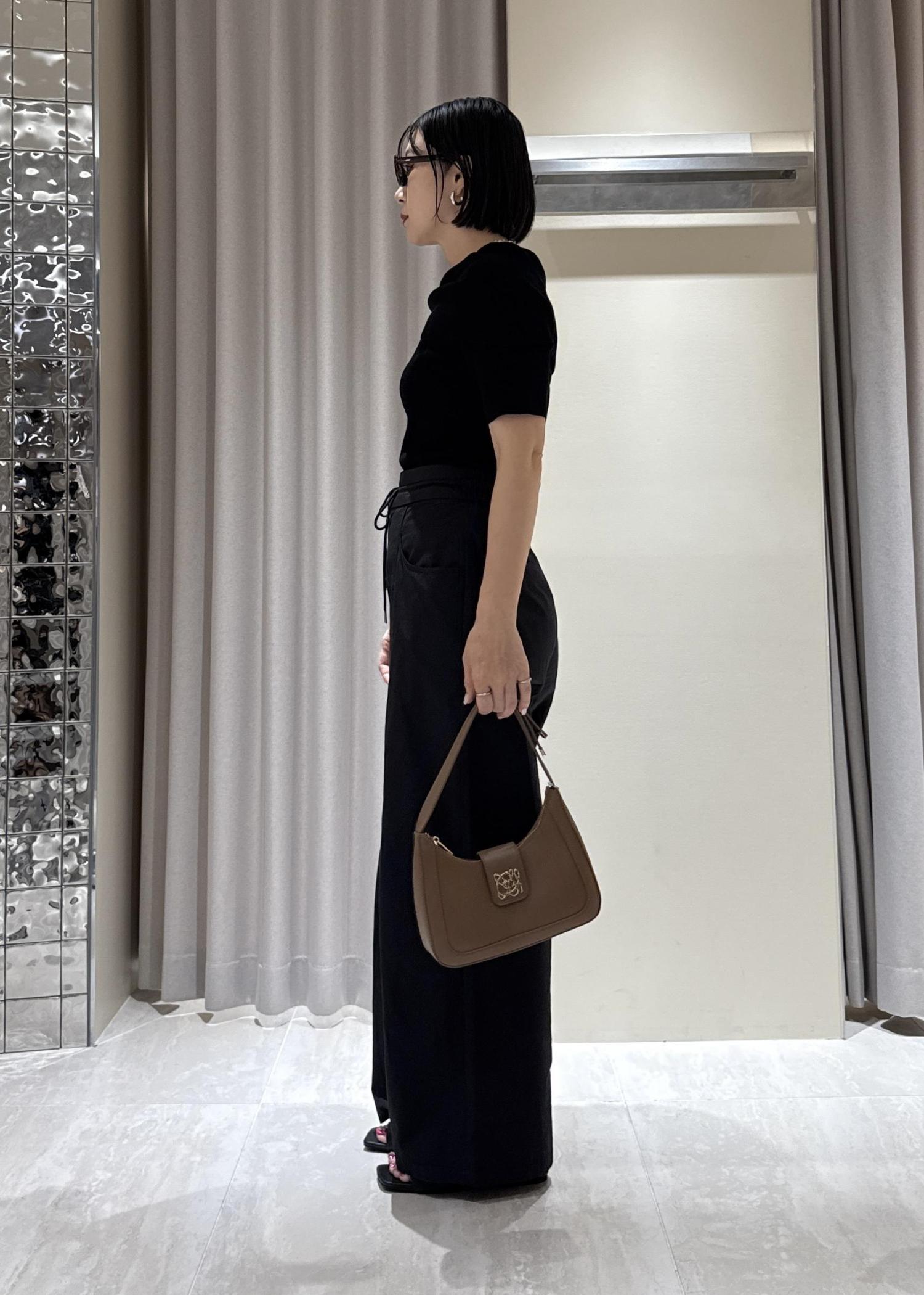 夏になると透け感もなくキャミソールも着ない、1枚で決まるブラックのトップはとても人気です◎