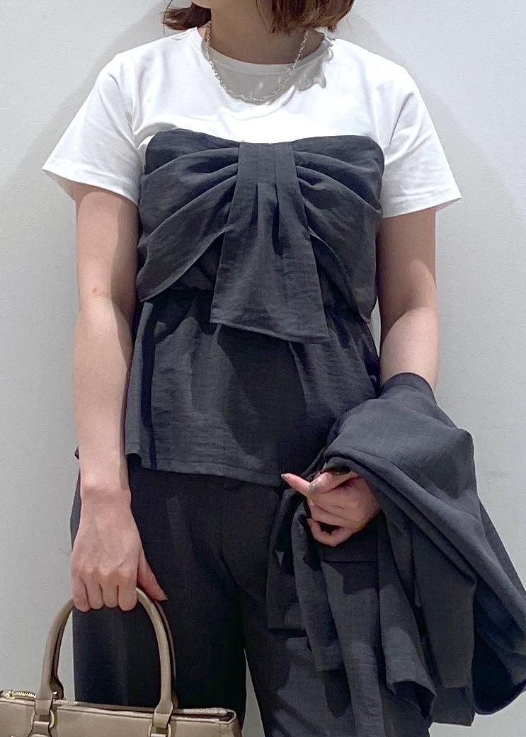 VIS【新色追加】【美easy】ねじりリボンTシャツドッキングプルオーバー【接触冷感/洗える】チャコール / F¥5,489レビューリネンライクシリーズは、接触冷感なので