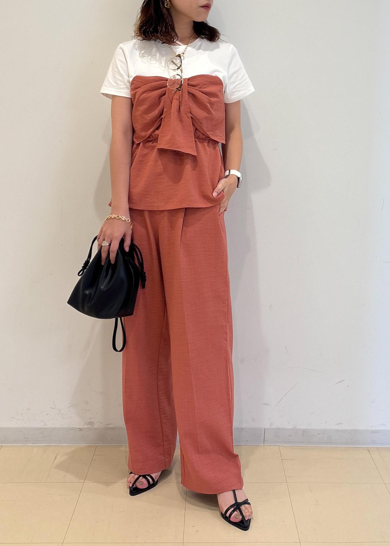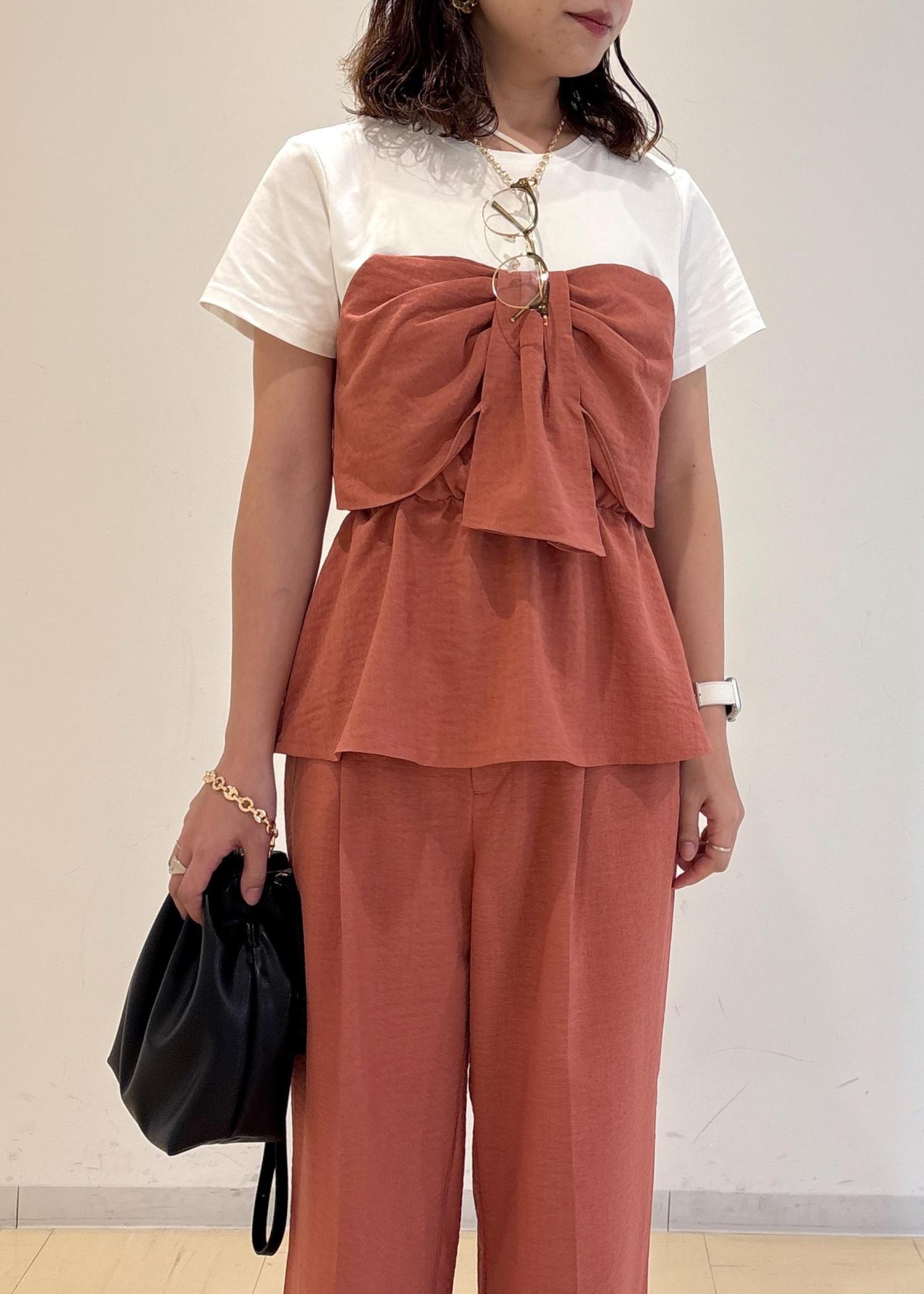 【新色追加】【美easy】ねじりリボンTシャツドッキングプルオーバー【接触冷感/洗える】