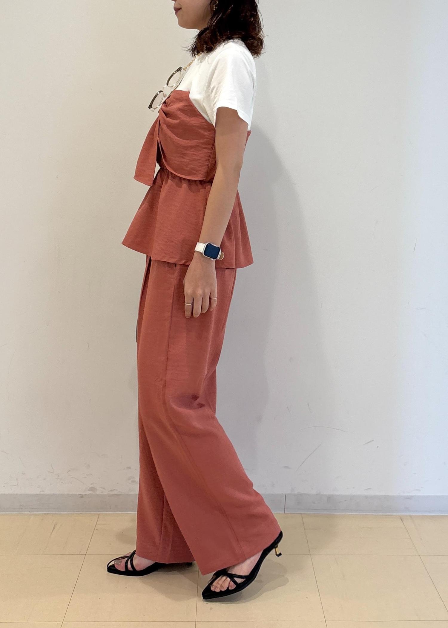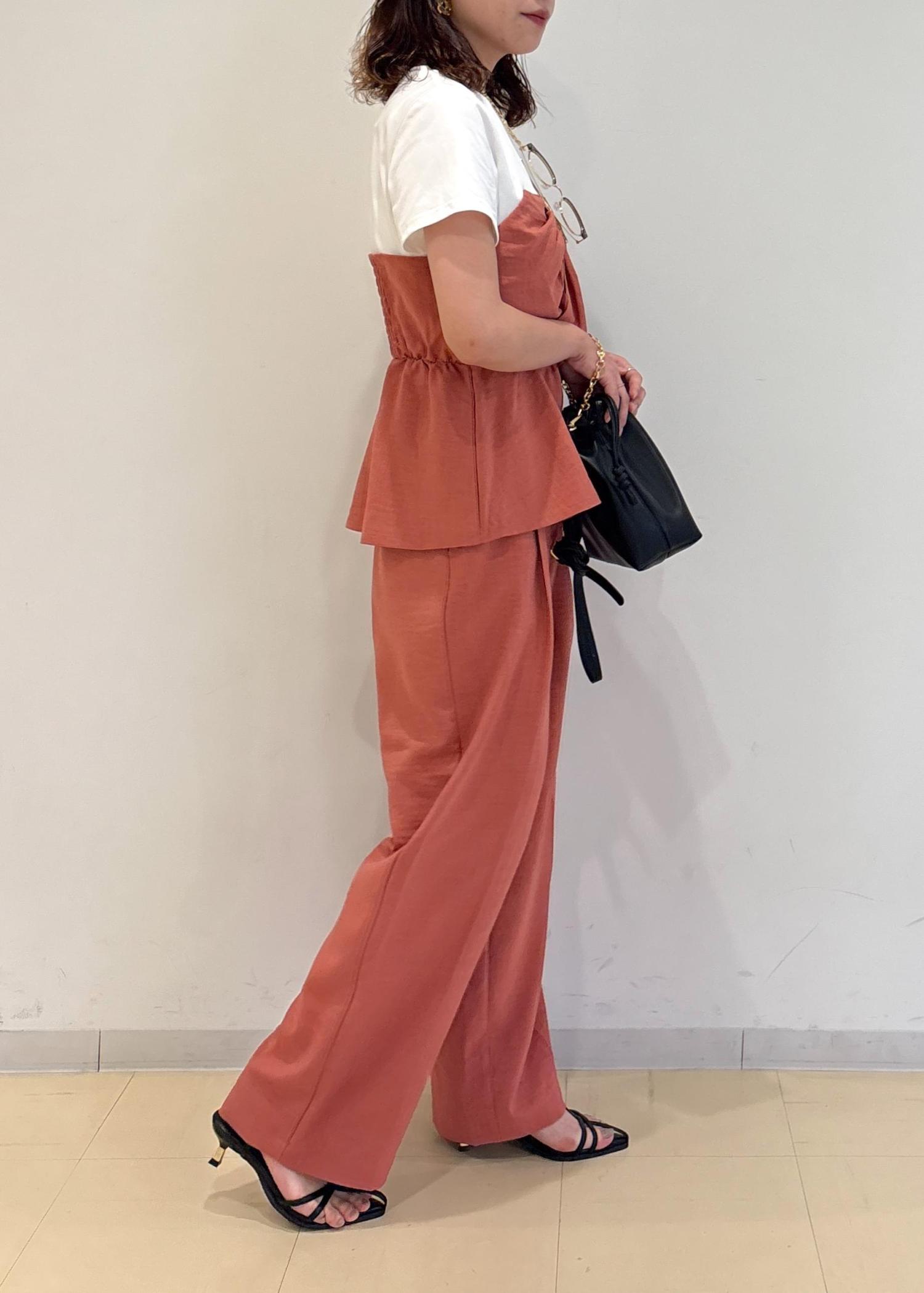 ウエストは大きめなのでサイドのボタンを締めてジャストなサイズ感です◎