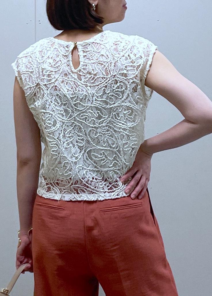 アウトレットVISコードレースシアーノースリーブプルオーバーオフホワイト / F¥4,391レビュー身長156cmで腰に掛かるくらいのコンパクトな着丈です。