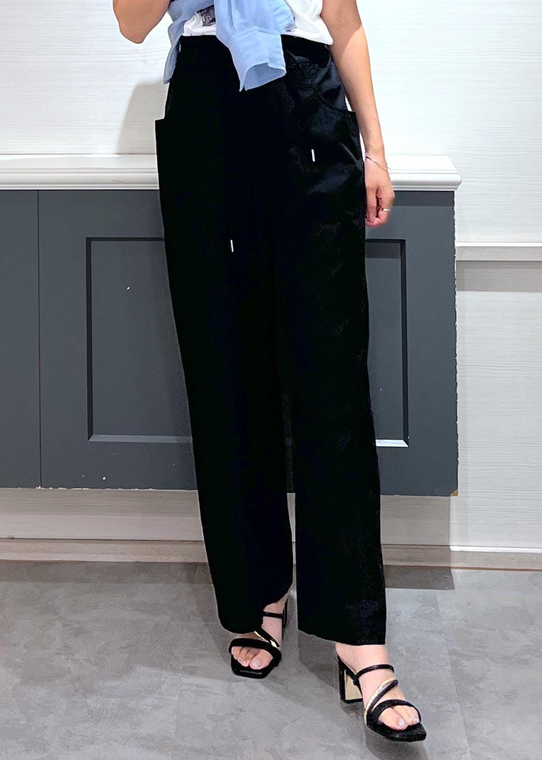 アウトレットVIS【接触冷感/洗える】ドロストワイドパンツブラック / F¥2,636レビュー166cmでくるぶしが完全に隠れる丈で、ぺったんこ靴だとギリギリ地面に当たるか当たらないかくらいでした。