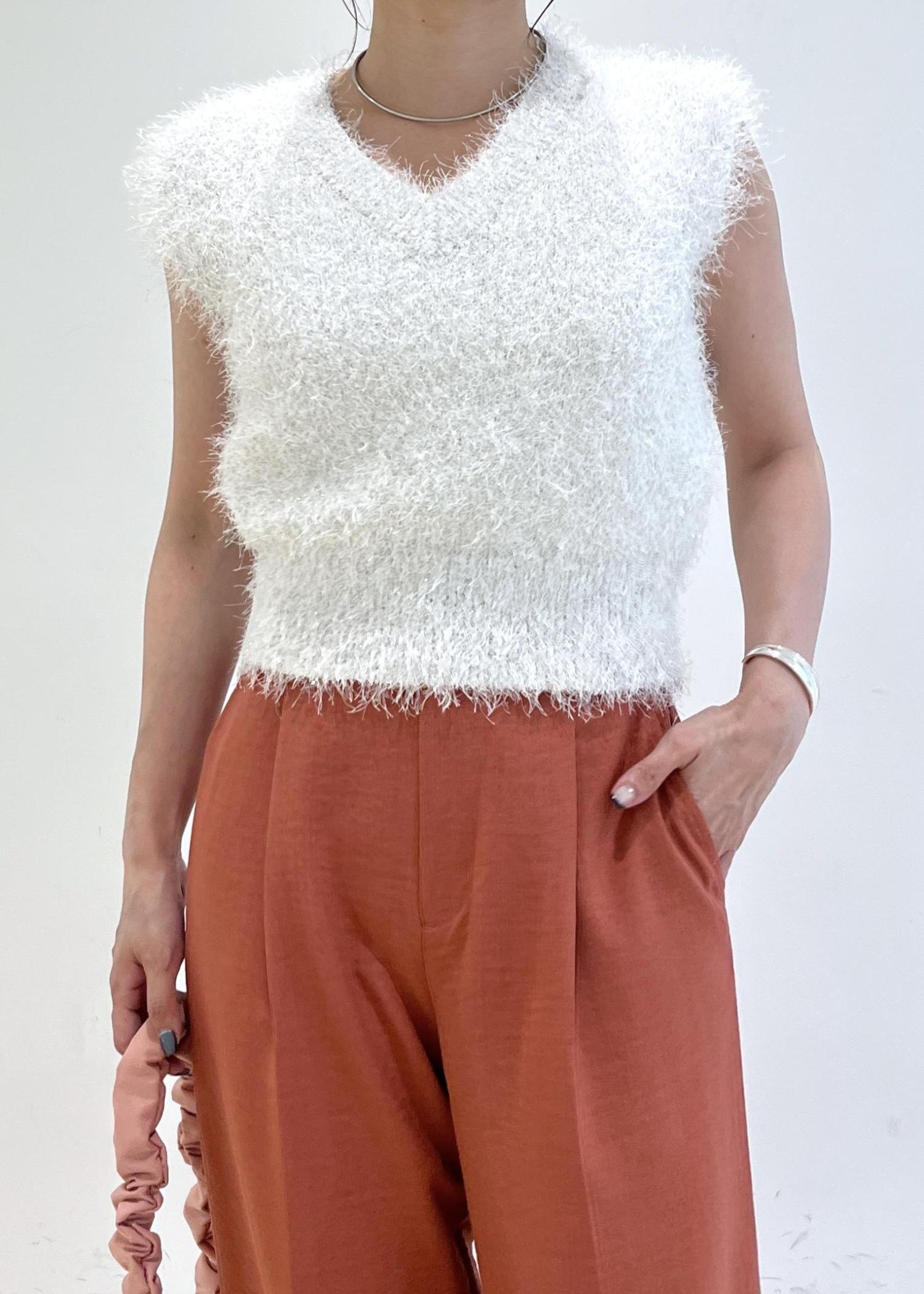 VIS【WEB限定サイズ:MT/着丈が選べる】【洗える】フェザーヤーンニットベストホワイト系 / M¥3,293レビュー158㎝でMサイズ着用。