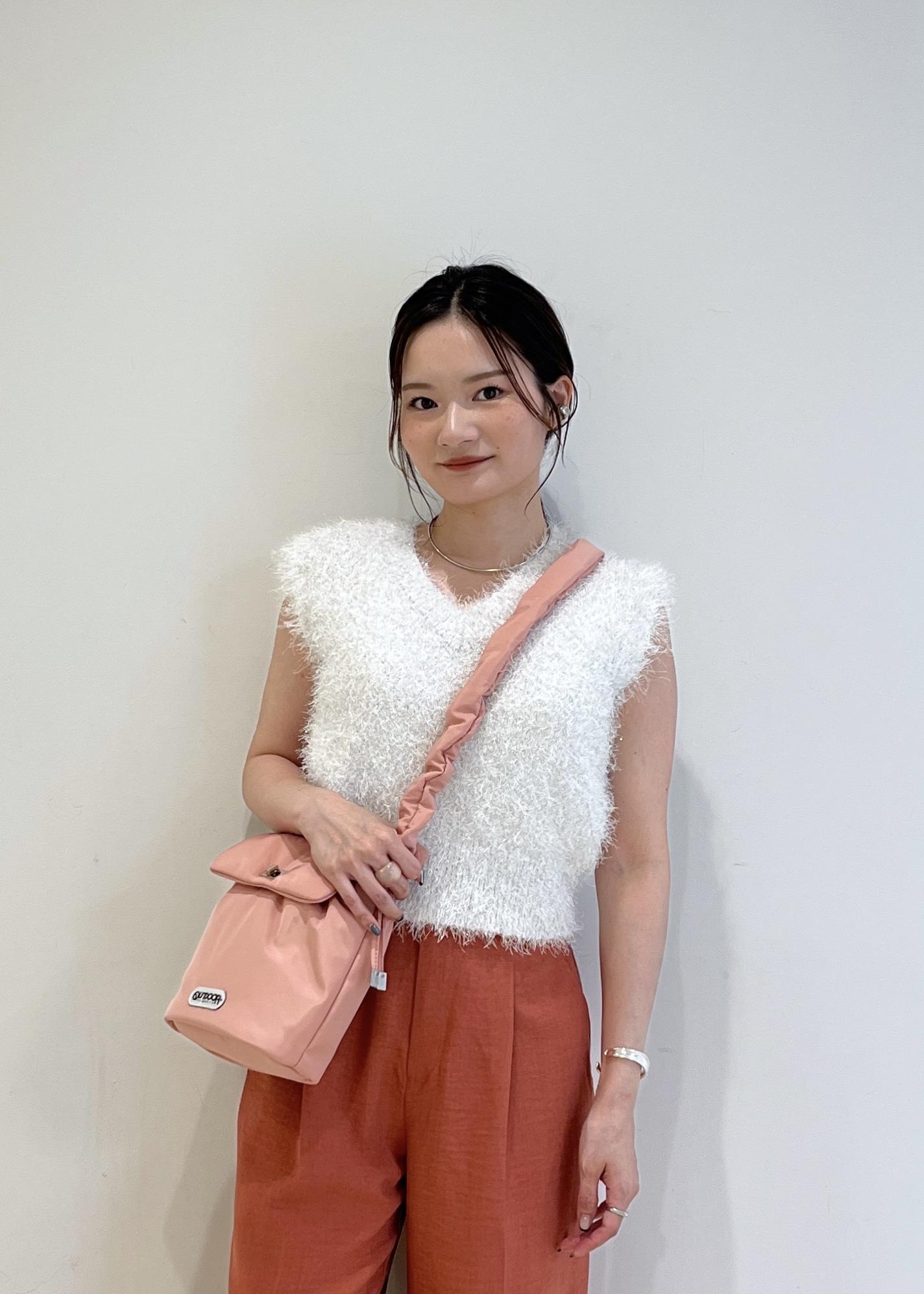 バッグを使って、甘めな大人カジュアルコーデに仕上げました。