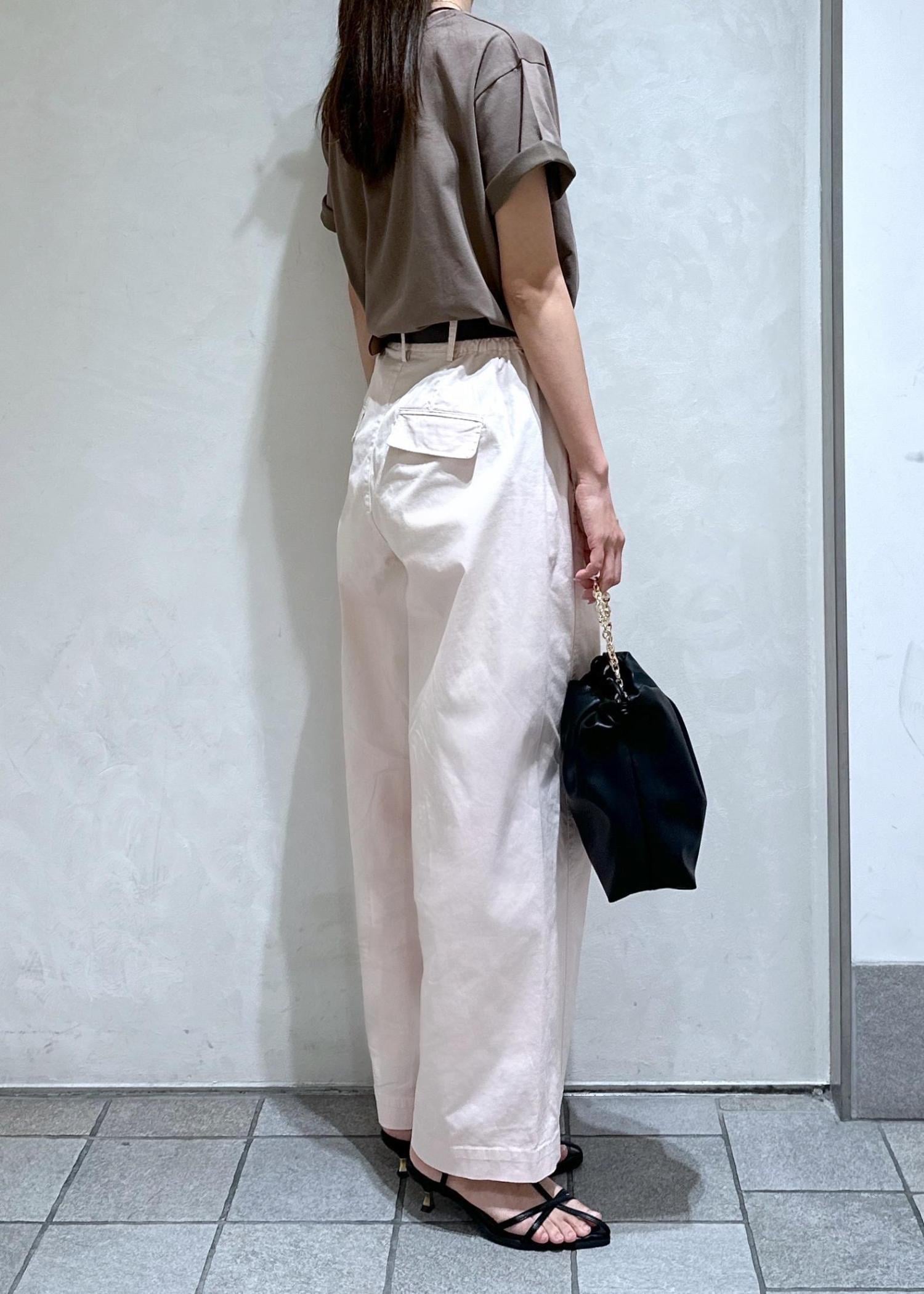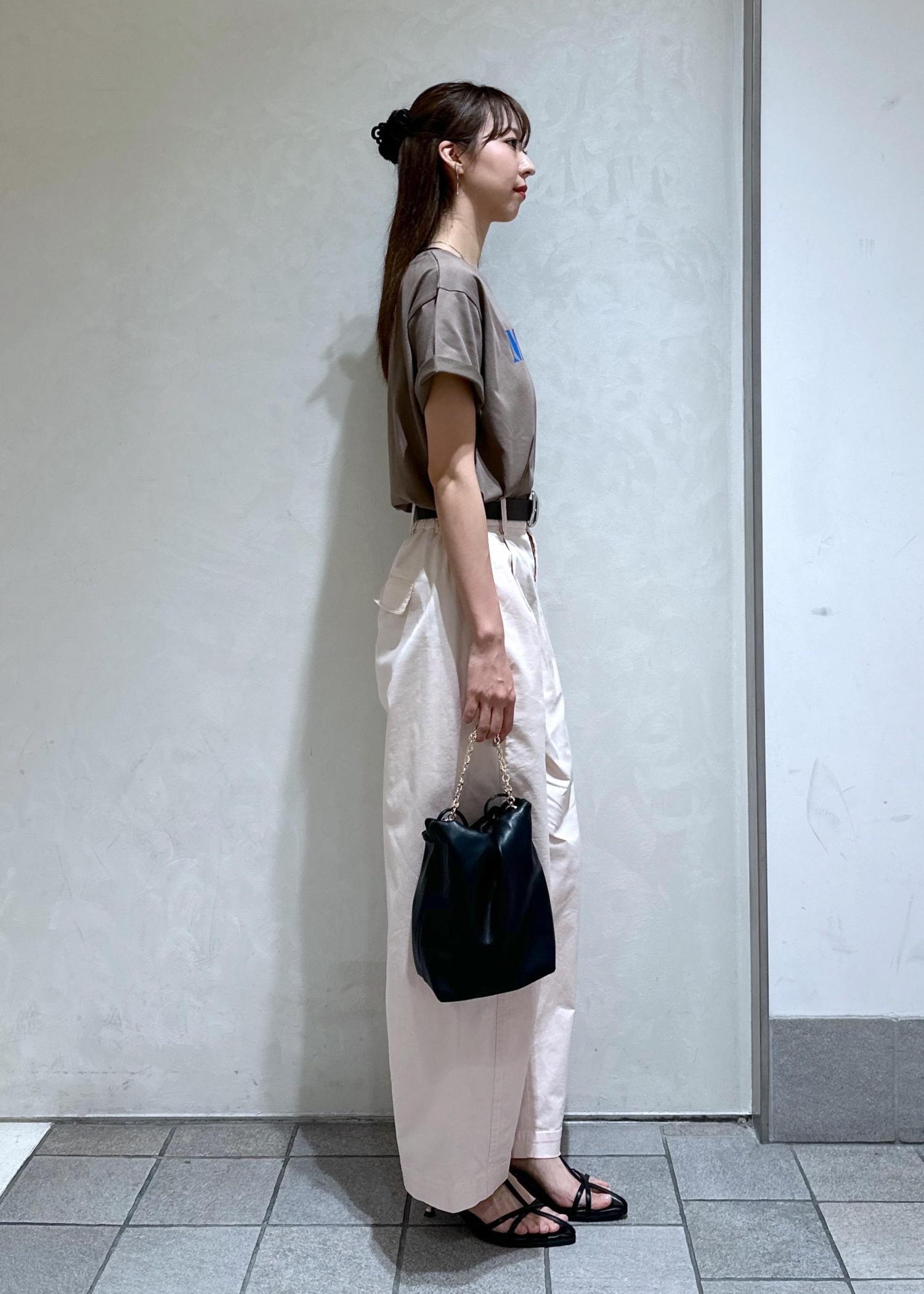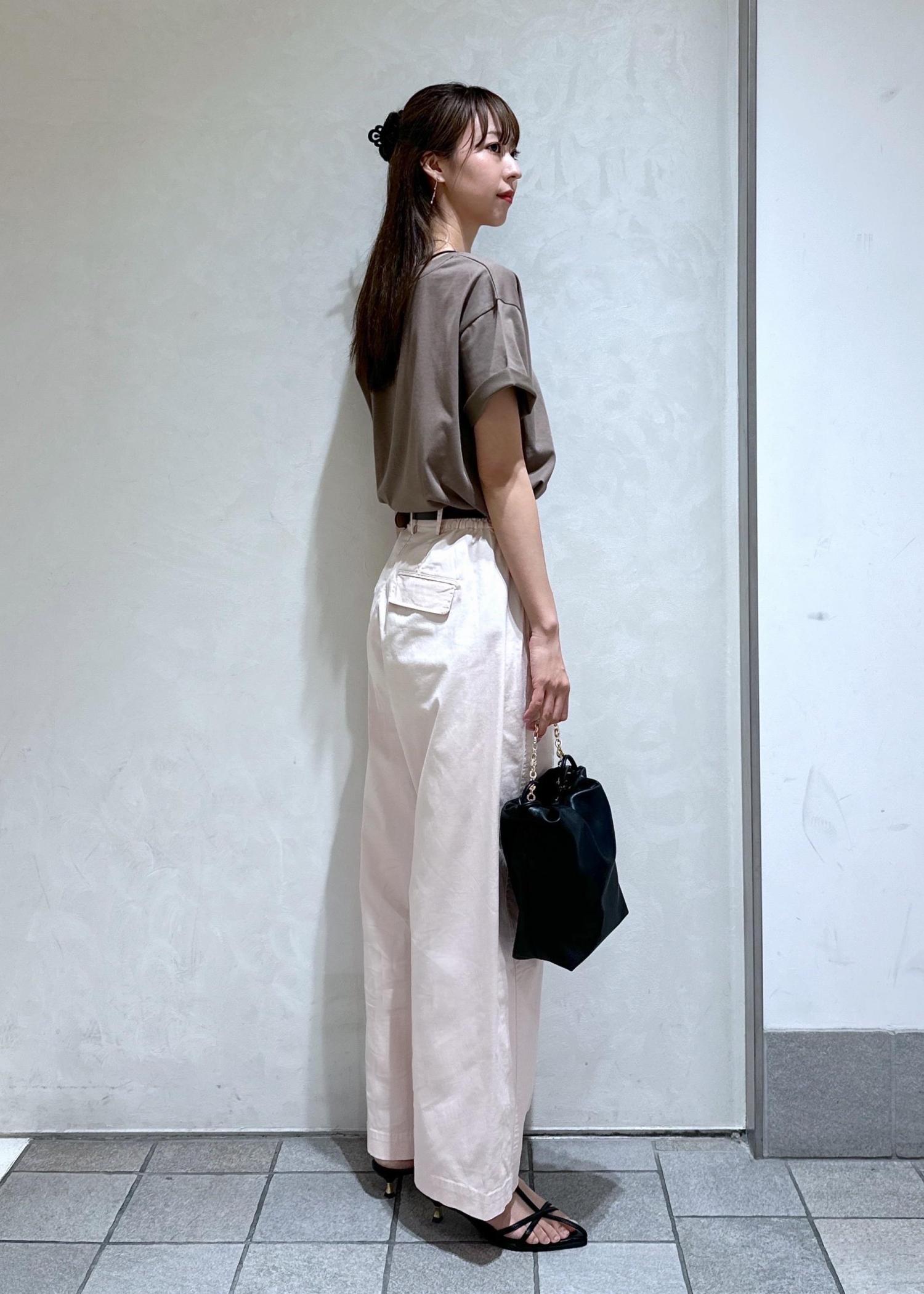 サンダルやパンツの色味で女性らしさを入れてます♡