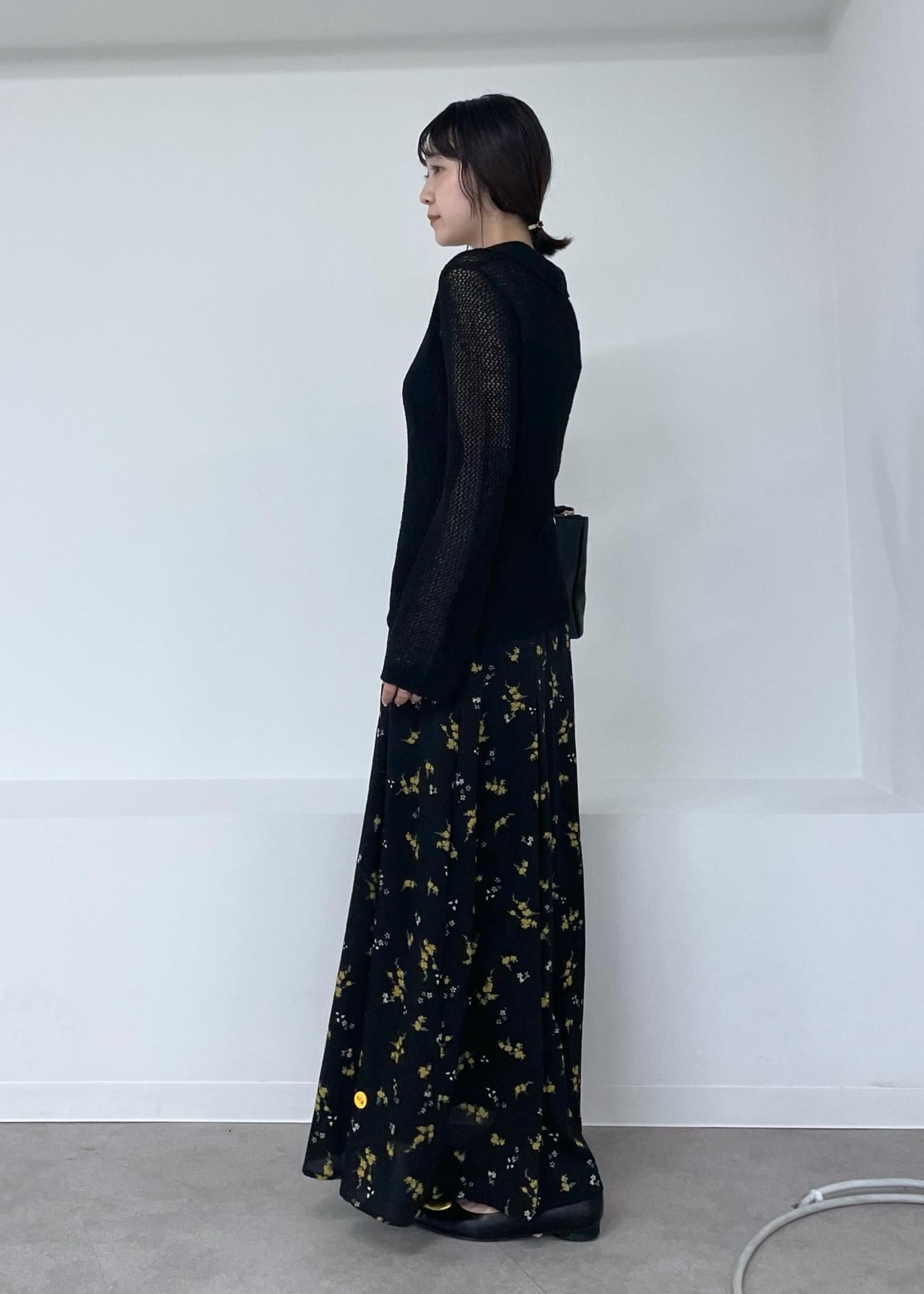 VIS【WEB限定】アソート柄セミフレアロングスカートブラック系 / F¥3,295レビュー身長159cmでくるぶしにかかるトレンド感のあるロング丈、広がりすぎないフレアシルエットで大人な雰囲気に!
