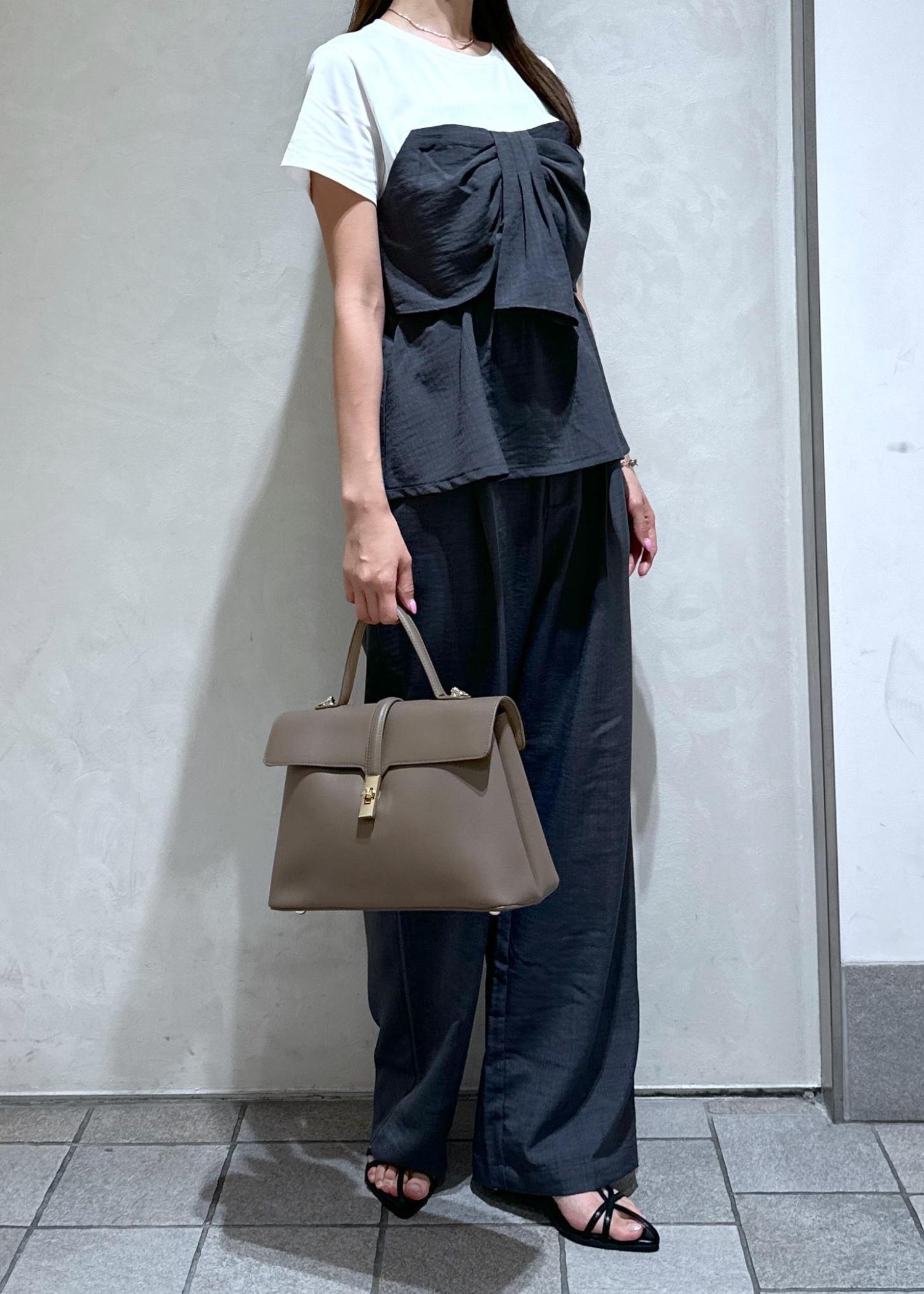 VIS【新色追加】【美easy】ねじりリボンTシャツドッキングプルオーバー【接触冷感/洗える】チャコール / F¥5,489レビュー大きなリボンが特徴なトップスです!一枚で楽におしゃれが出来るのでとても活用出来るアイテムです!セットアップで着ても、デニムに合わせていただいても可愛いデザインですよ♪
