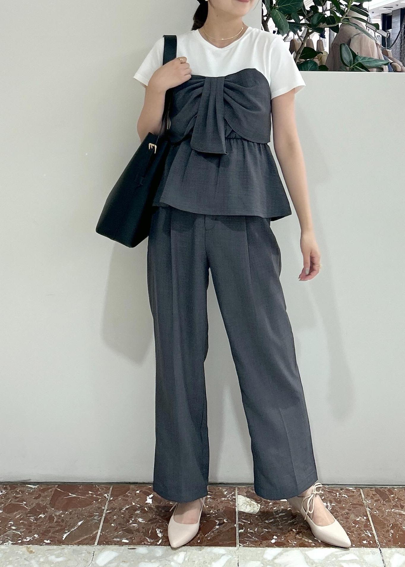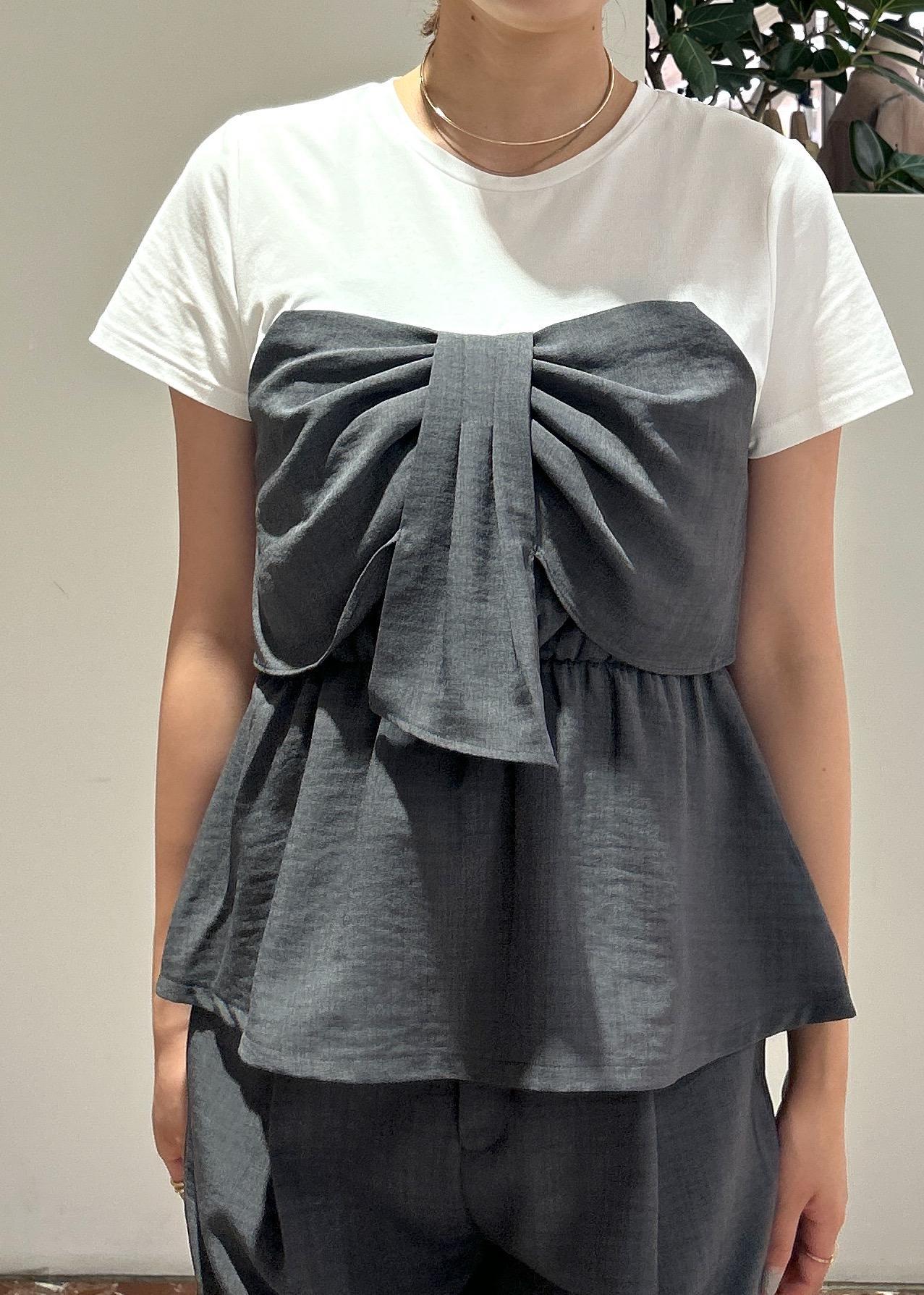 VIS【新色追加】【美easy】ねじりリボンTシャツドッキングプルオーバー【接触冷感/洗える】チャコール / F¥5,489レビュー全体的なサイズ感はややコンパクトめなので