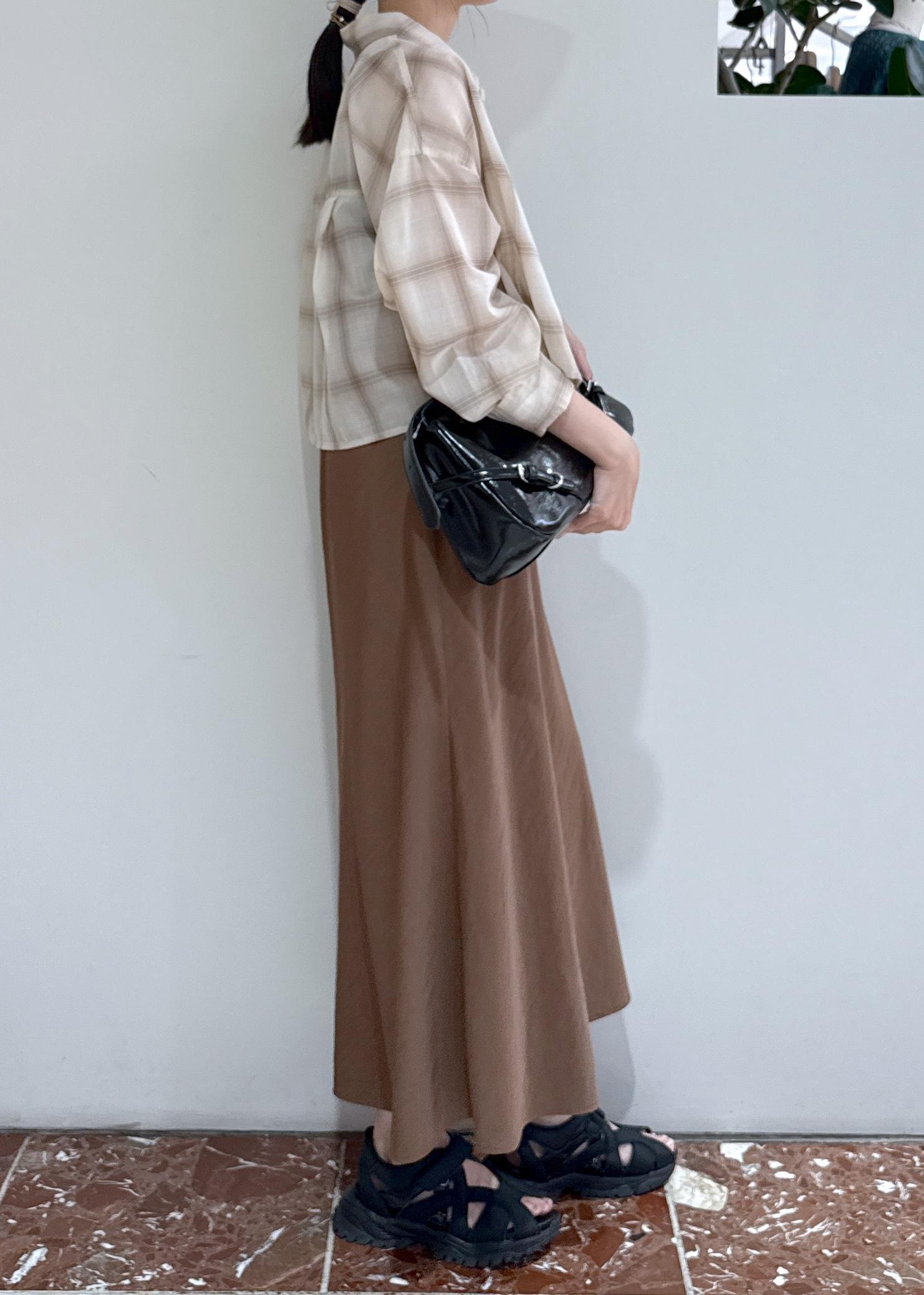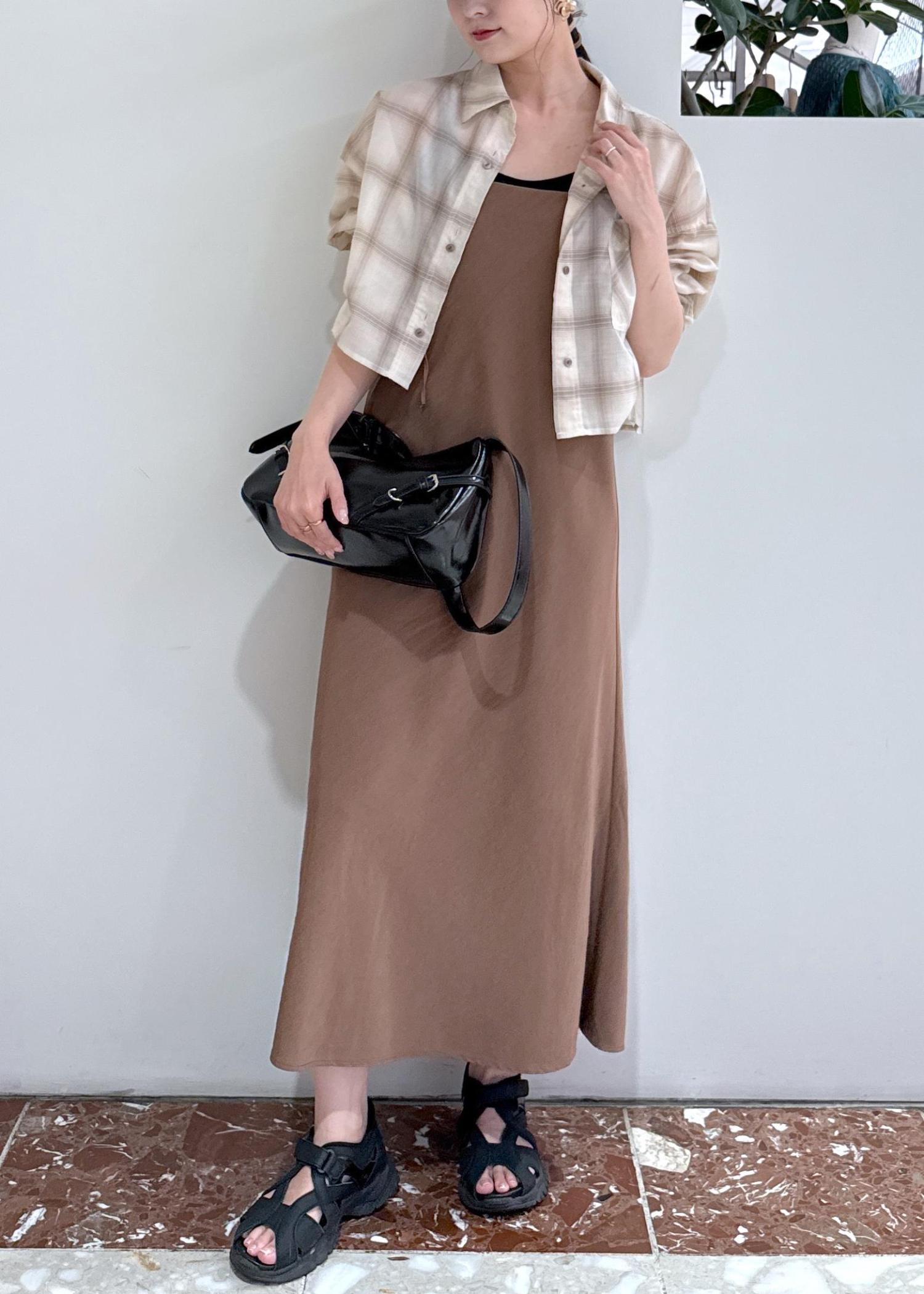 アウトレットVISバイヤス仕立てナローキャミワンピースブラウン / F¥3,076レビューサラッとしていて、身体のラインを拾わずリラックスして着られます。