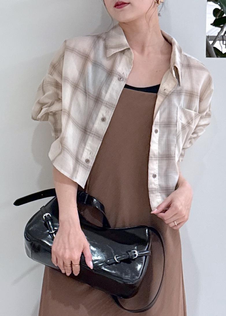 アウトレットVISシアー&チェックショート丈シャツベージュ / F¥3,293レビューサラッとした肌触り。