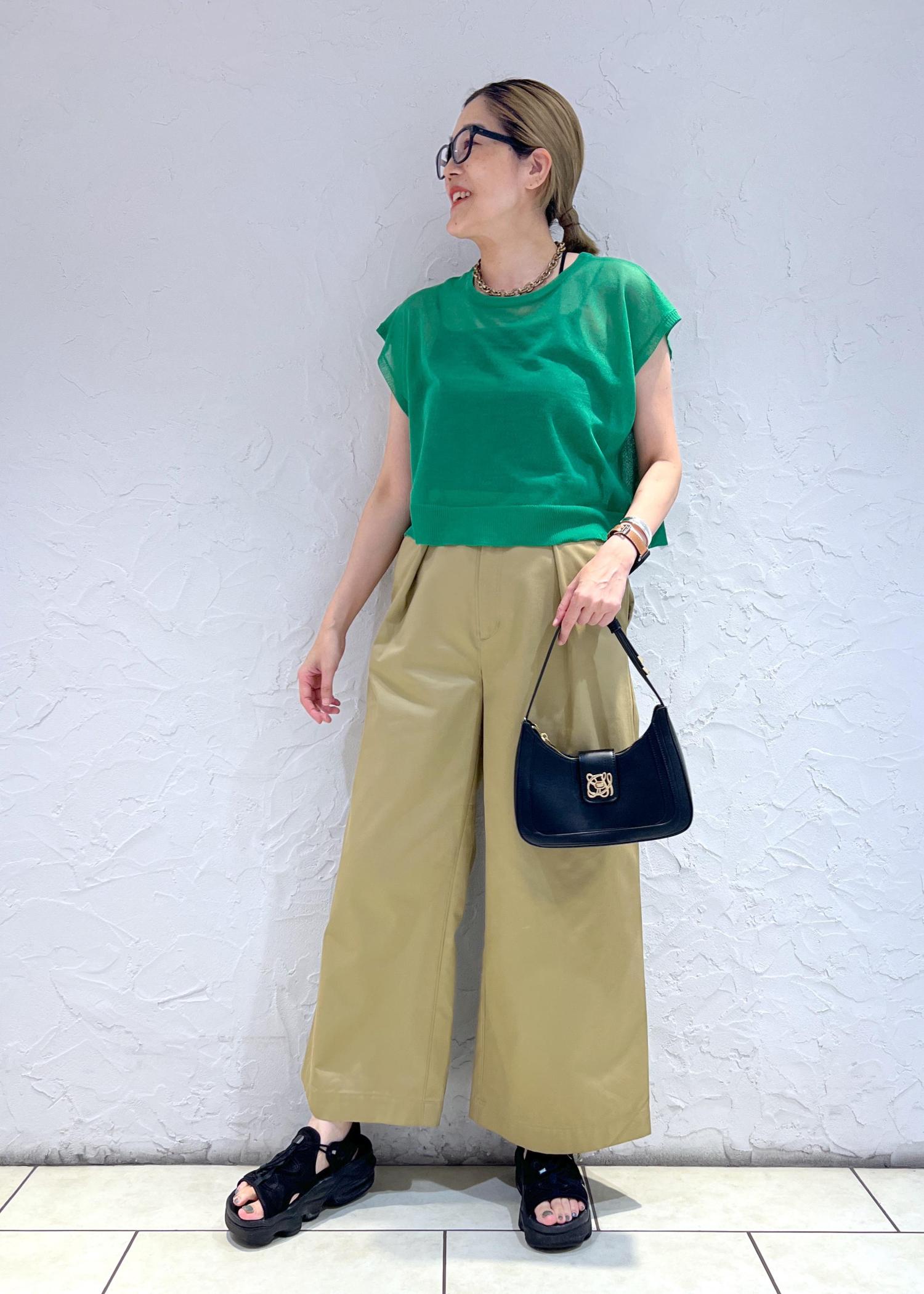 シアーニットは汗染みも気にせず通気性が良いためとにかく涼しいのが楽なんです。