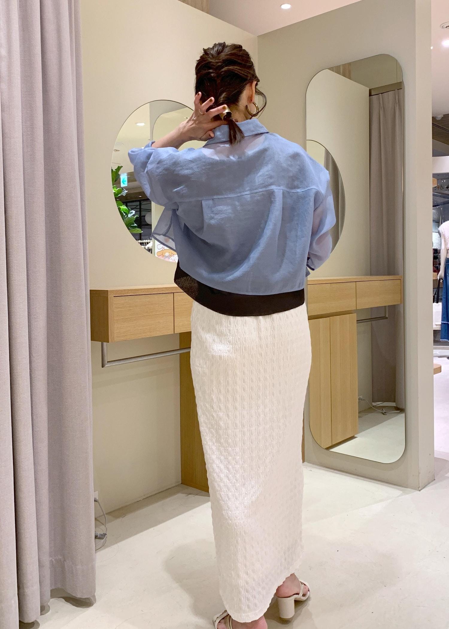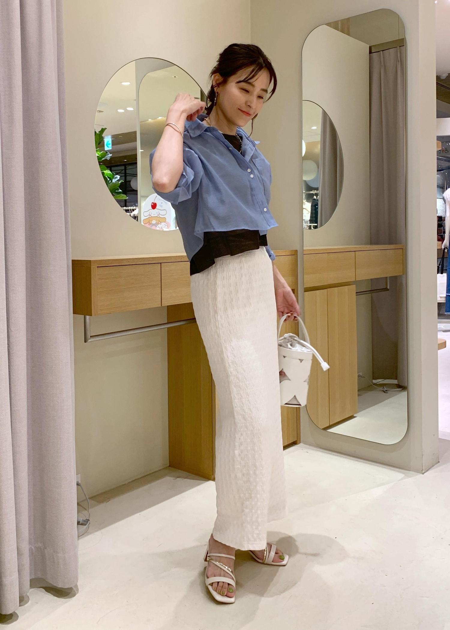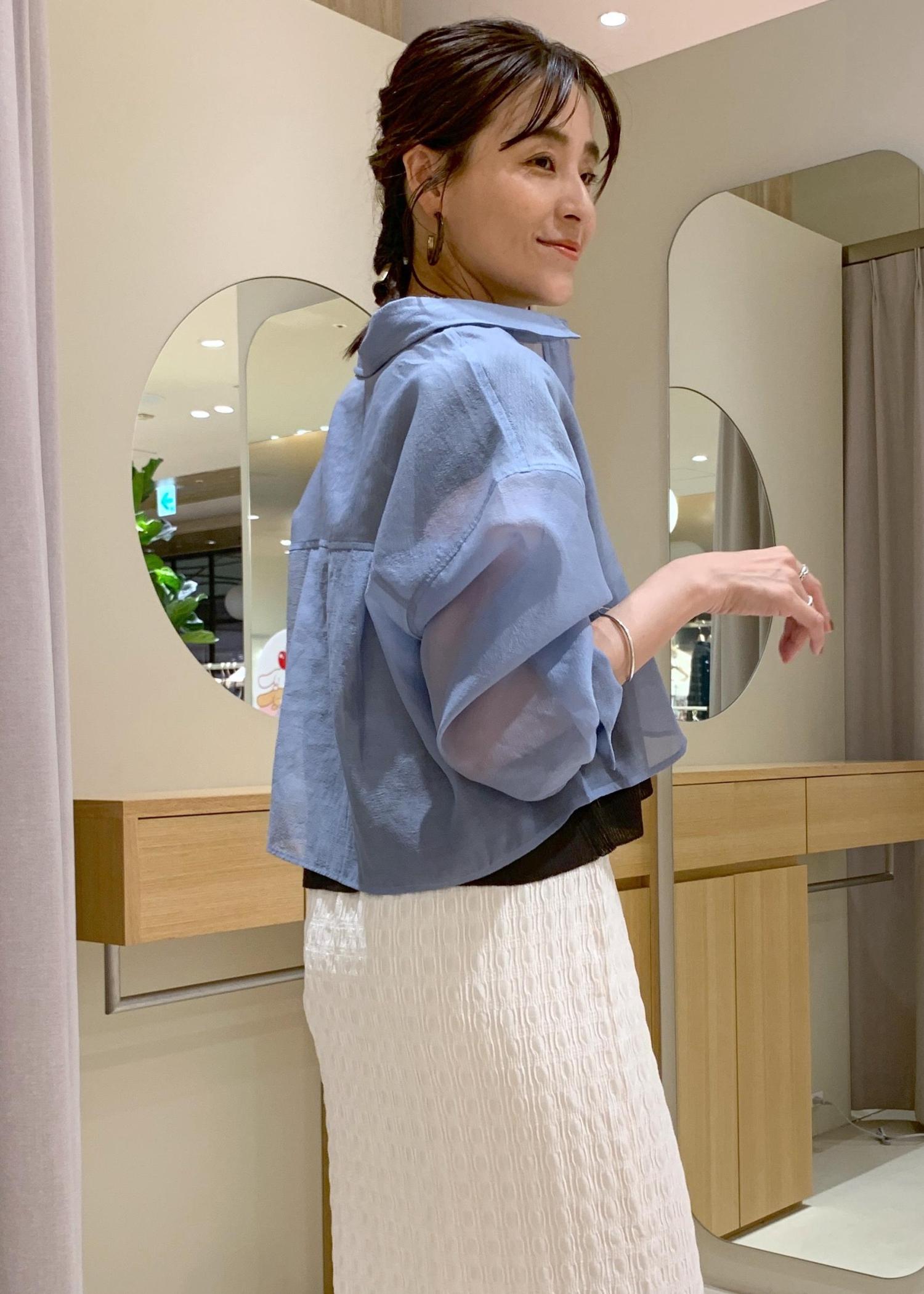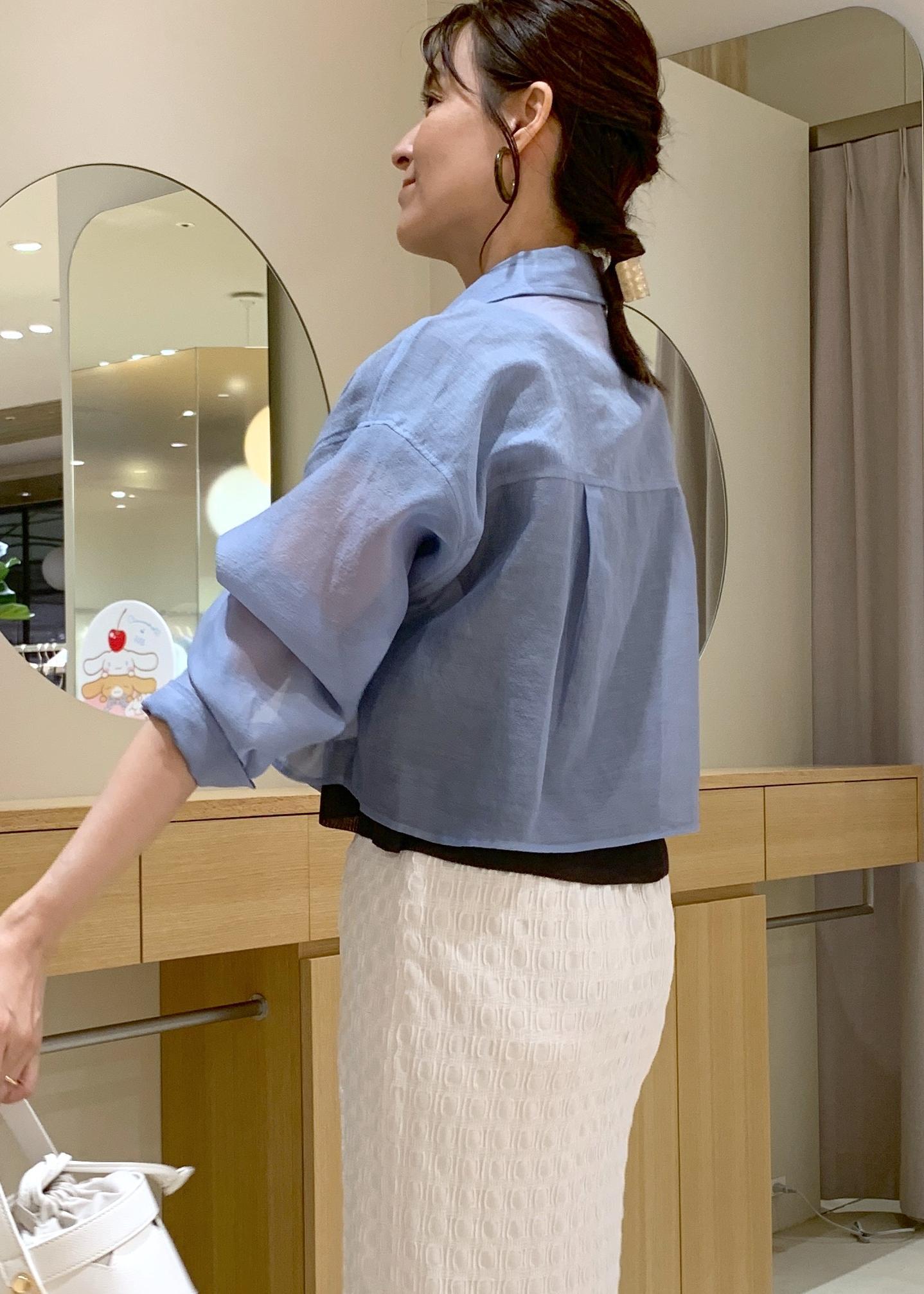 シアー感が涼しく見せてくれて、暑苦しく感じませんでした。少し短丈なのが、ボリュームスカートやワイドパンツをはいた時にバランス感が◎ -