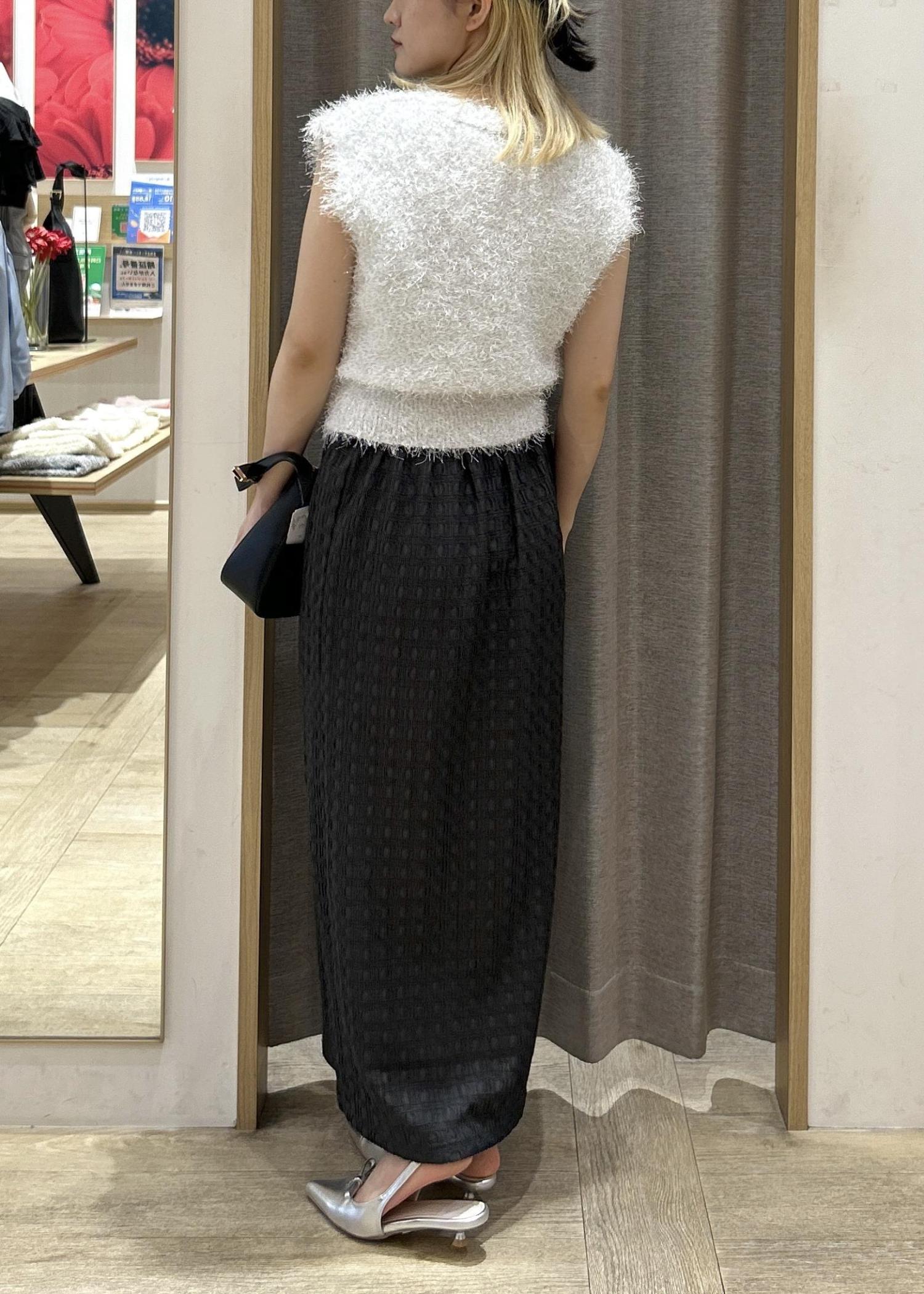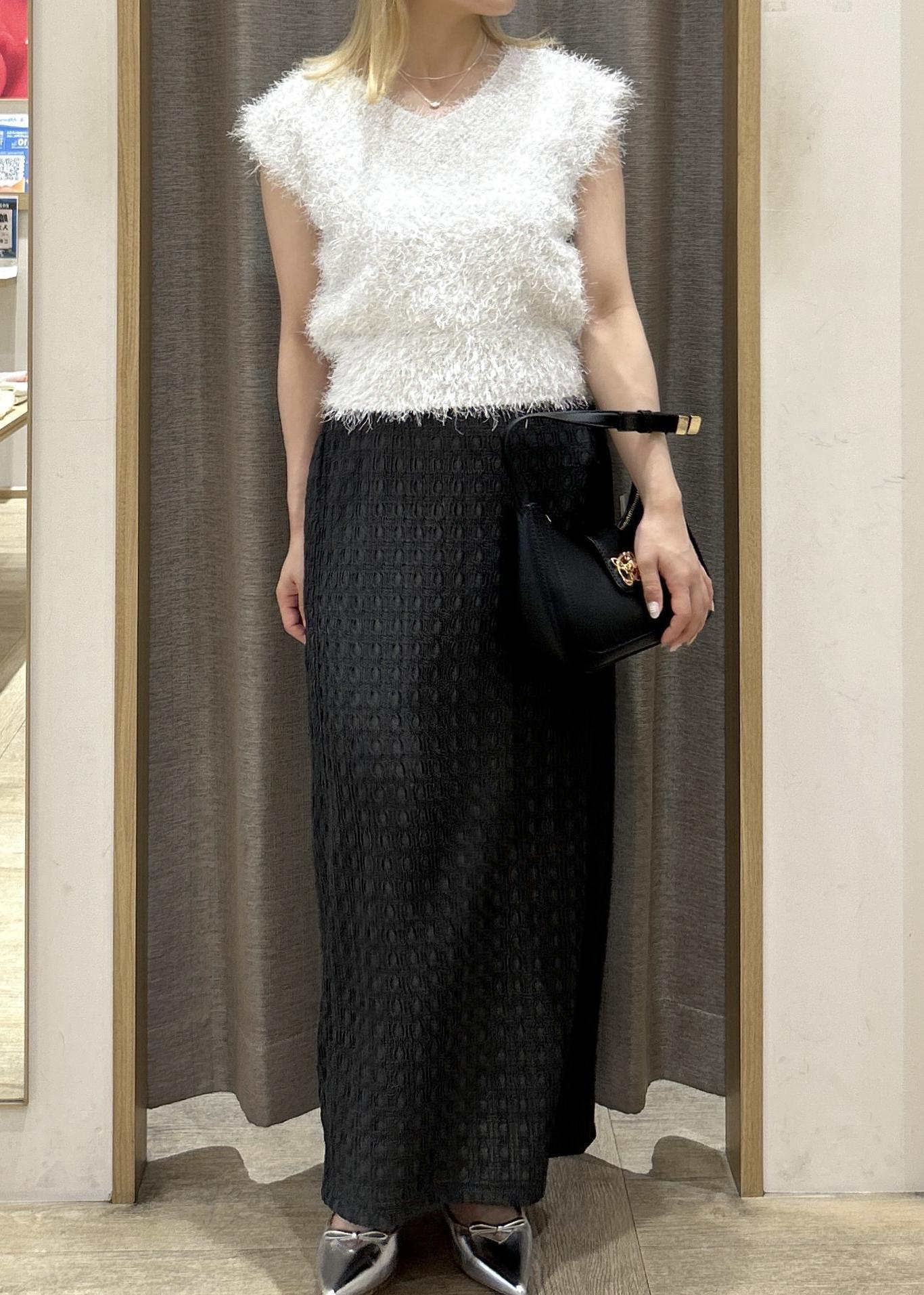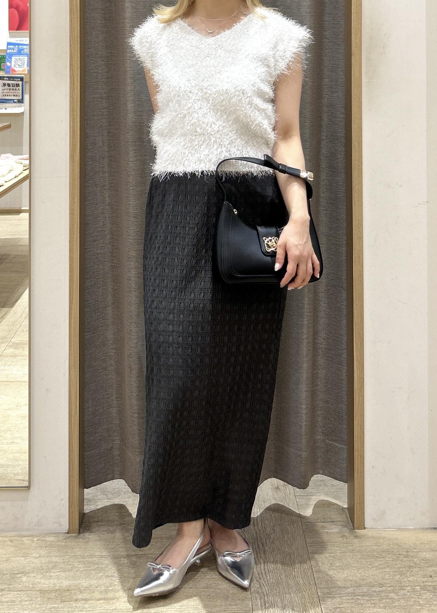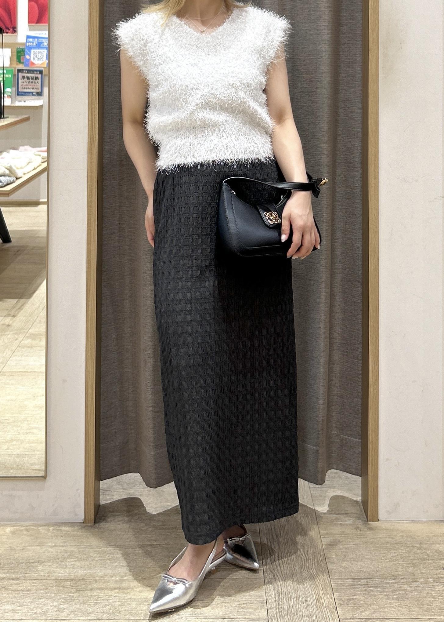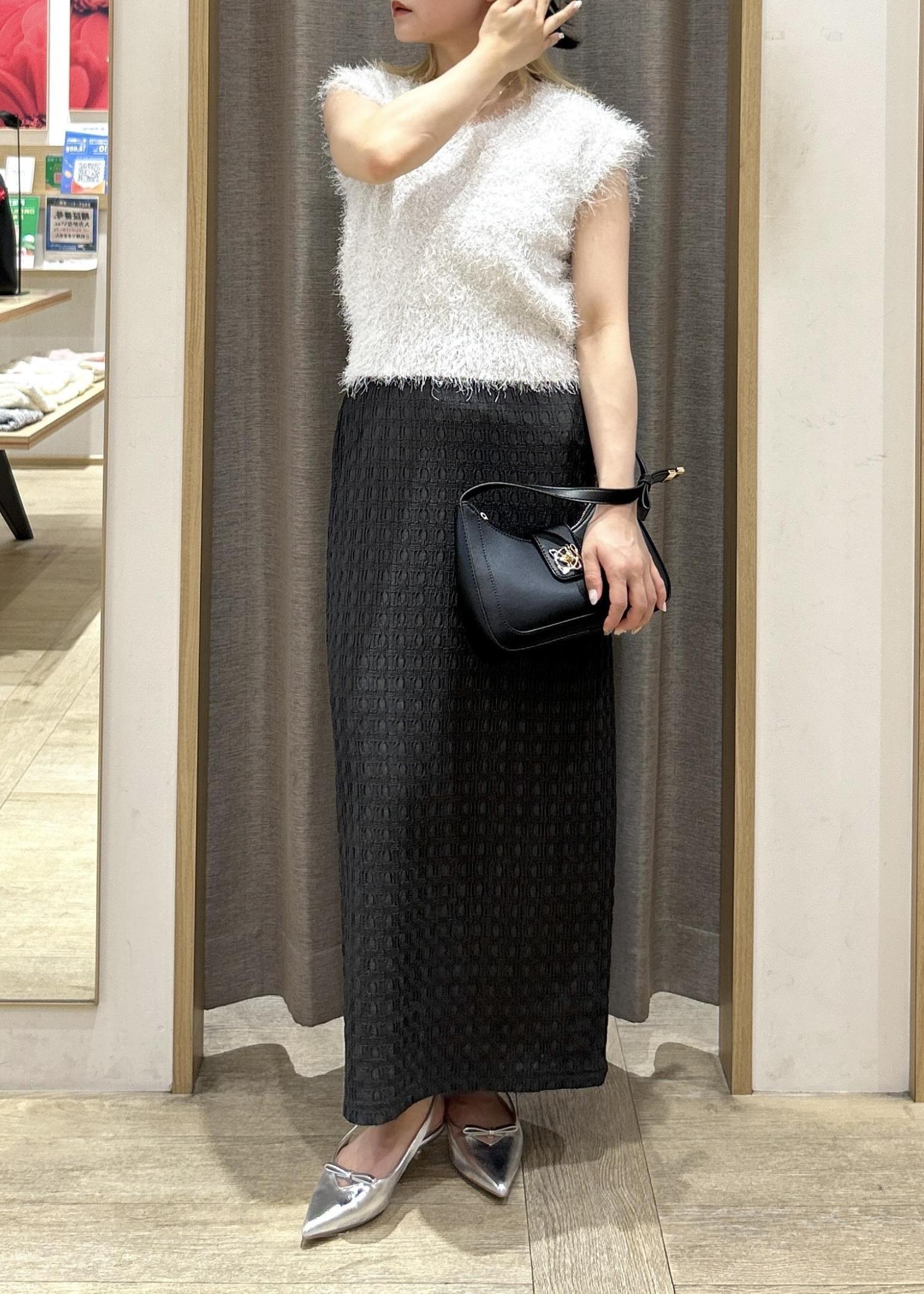 今回はIラインのスカートと合わせてフェミニンな雰囲気で着用しましたが、デニムと合わせてカジュアルな着回しもオススメです☆彡