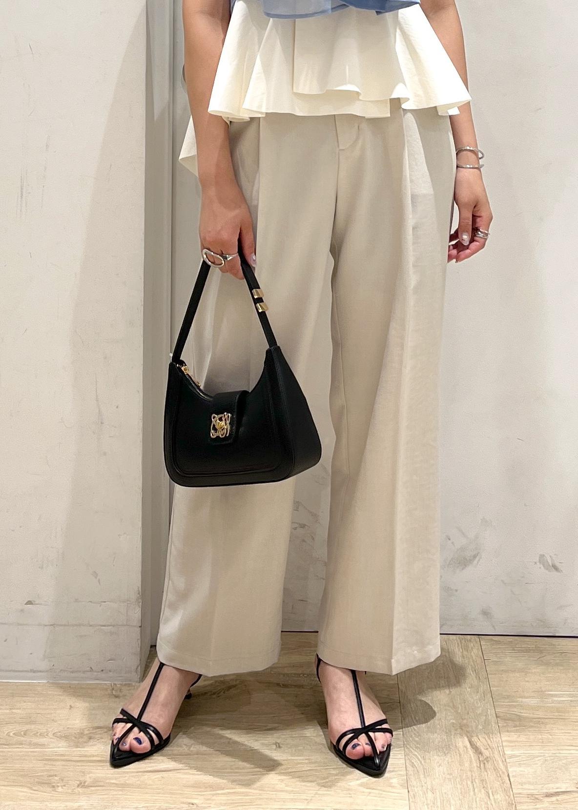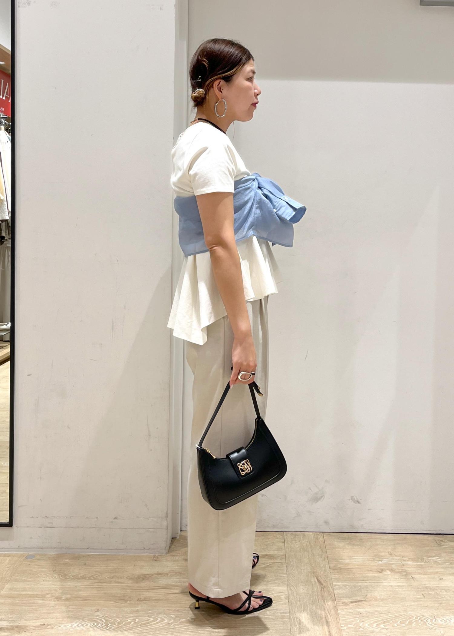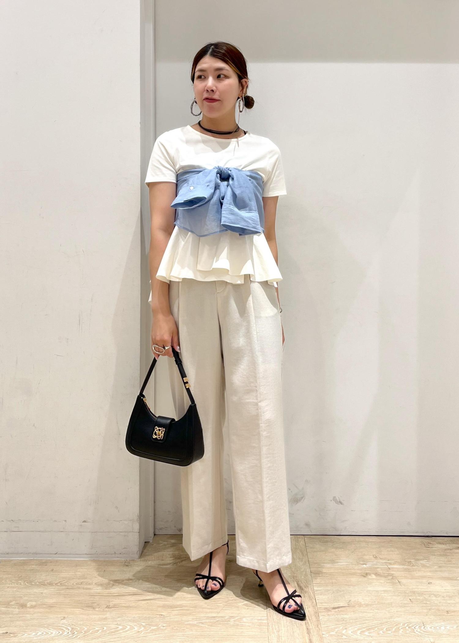 イレギュラーヘムやペプラムシルエットで大人可愛いトップスに美easyパンツ合わせで大人っぽく。