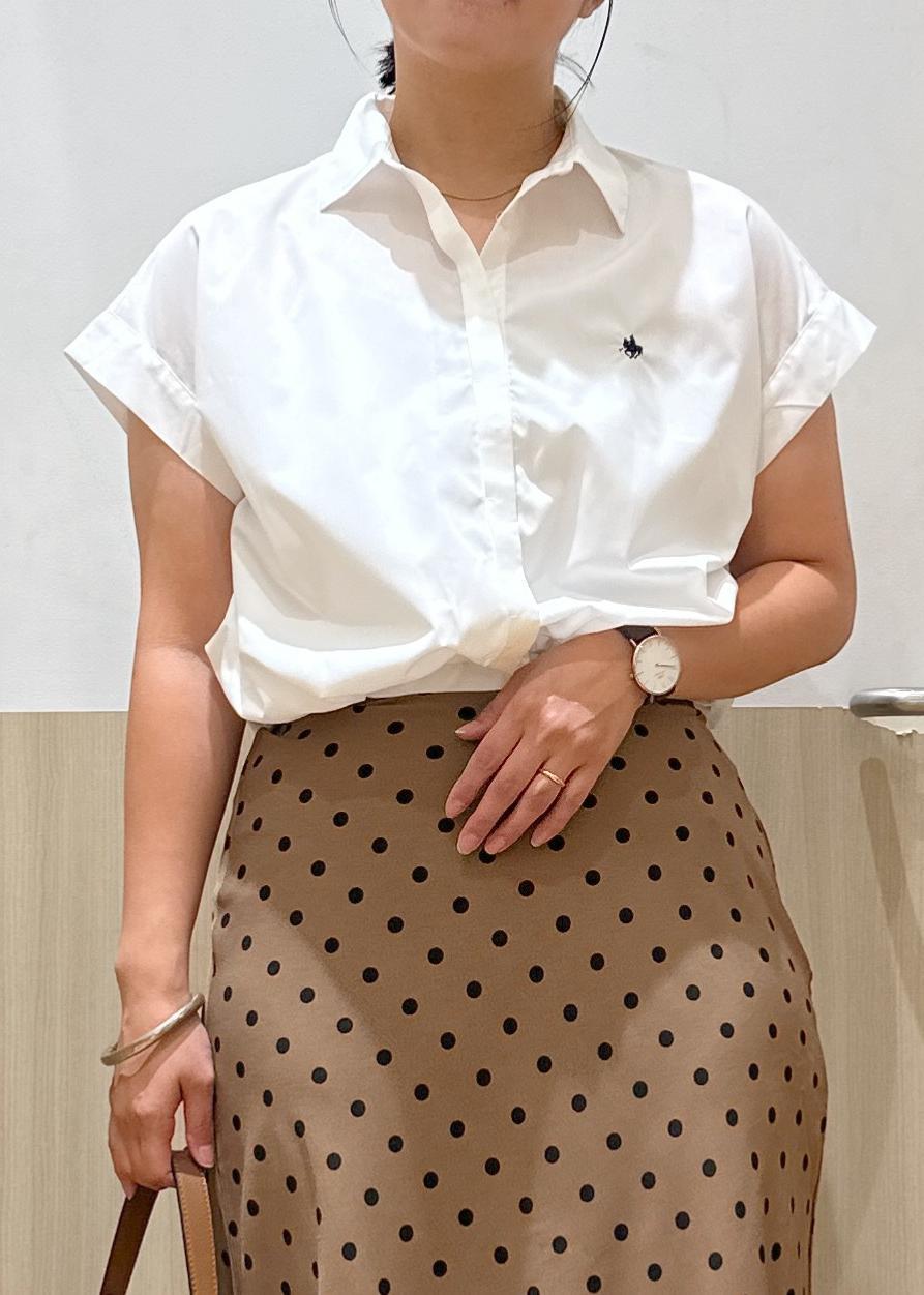 VIS【POLO BCS】VIS別注フレンチスリーブドローストリングシャツホワイト / F¥6,050レビューフレンチスリーブで意外と二の腕を隠してくれました!