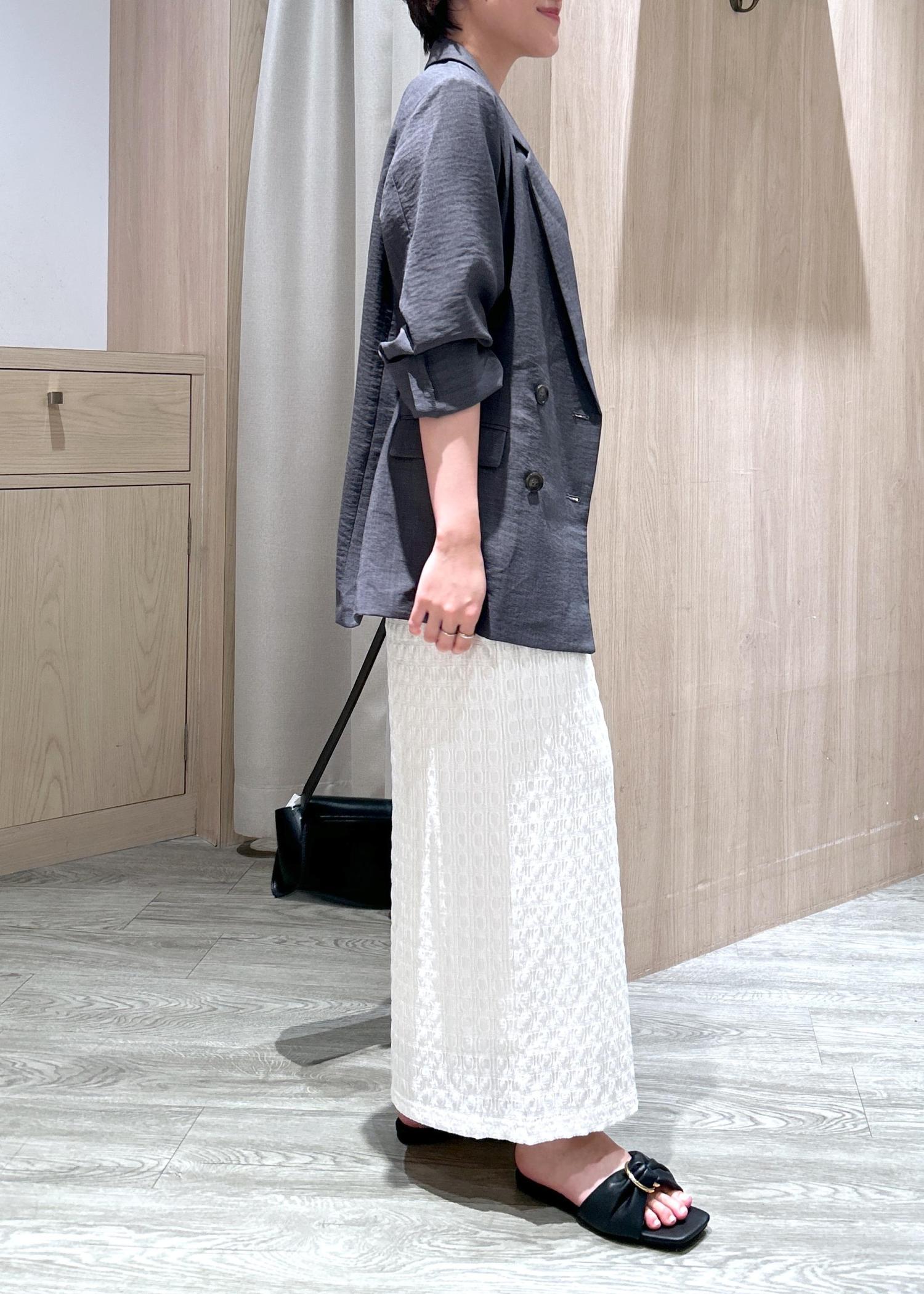 アウトレットVIS【新色追加】【接触冷感】膨れジャガードナロースカートオフホワイト / F¥3,293レビュー身長155cm、ハイウエストで履いて足首が隠れる長さです。