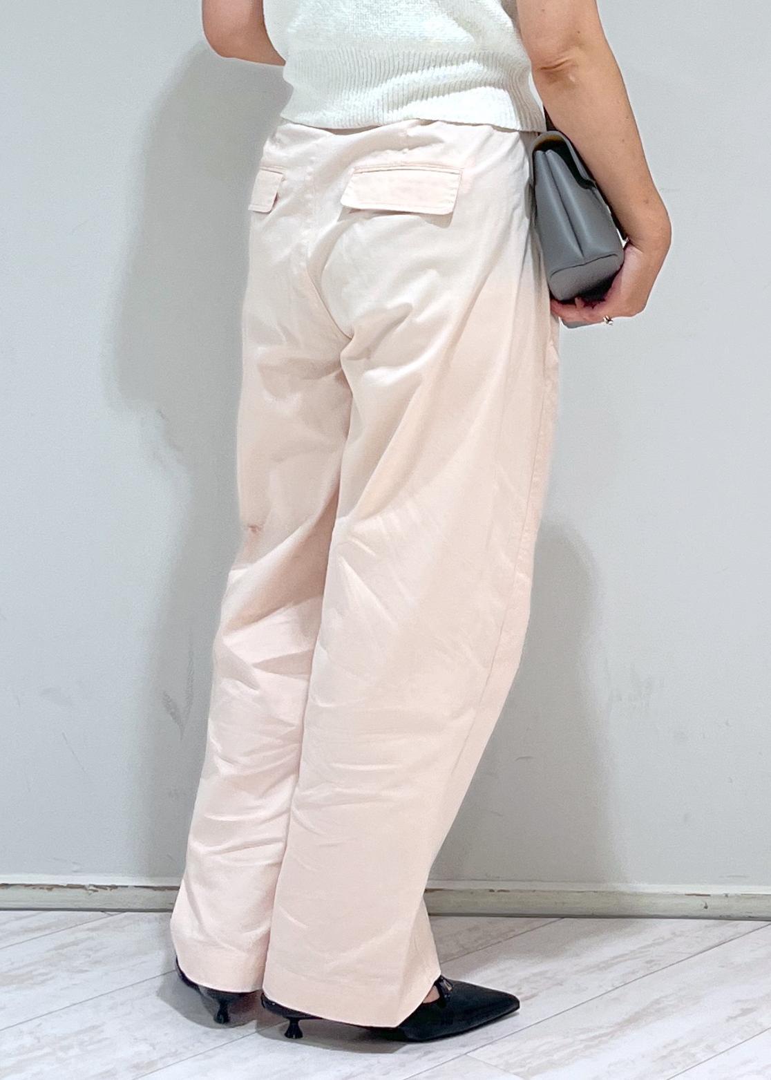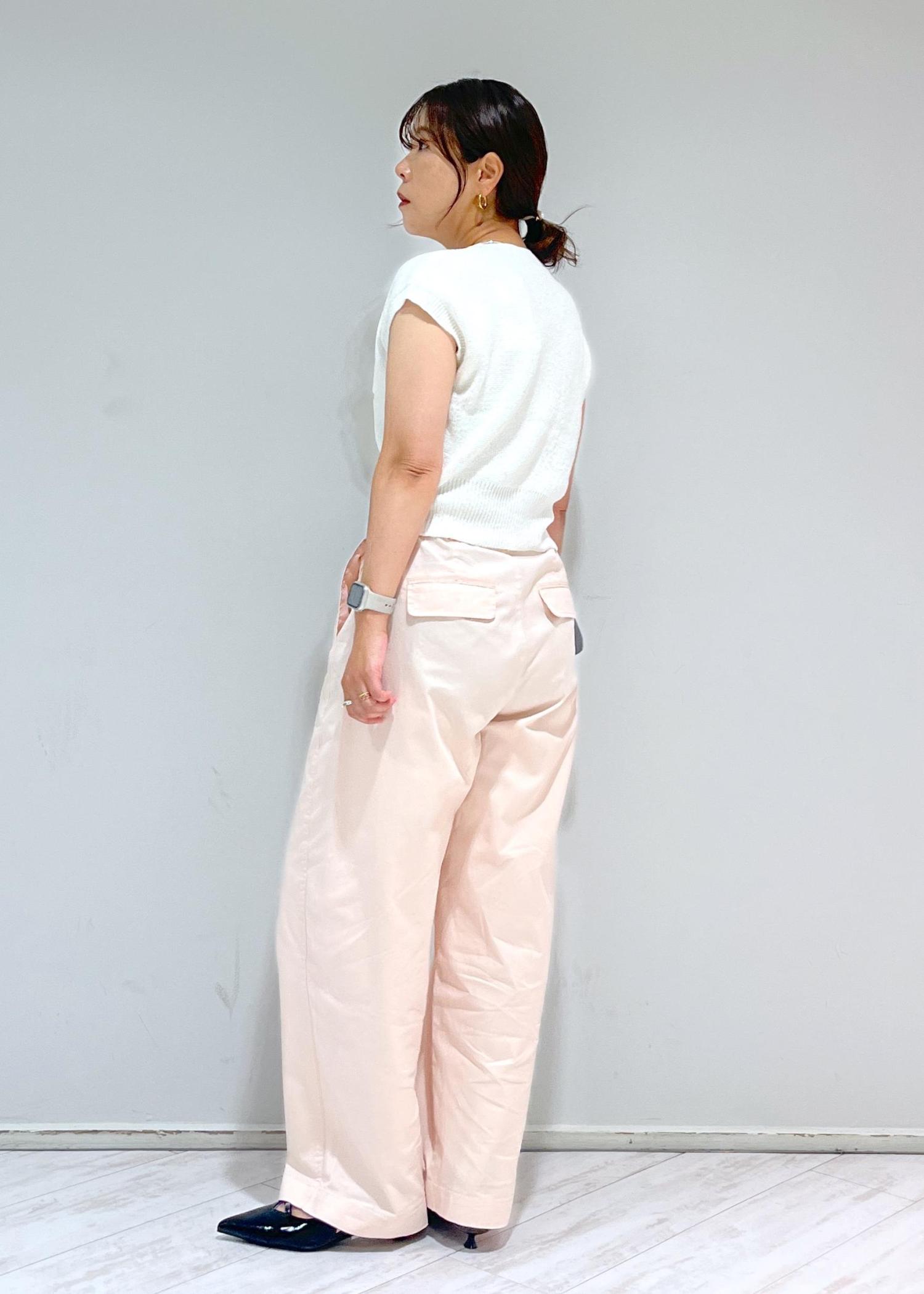 ヒップ辺りはゆったり、膝下ラインから少し細くなるデザインでゆったりリラックスしてお召し頂けます。