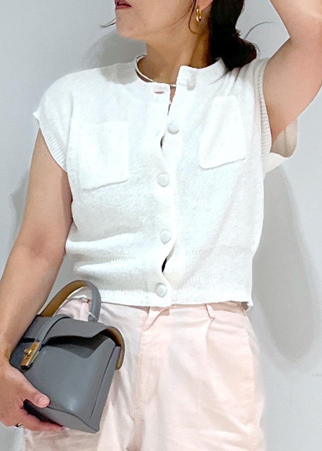 VISくるみ釦ニットトップスカーデ/洗えるオフホワイト / F¥4,939レビューコンパクトなデザインのトップスカーディガンです!