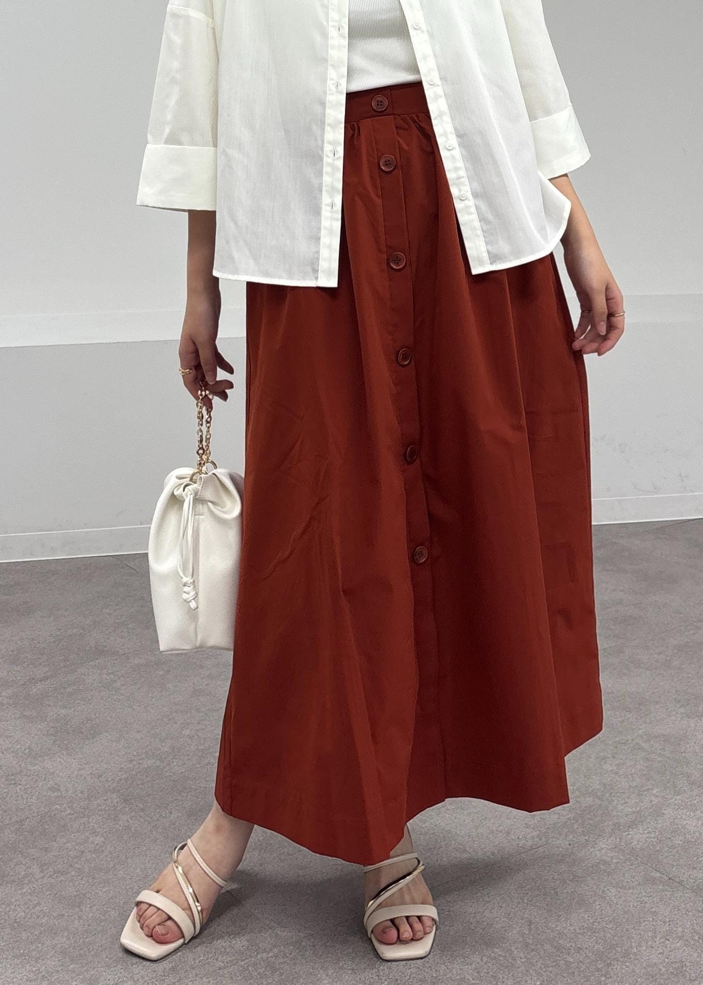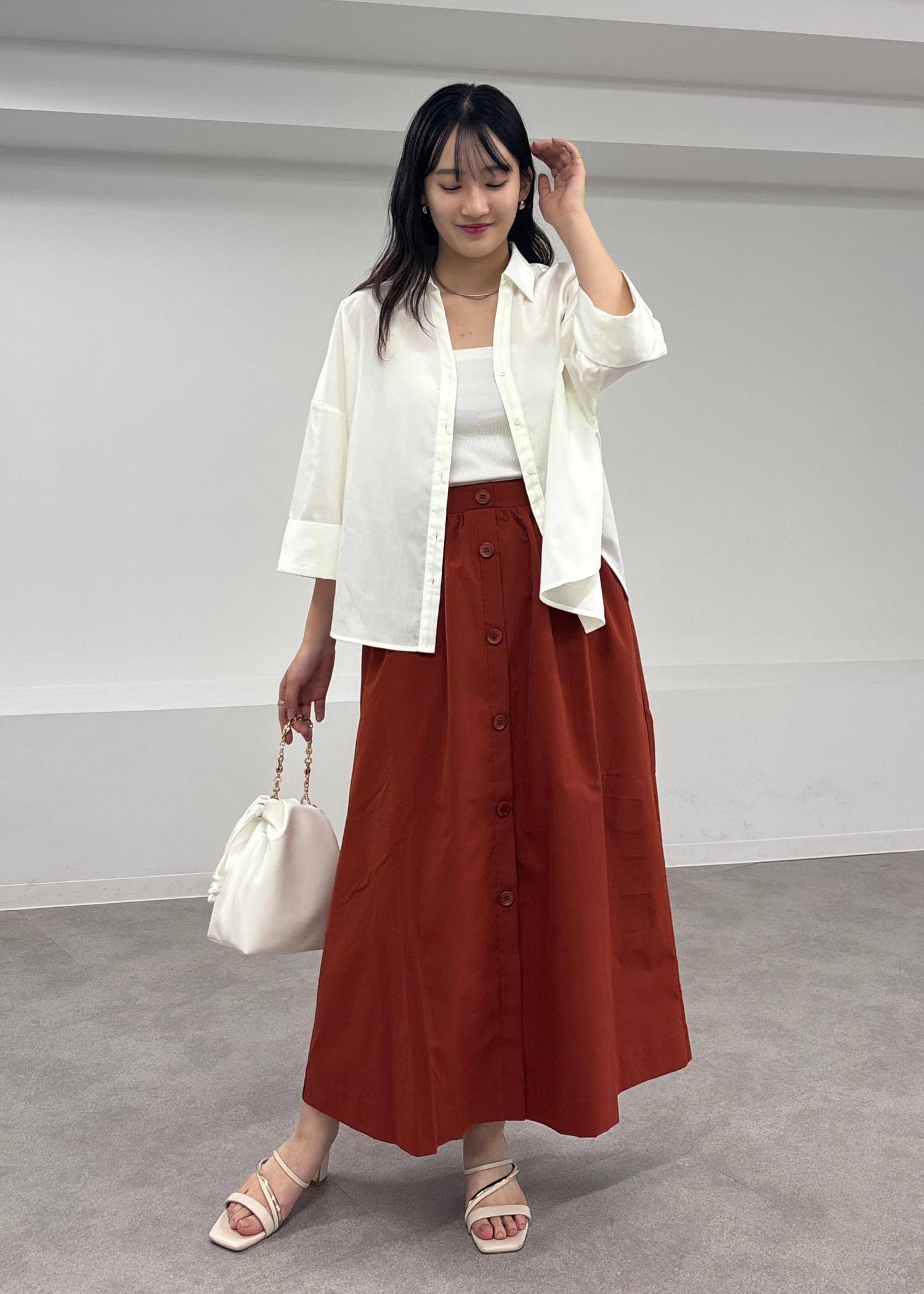 VIS【WEB限定】フロントボタンフレアスカートオレンジ / F¥3,295レビュー165cmでMサイズ着用、足首隠れる丈感です。