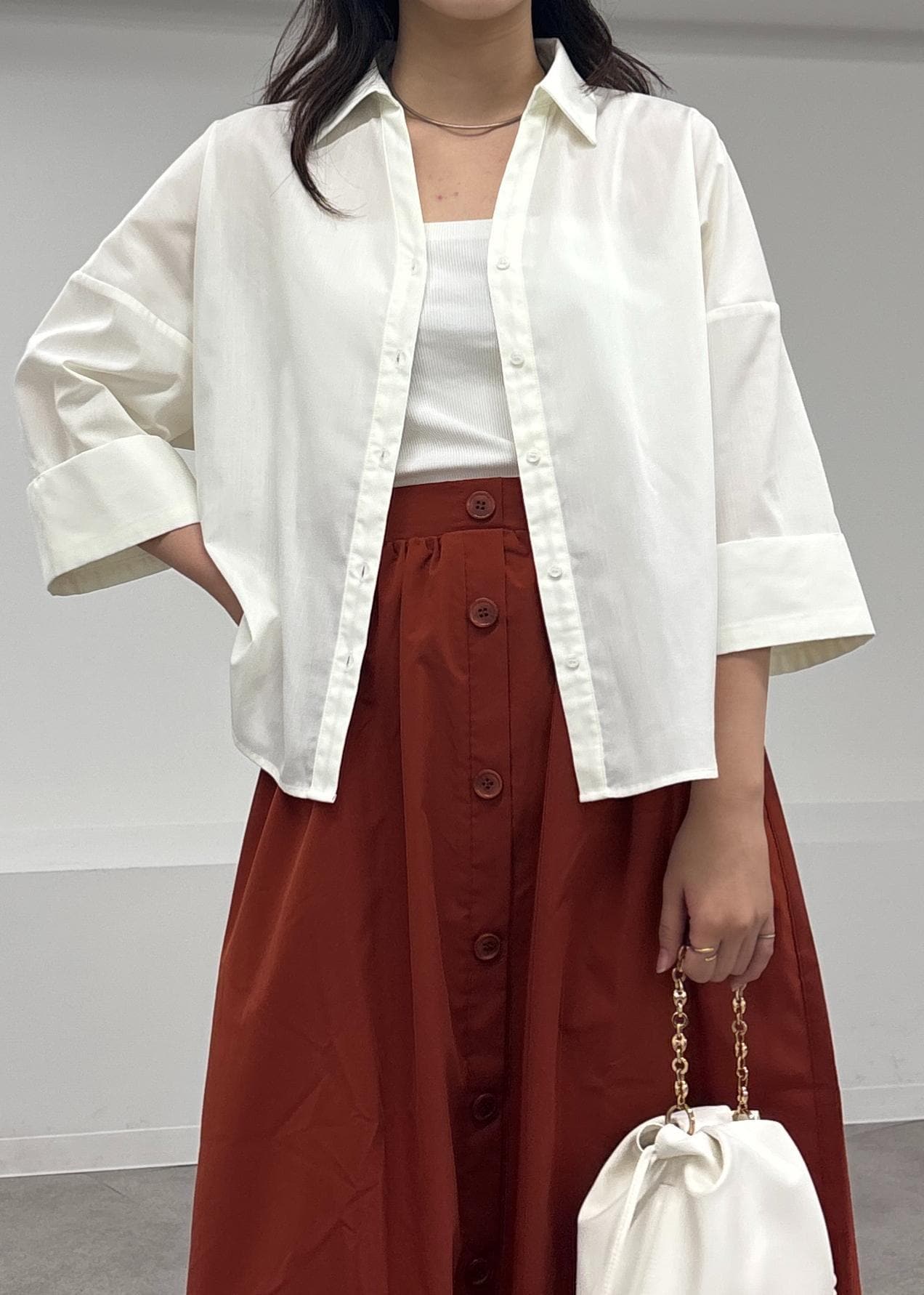 VIS【WEB限定】スキッパーワイドスリーブシャツ/通勤対応キナリ系 / F¥3,293レビュー165cmでお尻にかかる丈感で、安心感があります!