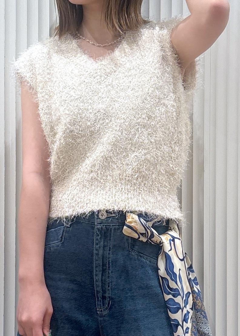 VIS【WEB限定サイズ:MT/着丈が選べる】【洗える】フェザーヤーンニットベストキナリ / M¥3,293レビュー程よいラメ感が可愛いベストです!