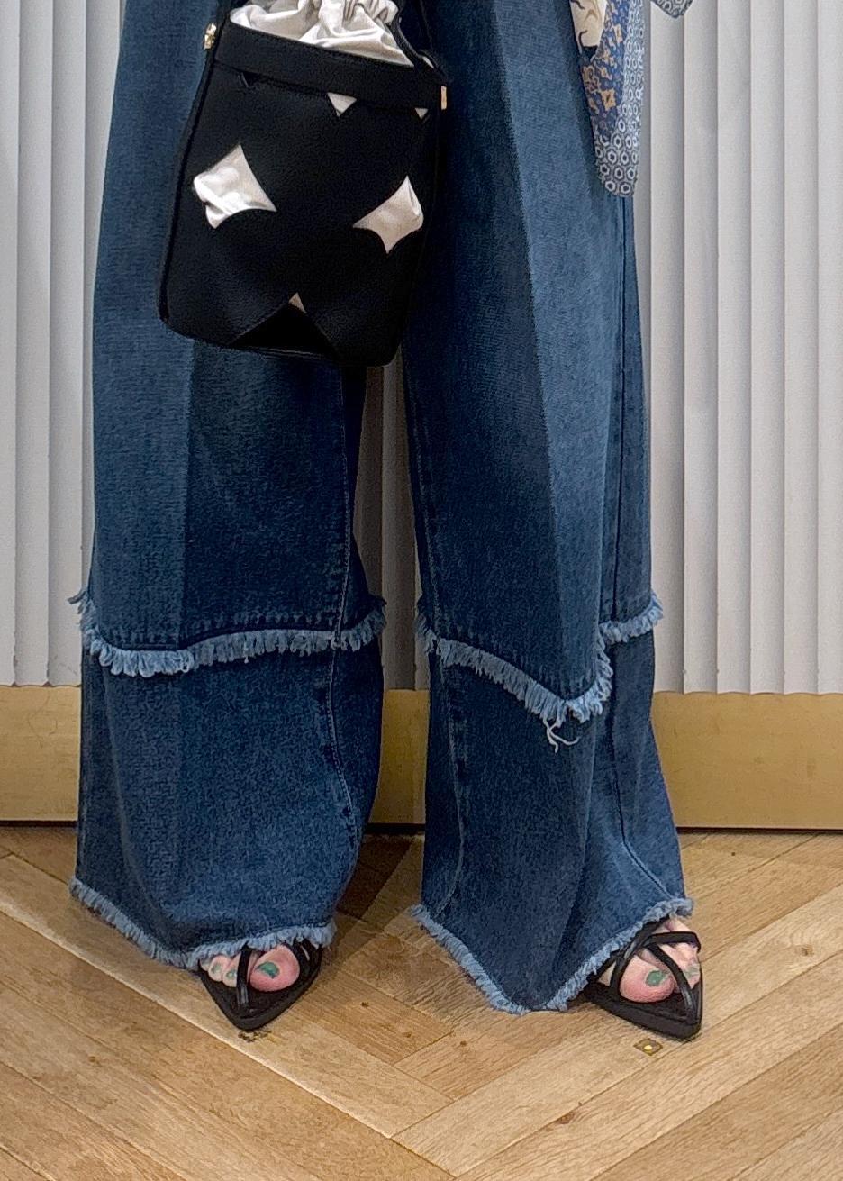 VISフリンジフレアデニムブルー系 / S¥4,395レビュー153センチ着用でヒールを履いてギリギリ引きずらない丈感でした。