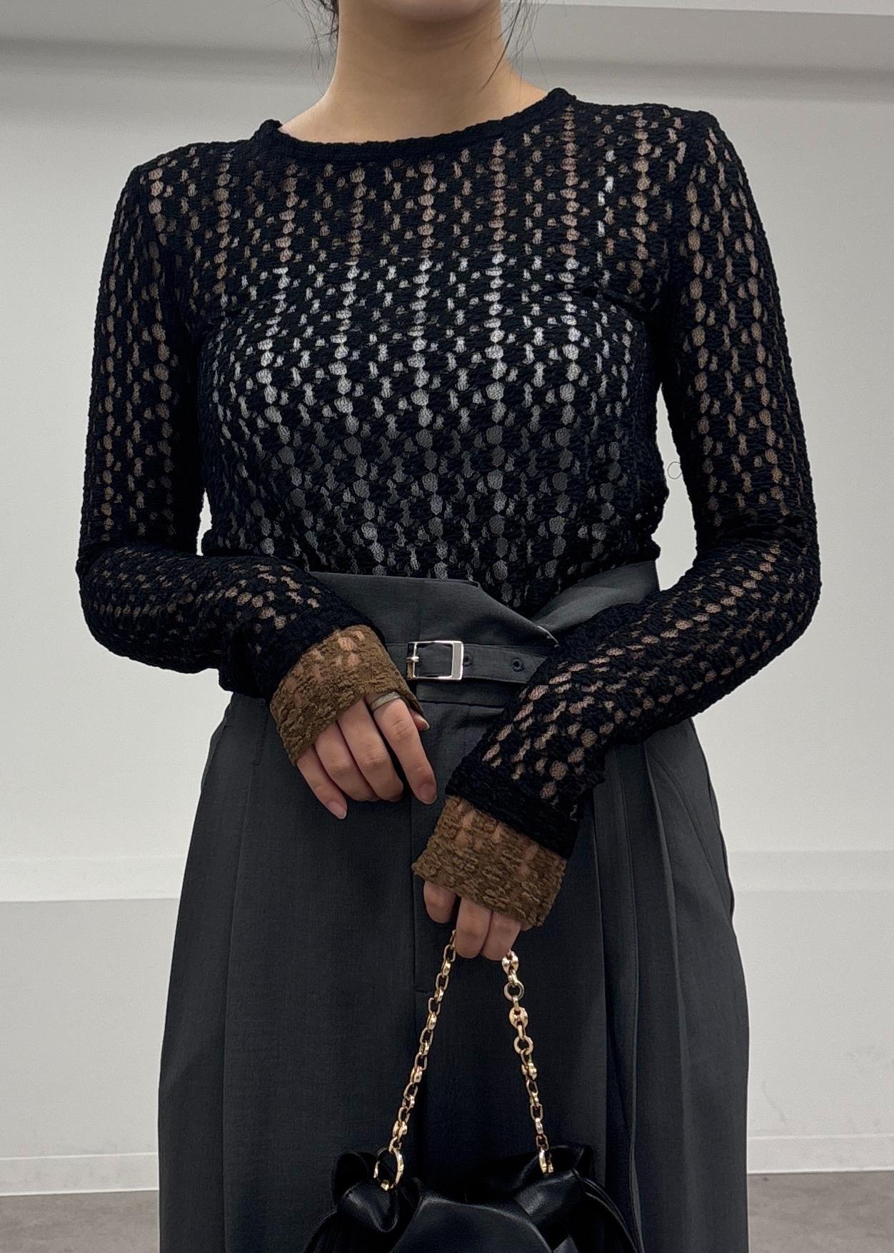 VIS【WEB/一部店舗限定】レース配色プルオーバーブラック / F¥4,939レビュー165cmで腰にかかる丈感です!