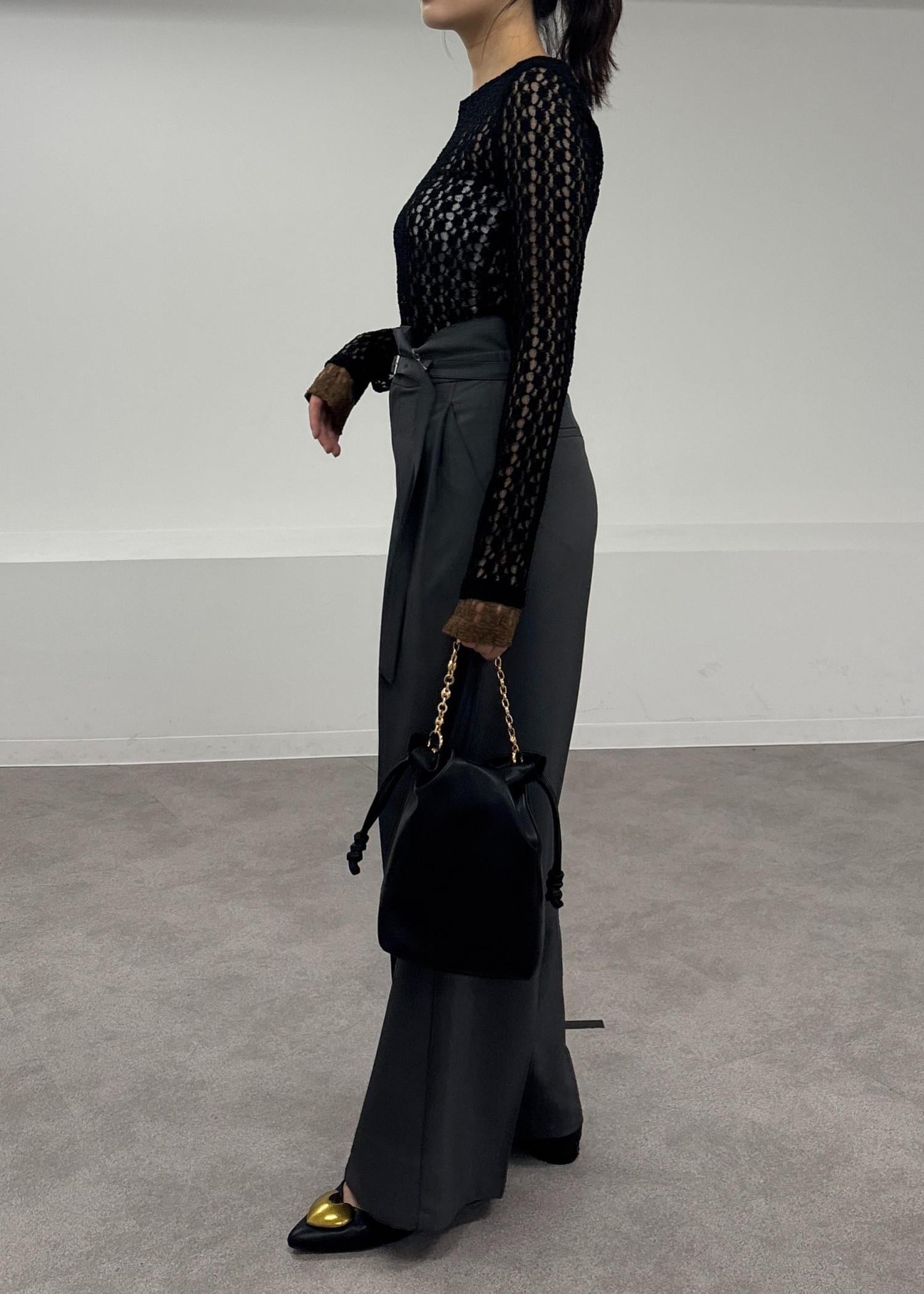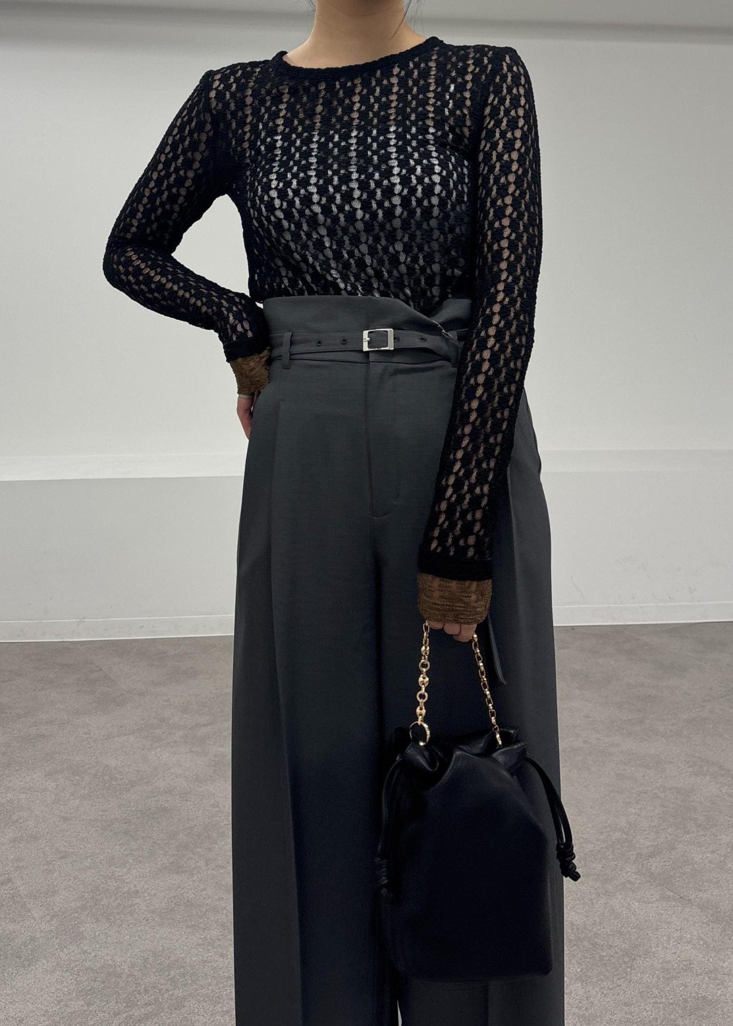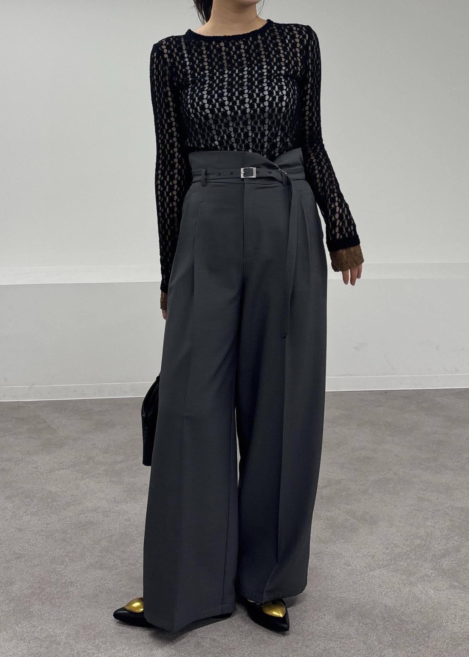 ワイドシルエットですが、広すぎないラインとベルトで綺麗見えもします! -