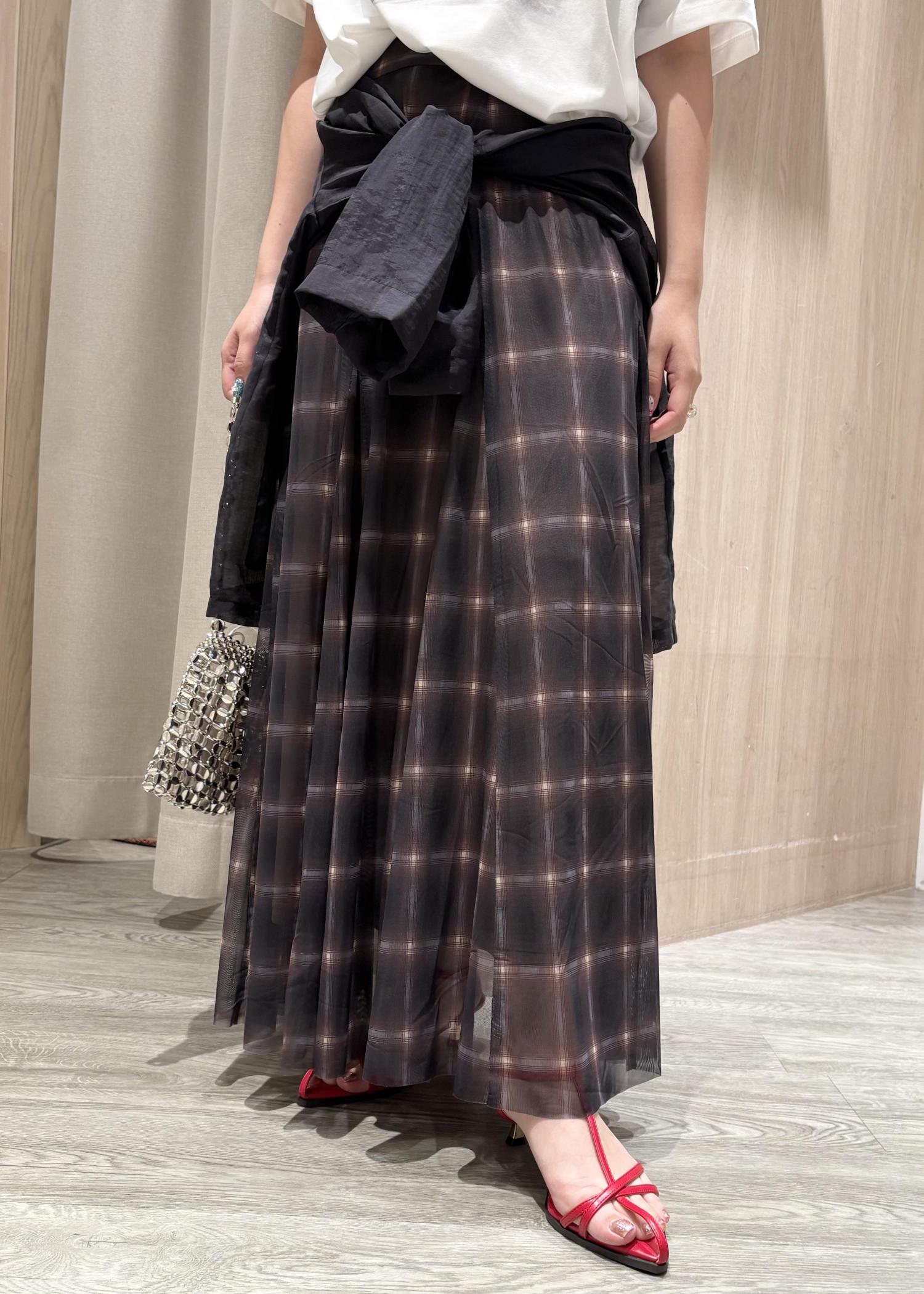 VIS【洗える】チュールプリントチェックスカートダークブラウン系 / F¥4,612レビュー落ち着いたチェック柄がかわいらしい一枚です。