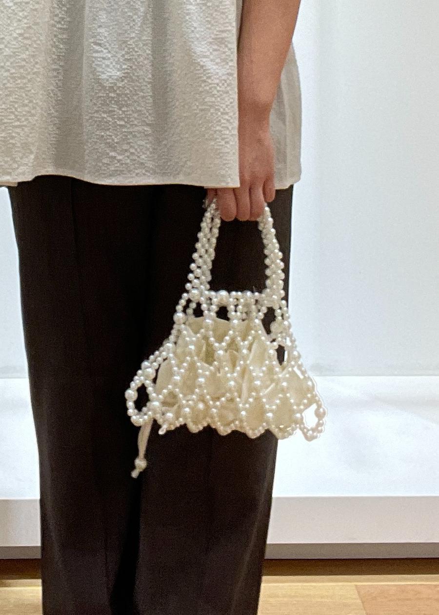 アウトレットROPÉ PICNIC PASSAGEポーチ付きビーズハンドバッグオフホワイト / F¥2,250レビューコーデを華やかにしてくれるパールのデザインが可愛いです♪