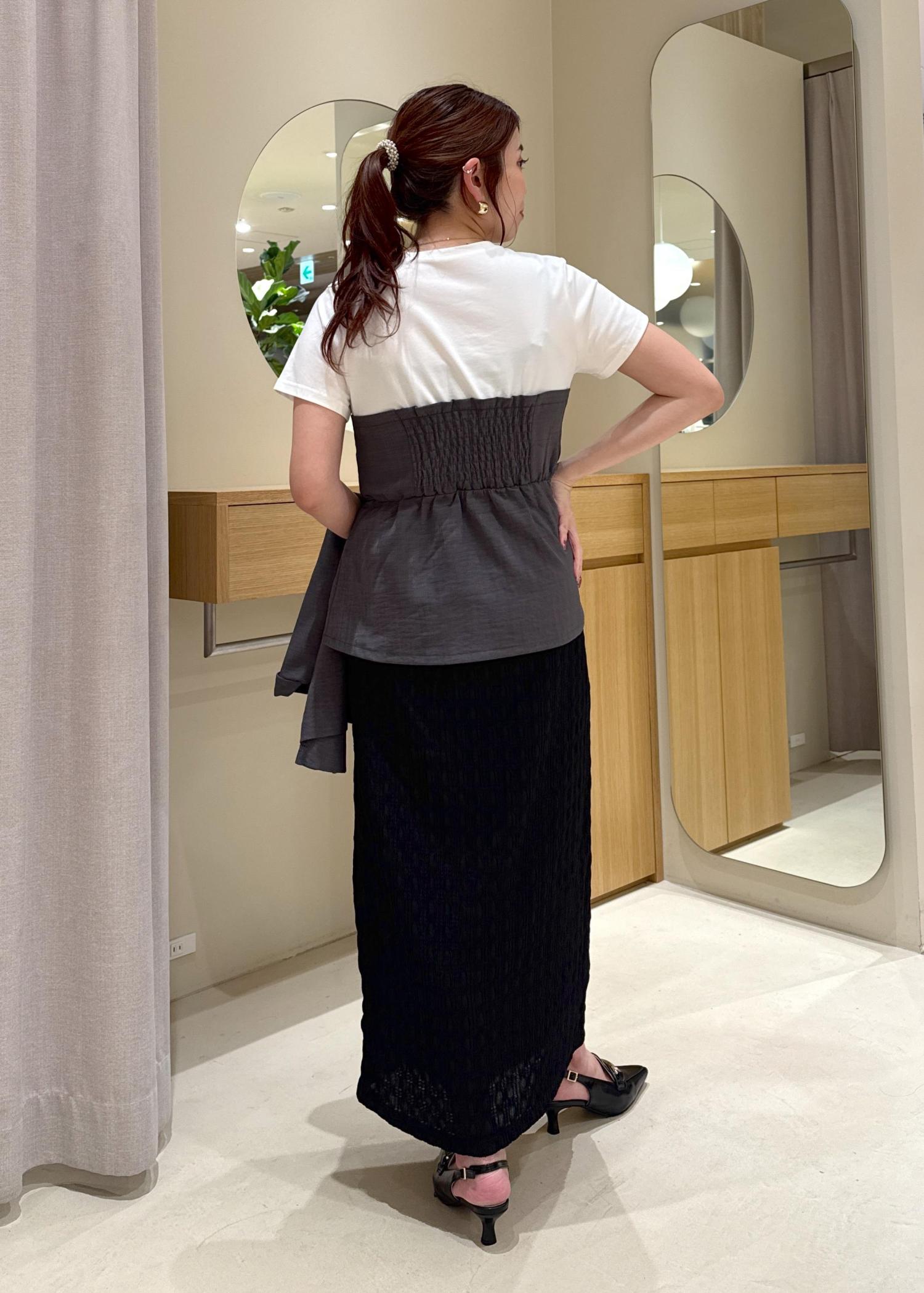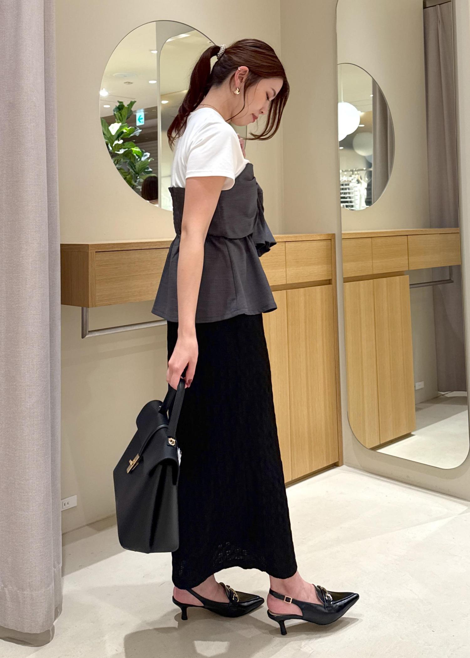 ペプラムのようなシルエットのトップスなので
