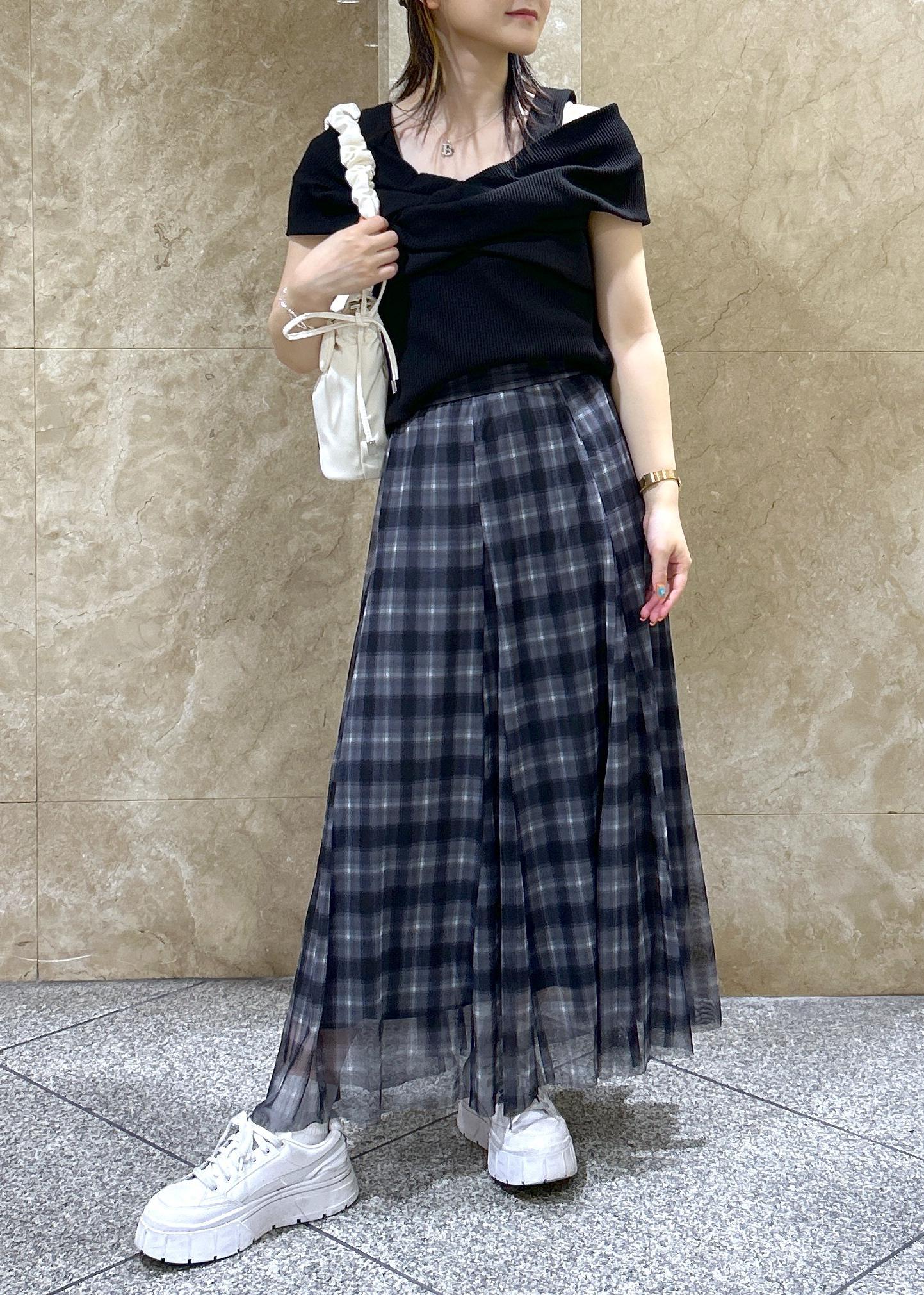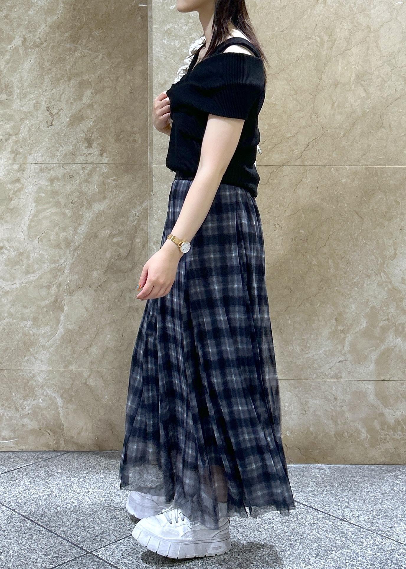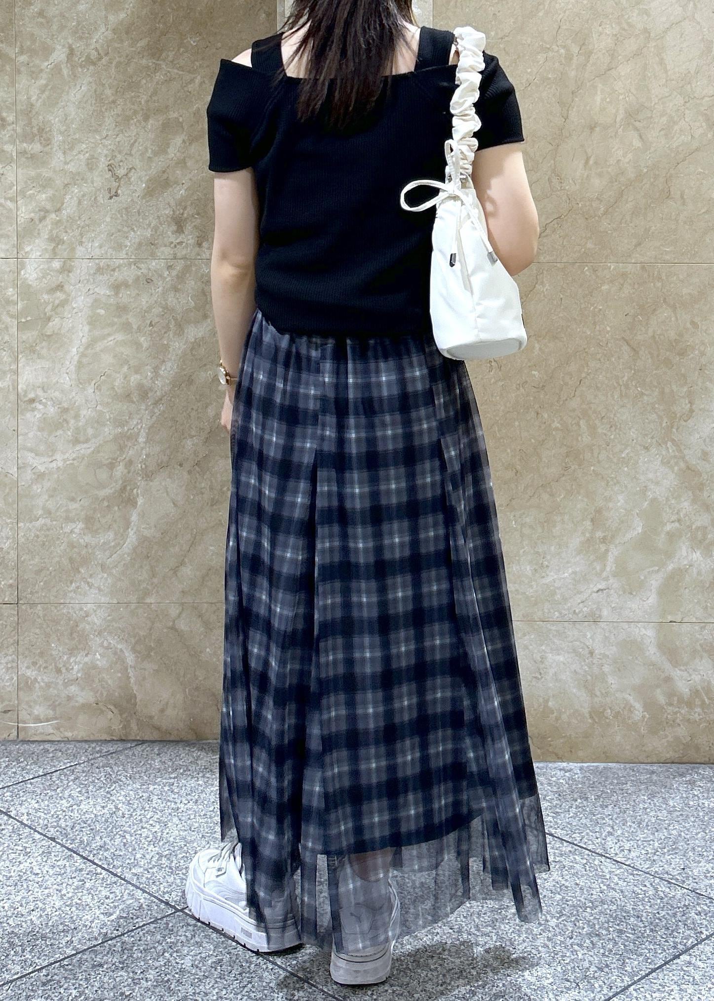VIS【洗える】チュールプリントチェックスカートブラック系 / F¥4,612レビューとっても軽く、裾の透け感がかわいいチュールスカート♪
