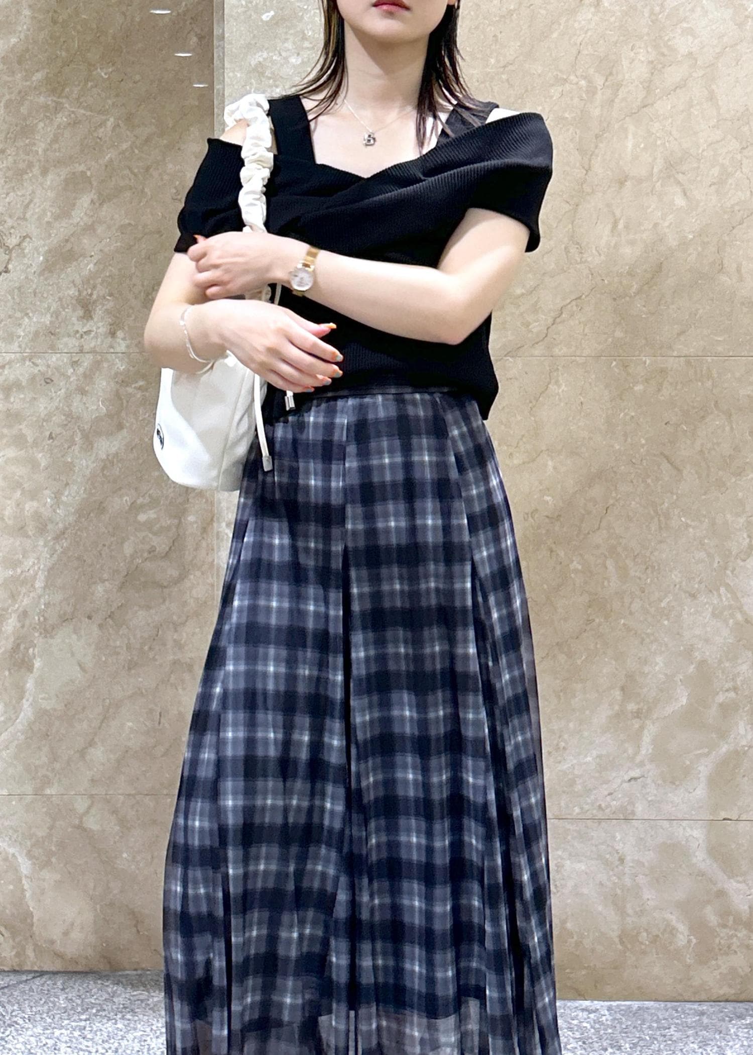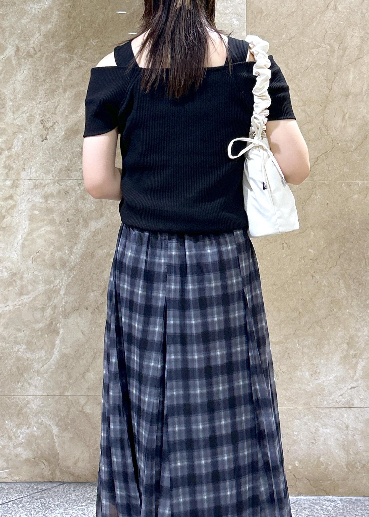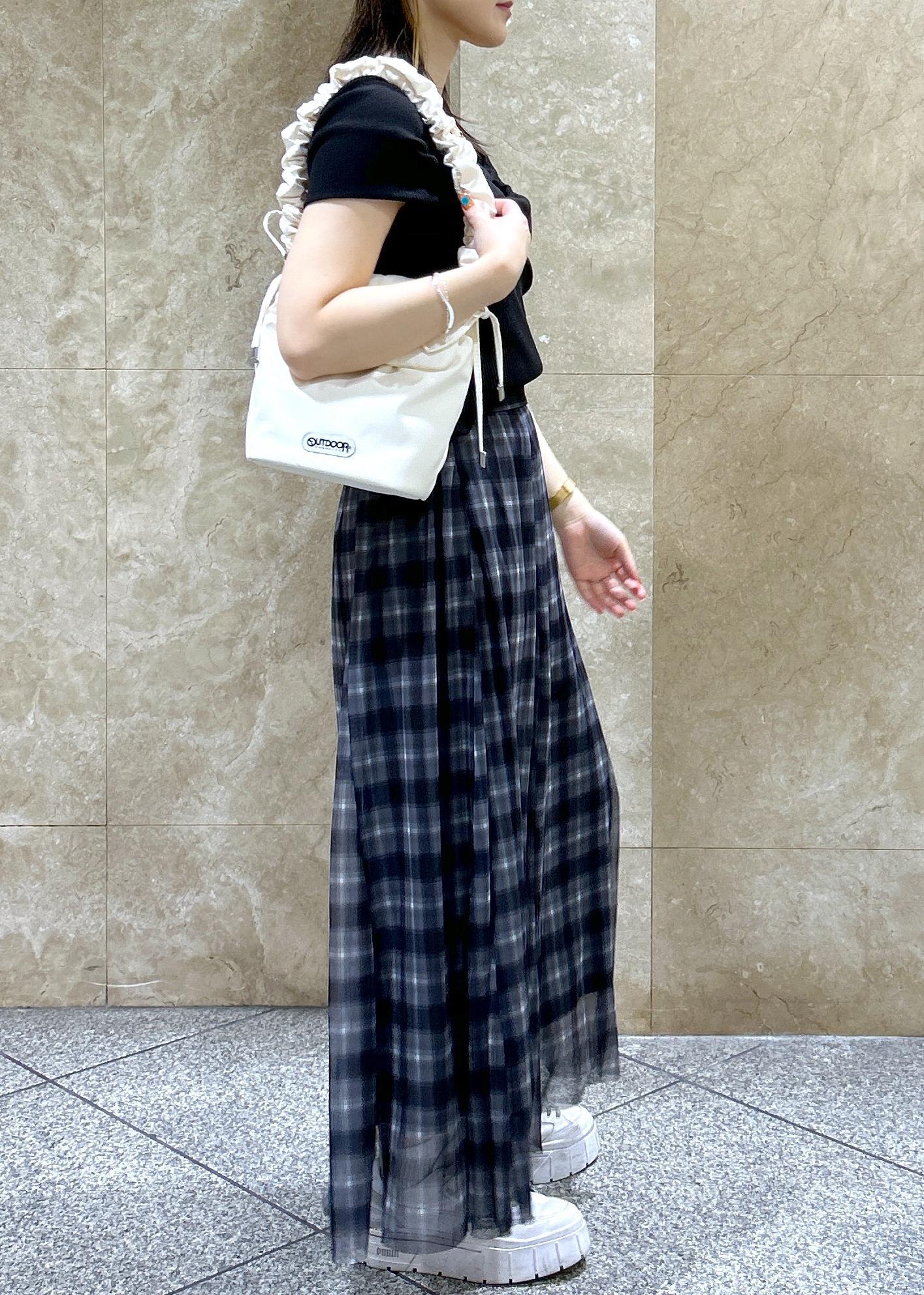 VIS【洗える】チュールプリントチェックスカートブラック系 / F¥4,612レビューとっても軽く、裾の透け感がかわいいチュールスカート♪