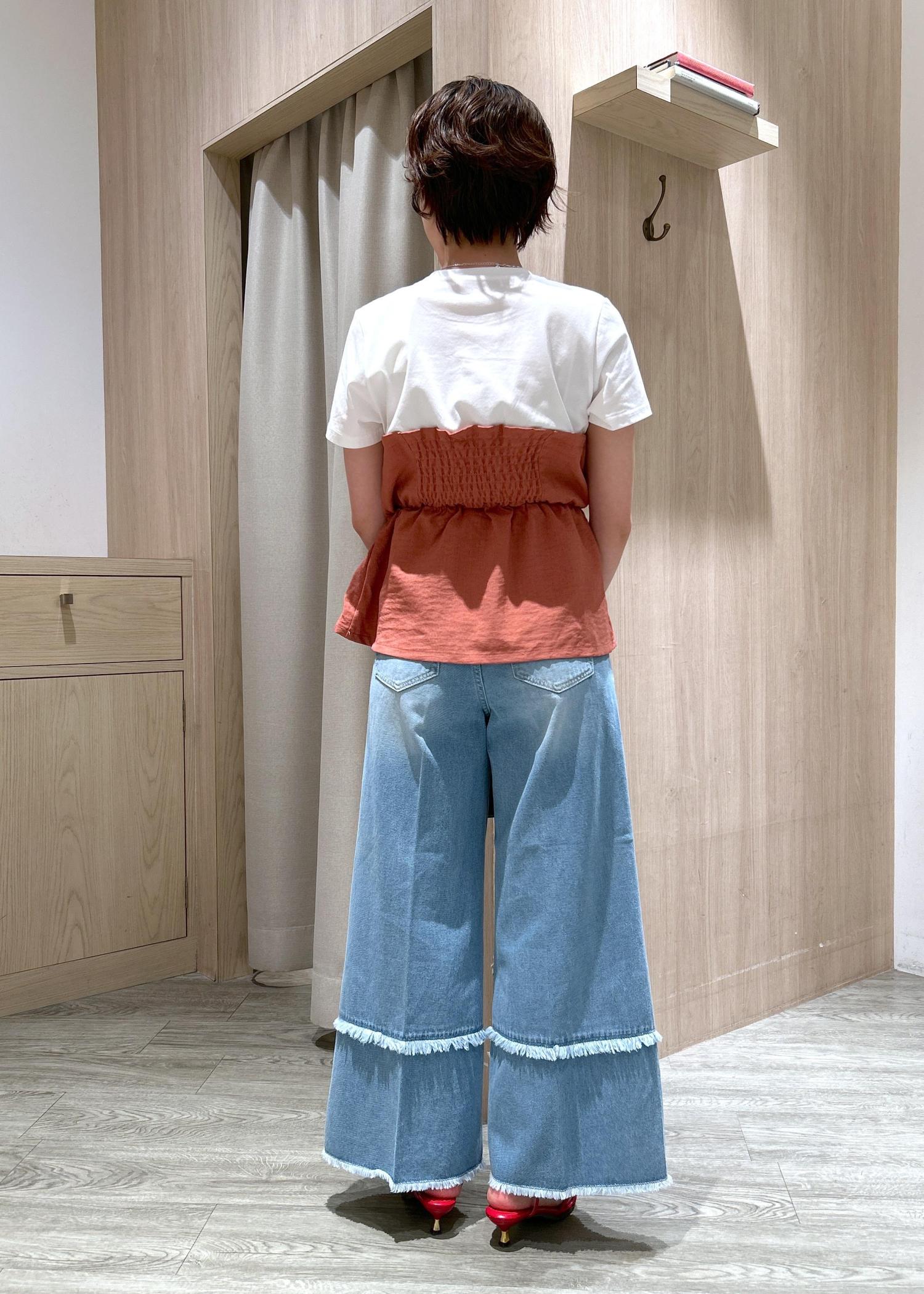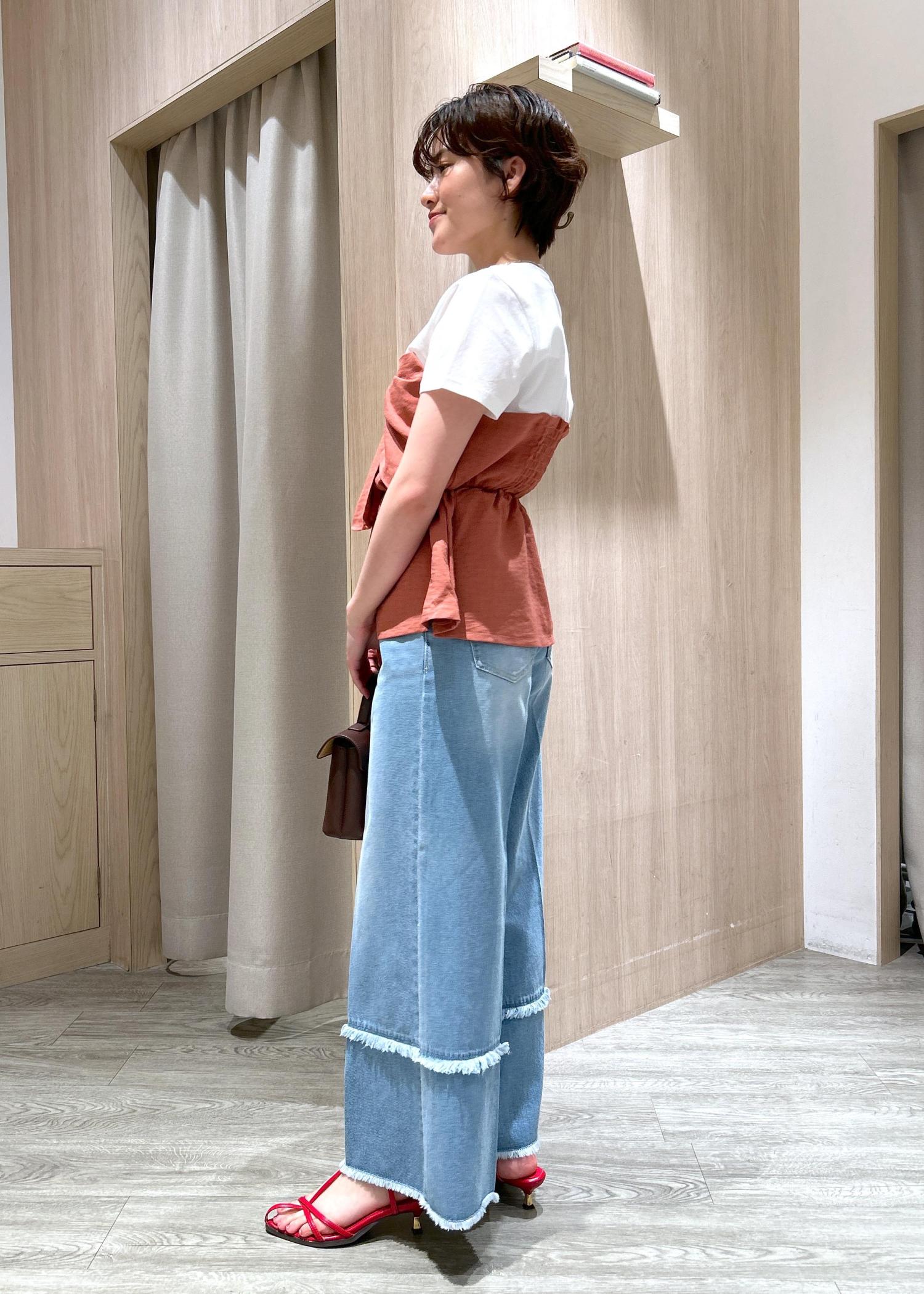 軽めのデニム素材で、程よいワイドなキレイなシルエットです! -