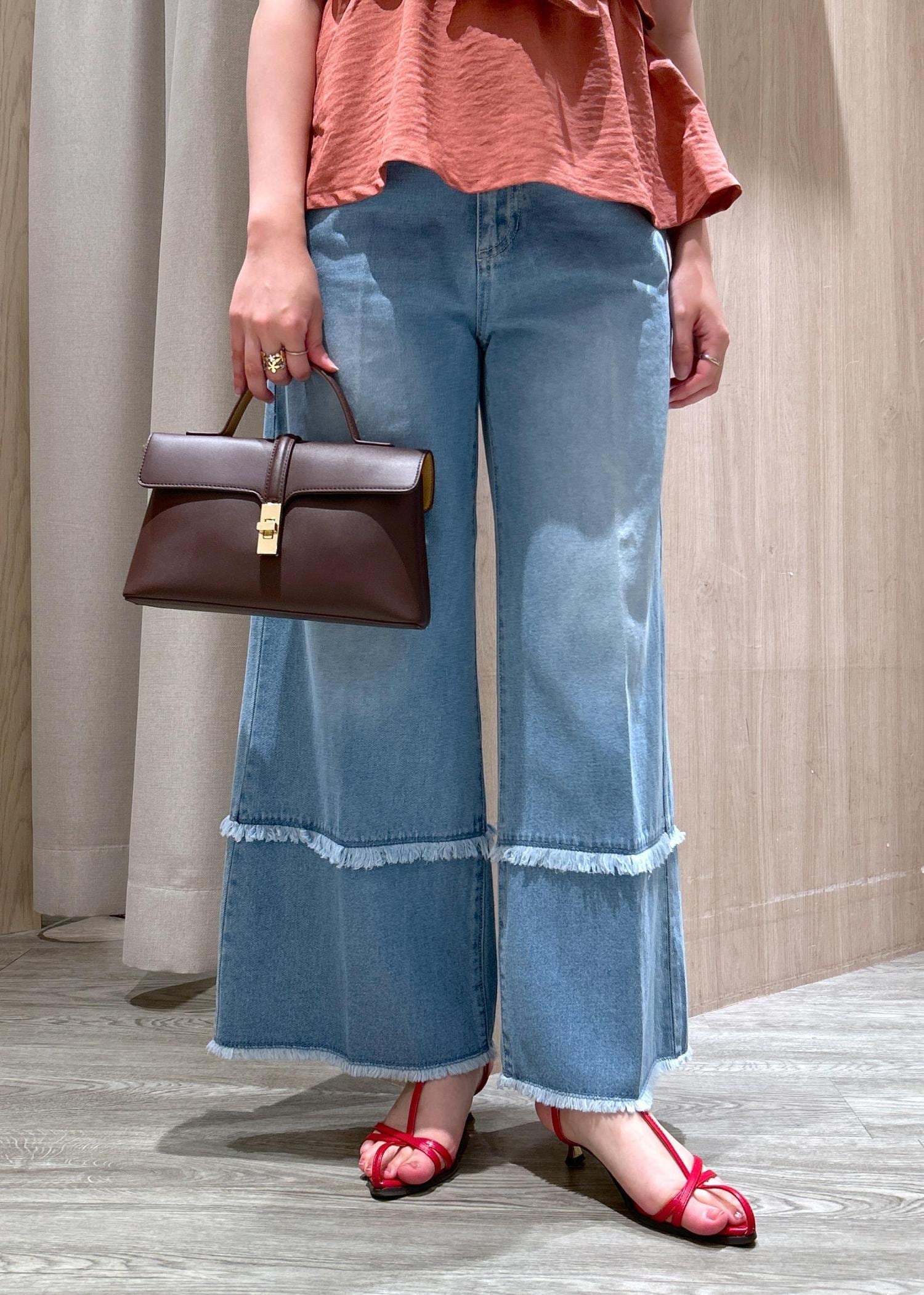VISフリンジフレアデニムサックス / S¥4,395レビュー身長155cm、Sサイズ着用で踵が少し見える丈感です。