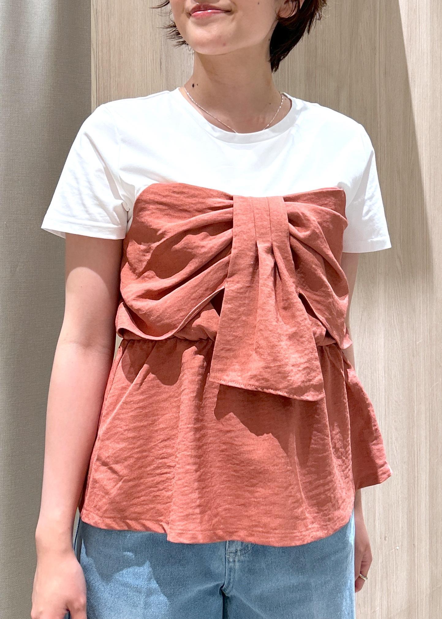 VIS【新色追加】【美easy】ねじりリボンTシャツドッキングプルオーバー【接触冷感/洗える】オレンジ系 / F¥5,489レビューお尻が少し隠れる長さです。