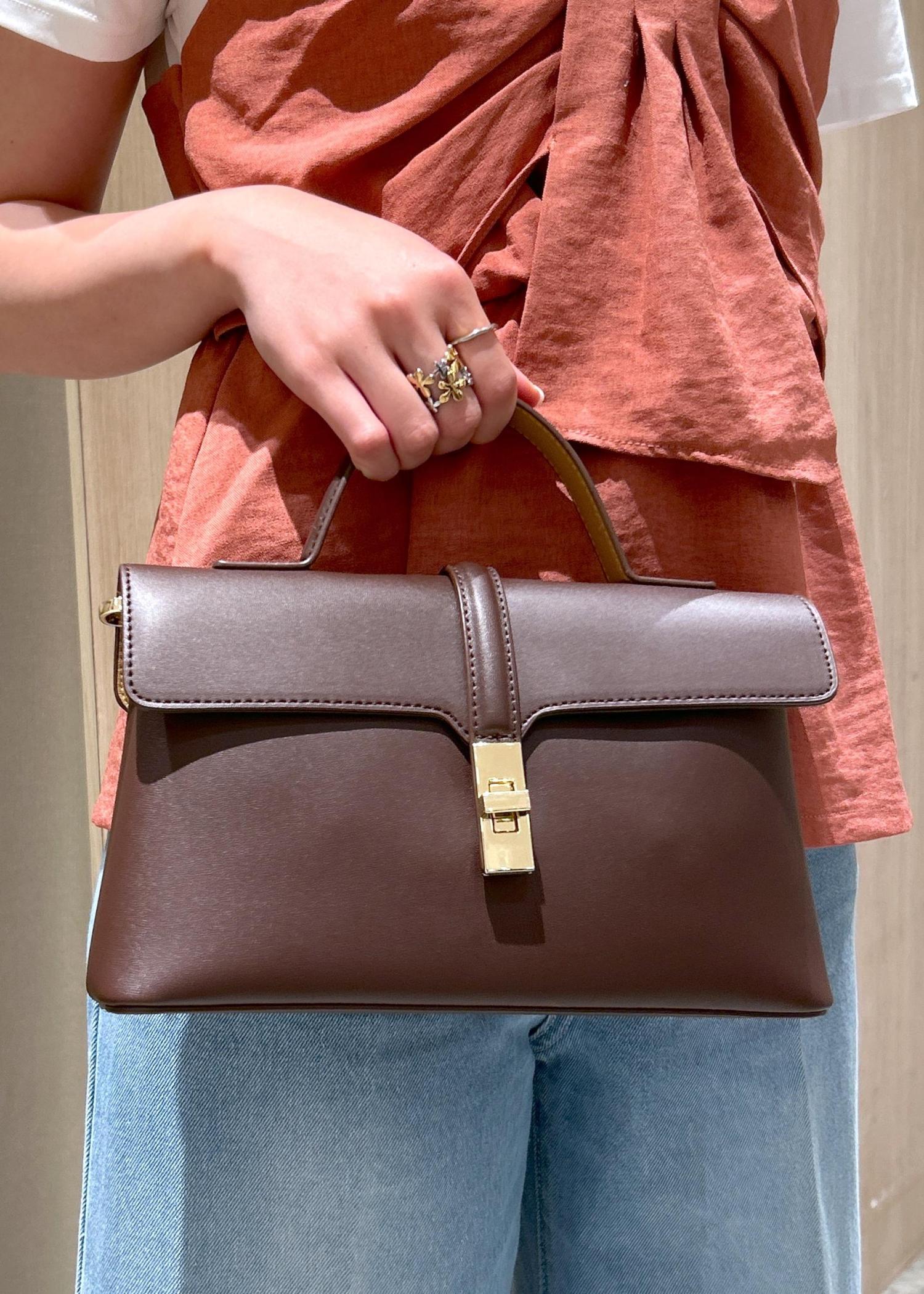 VIS【新色追加】ひねり金具ワンハンドルミニショルダーバッグダークブラウン / F¥5,489レビュー長財布がすっぽり入る大きさで、ショルダー付きの2WAYバッグです!