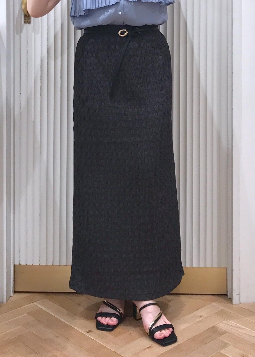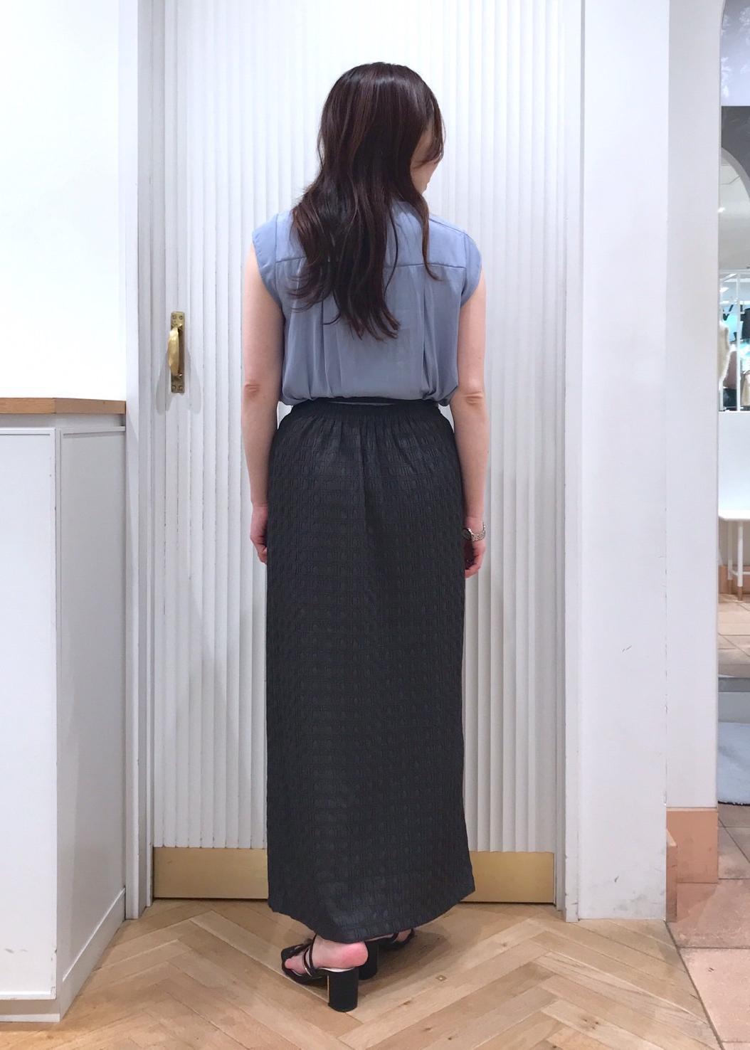 ボトムスはタイトスカートを合わせて落ち着いた印象に見せています。