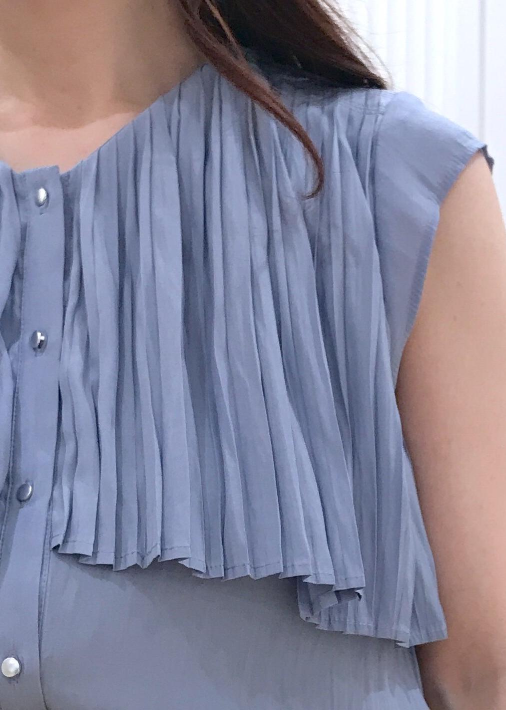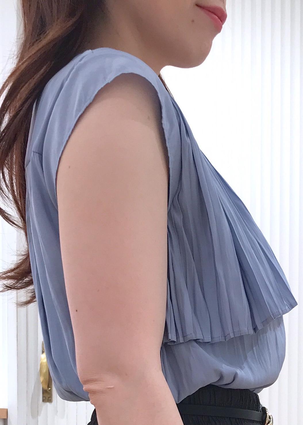アウトレットVISプリーツデザインブラウス/通勤対応サックス / F¥2,745レビュー着丈はお尻が半分隠れるくらいの長さです。