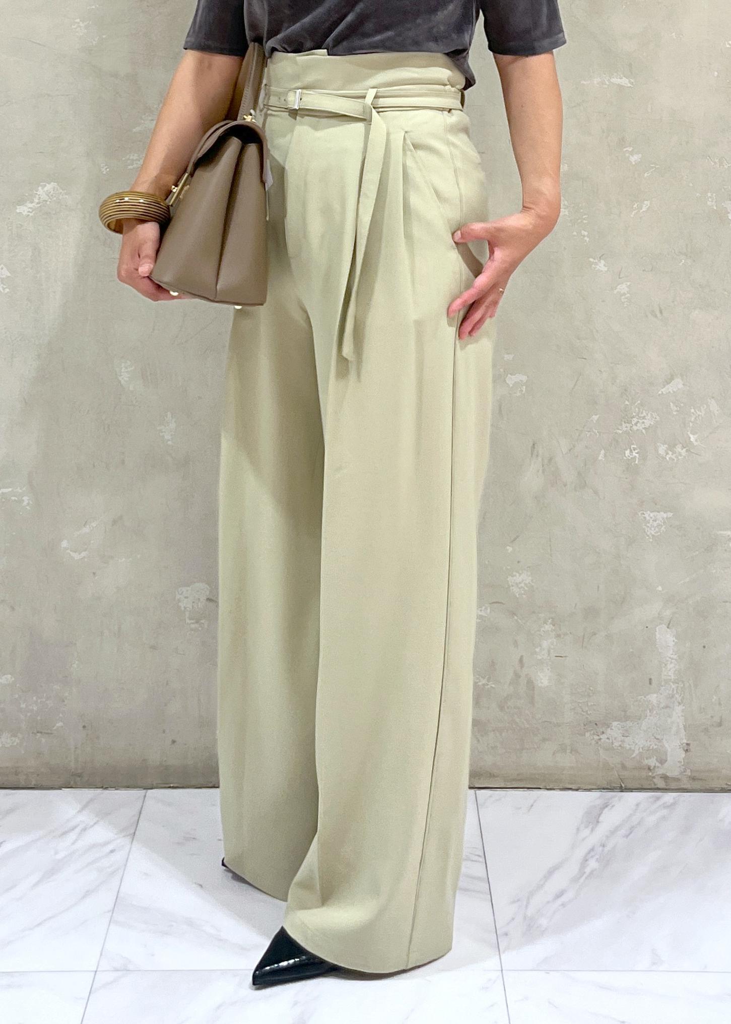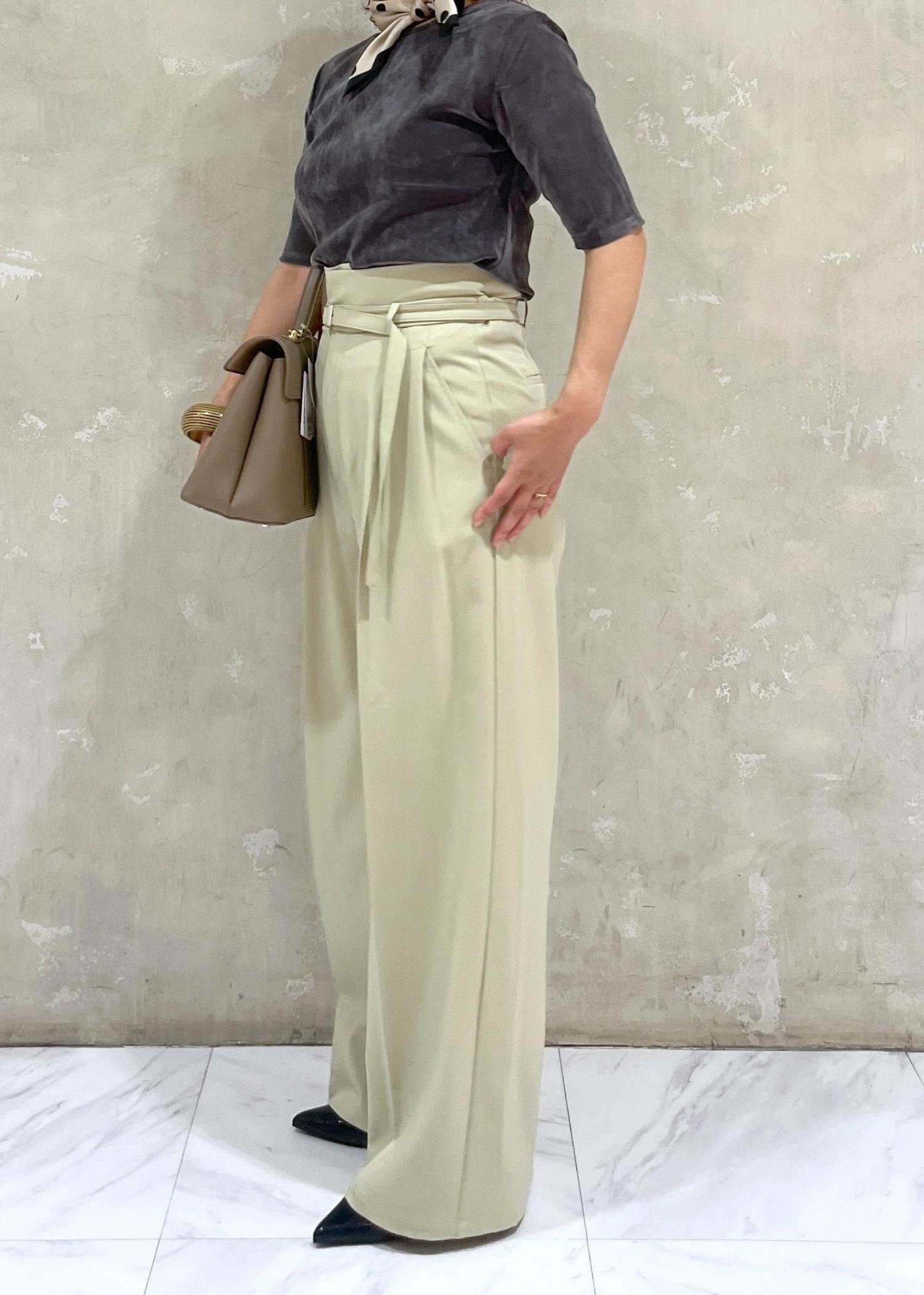 VIS【新色追加】【防シワ/接触冷感】ベルトディテールタックワイドスラックスパンツライトグリーン / M¥6,589レビュー159㎝でMサイズ着用。