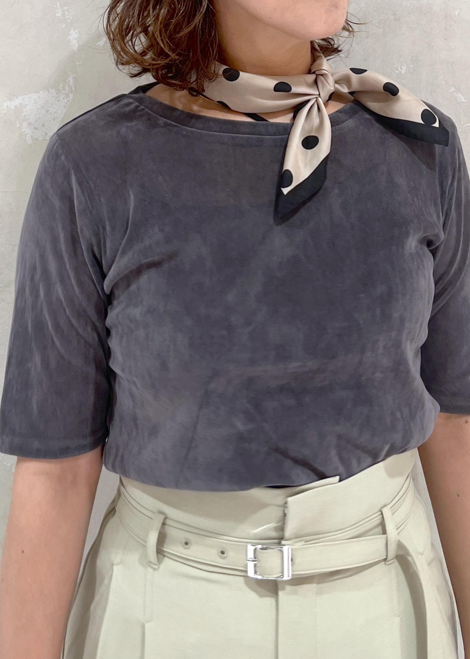 VISシーアベロア5部袖プルオーバーチャコール / F¥3,950レビューベロアですが、シアー素材で薄手なので夏から秋にかけて大活躍できるトップスです!