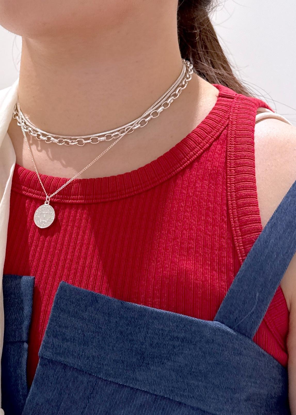 VISレイヤードコインネックレスシルバー / F¥2,959レビュー三レーンのネックレスで付けるだけで見た目が華やかになります。思ったより重たくなくすぐに簡単に付けられるのでオススメです。チェーンの部分はチョーカーのような長さなので首にフィットします。