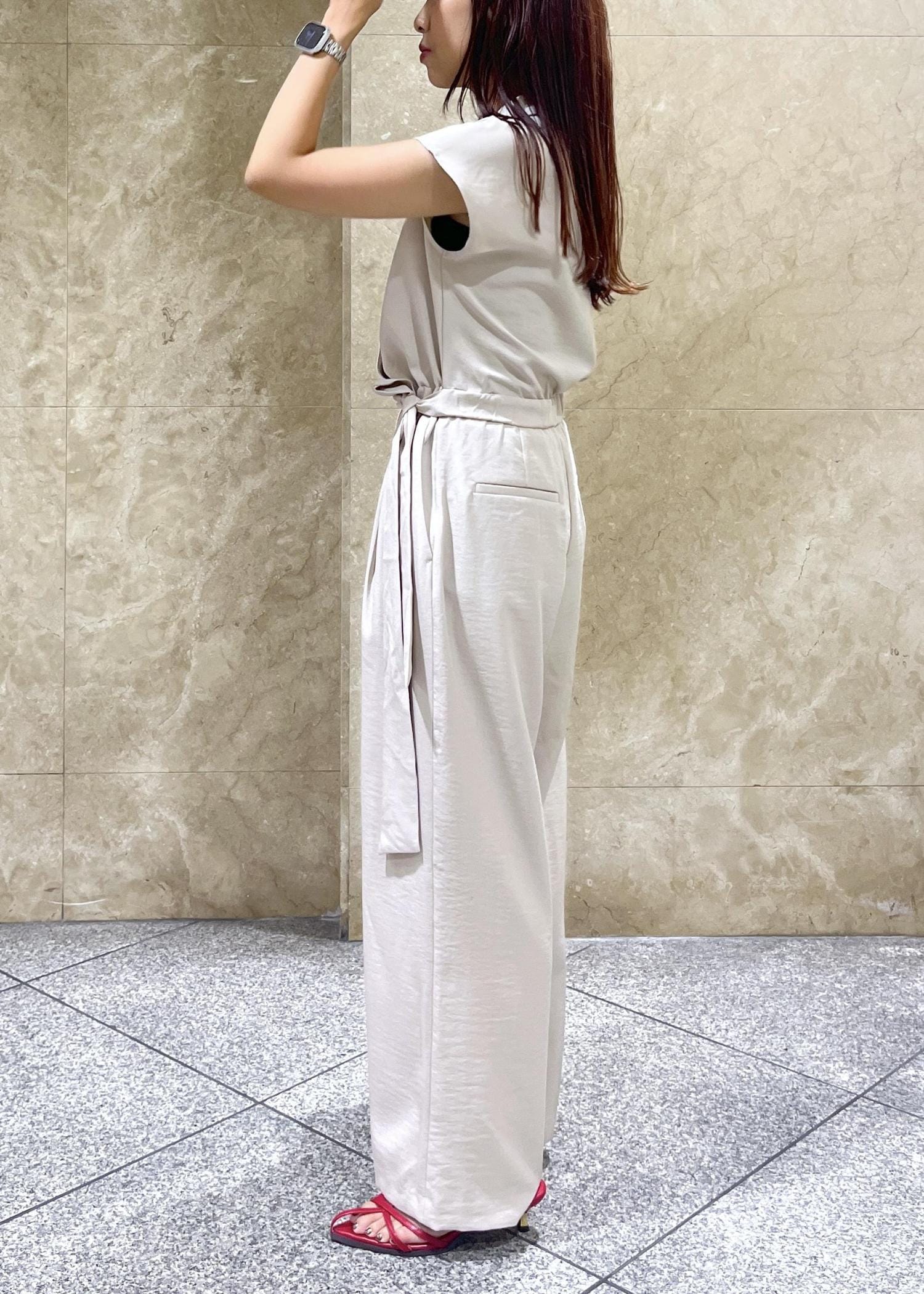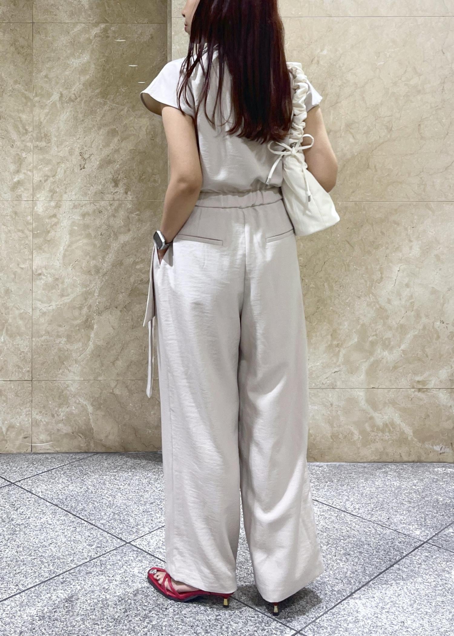 サラッと清涼感のある柔らかい素材感で、パンツ部分はストンと落ちるためすっきりと着用できました。