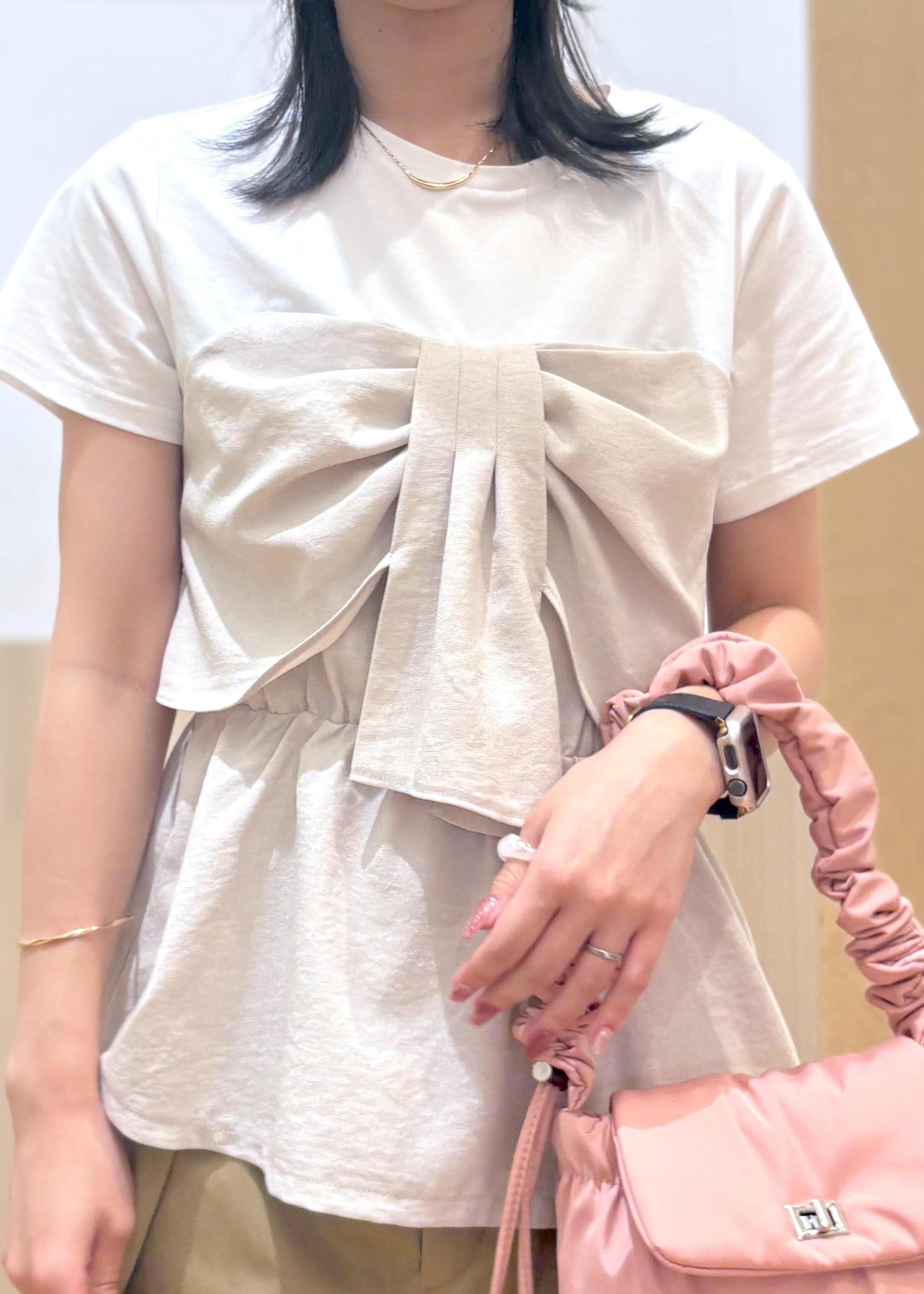 VIS【新色追加】【美easy】ねじりリボンTシャツドッキングプルオーバー【接触冷感/洗える】キナリ / F¥5,489レビュー胸元にリボンのシルエットがあり華やかなアイテムです。