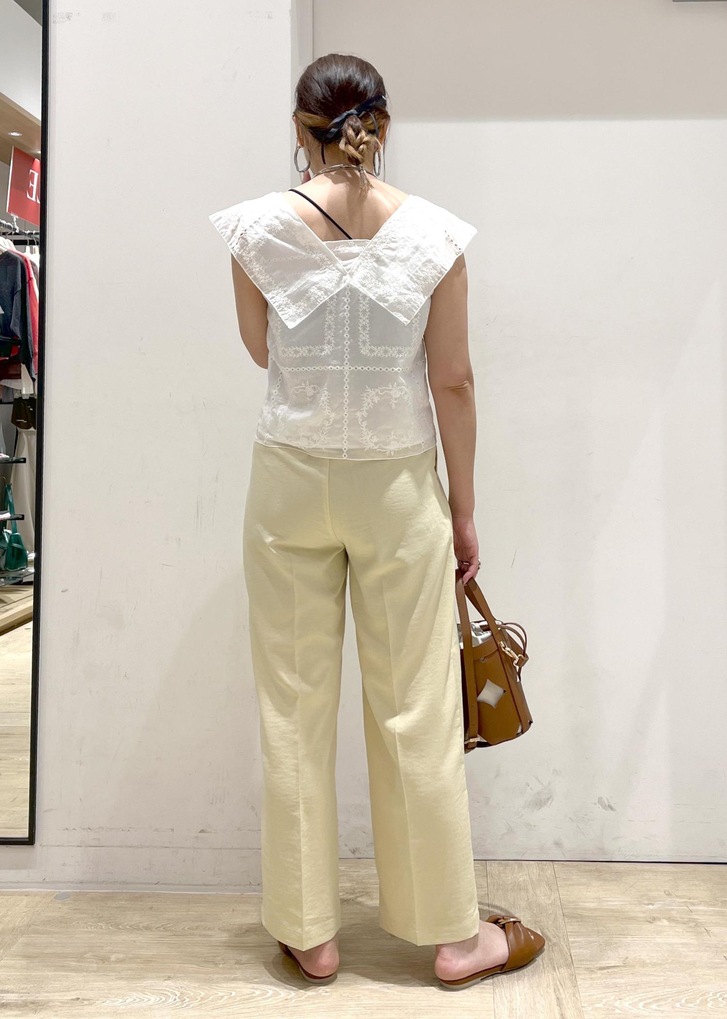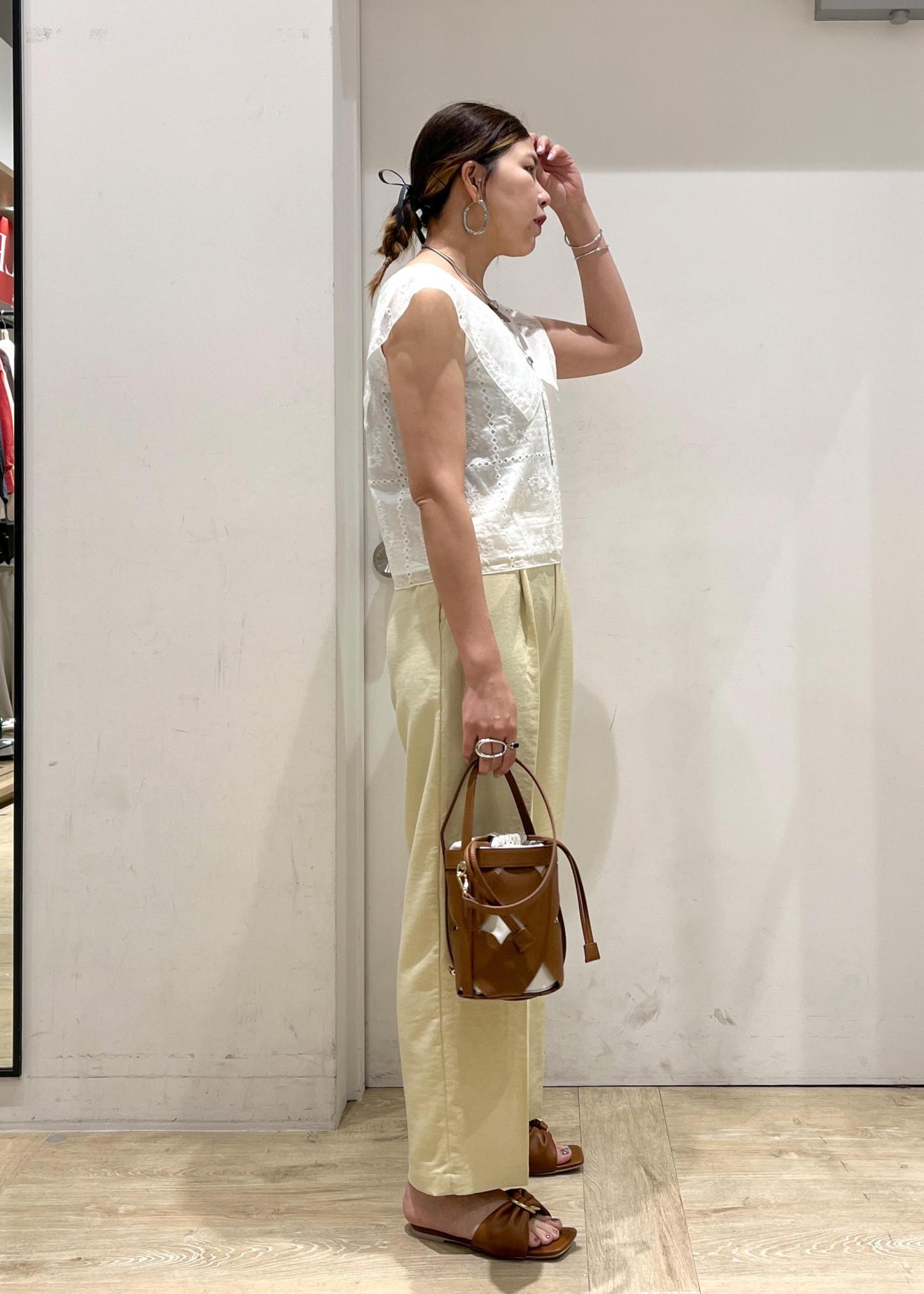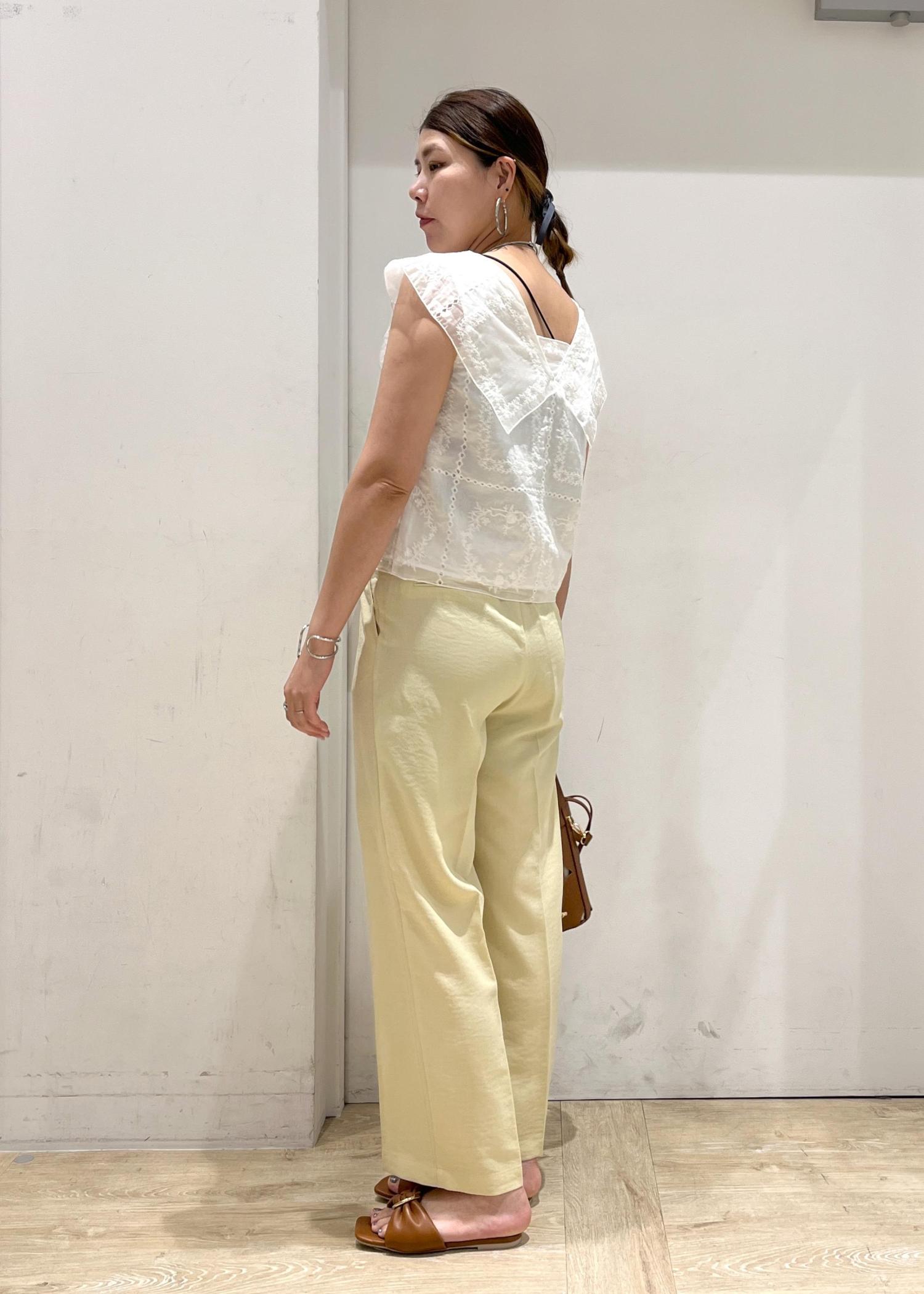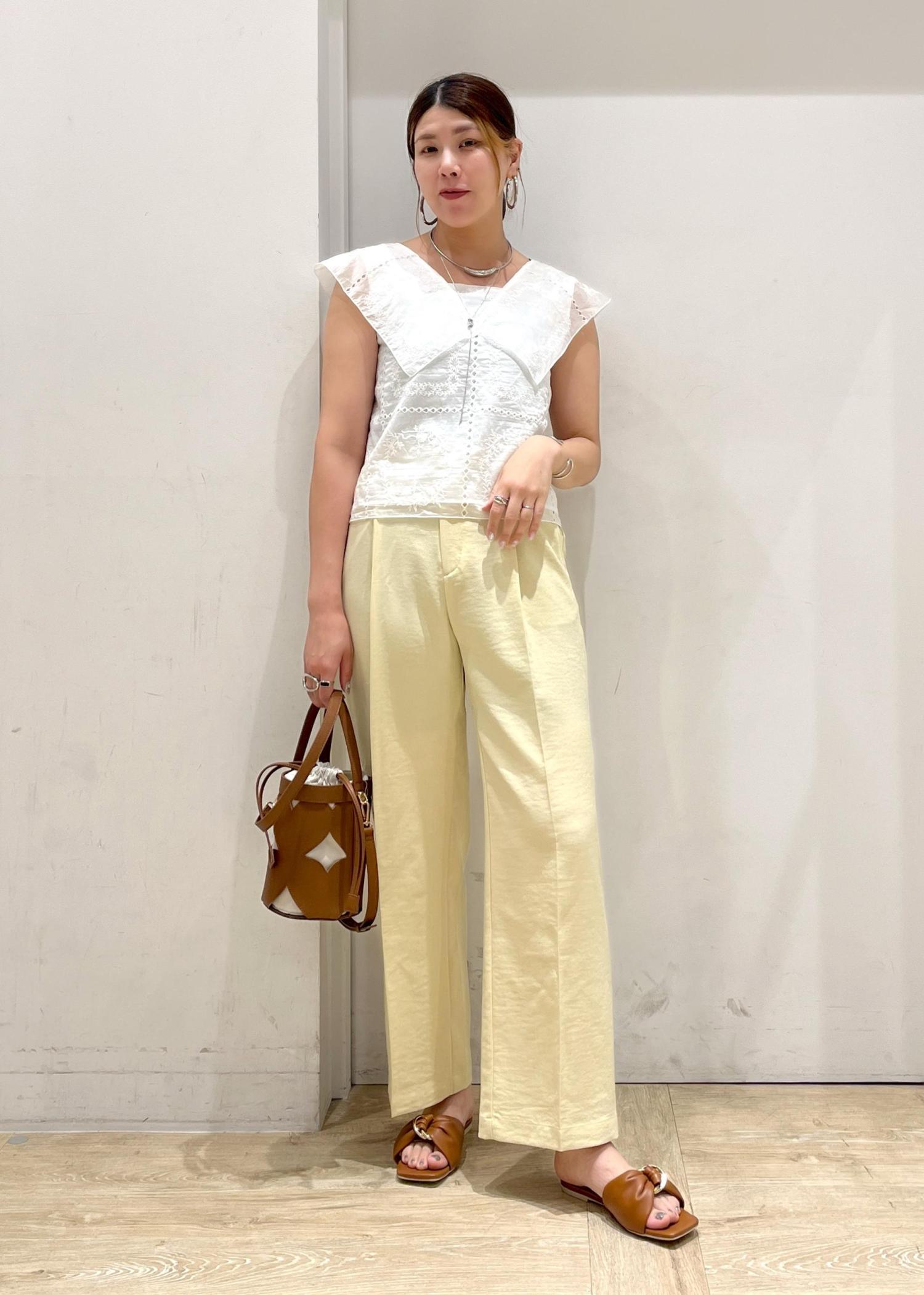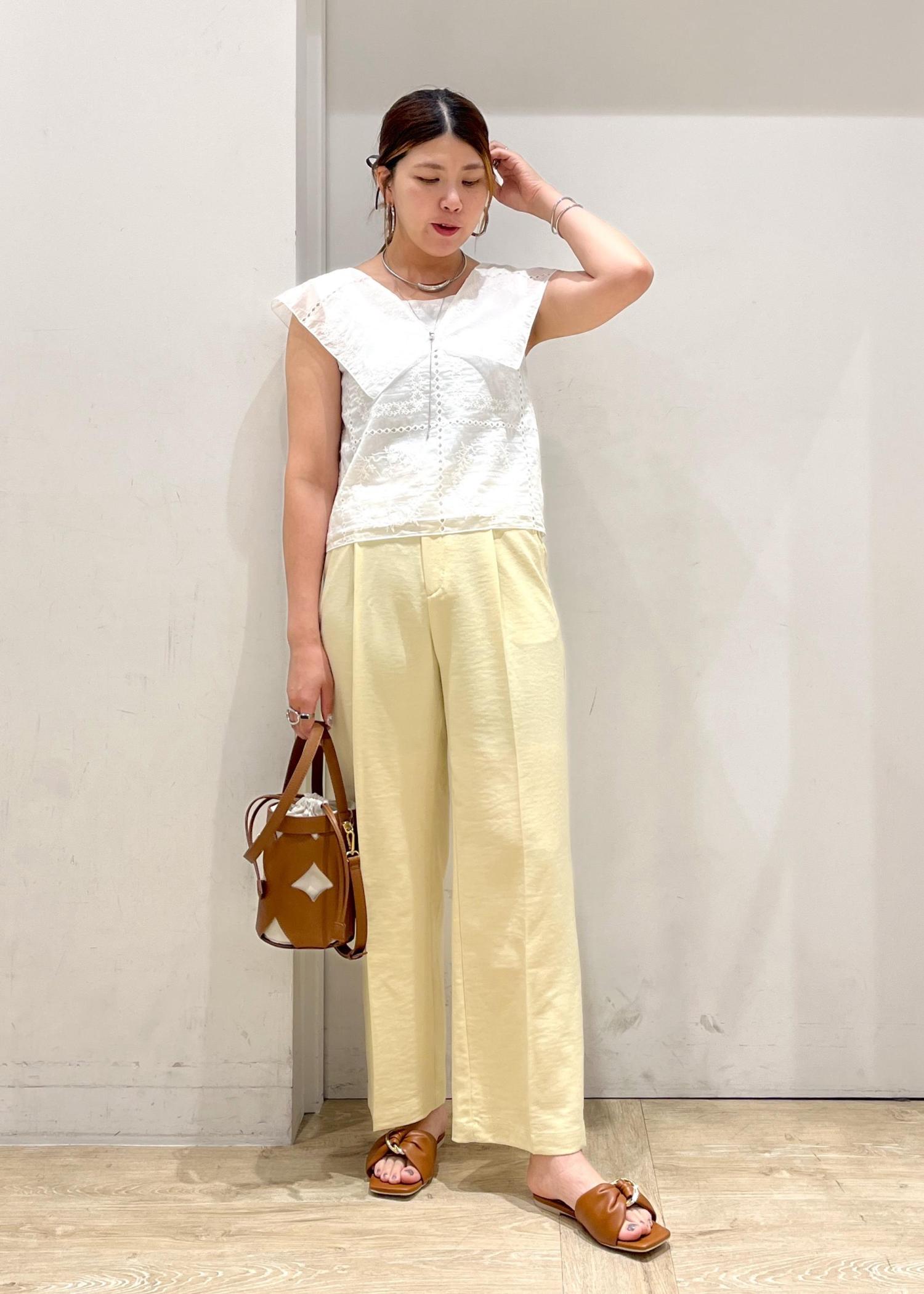 スッキリとした着丈なのでインしなくてもバランスがとりやすい〜イエローカラーのパンツ合わせで夏らしいコーデに♡